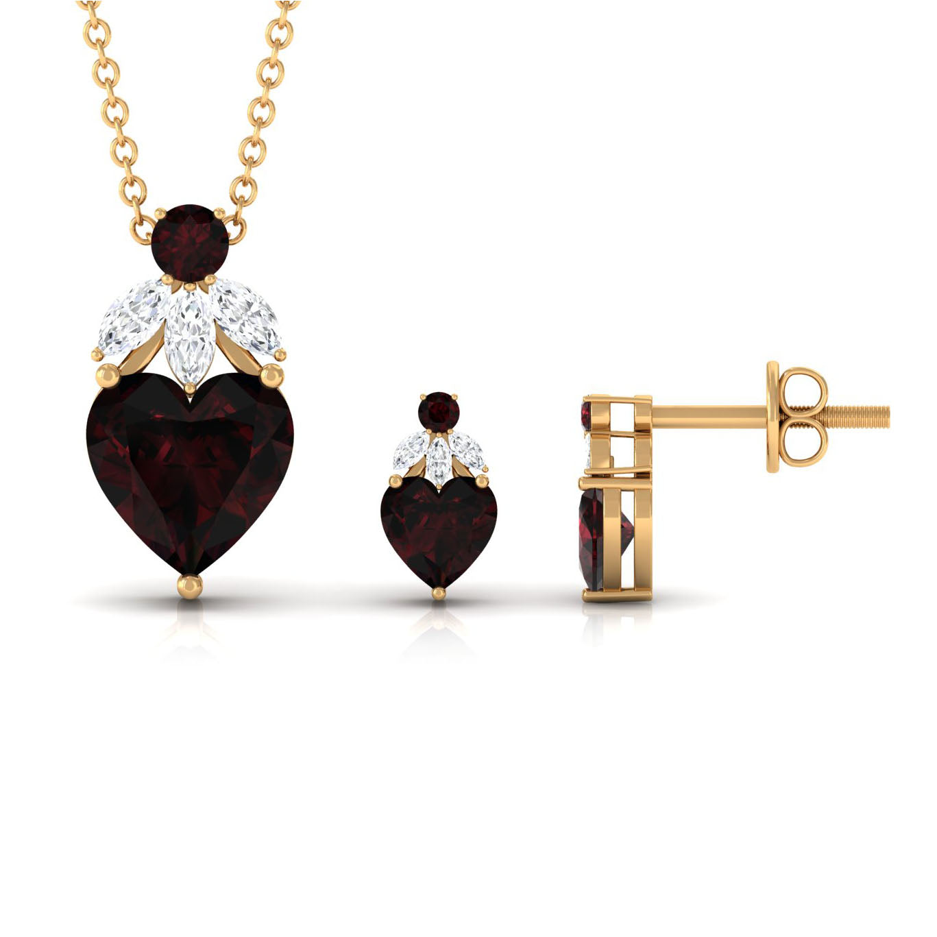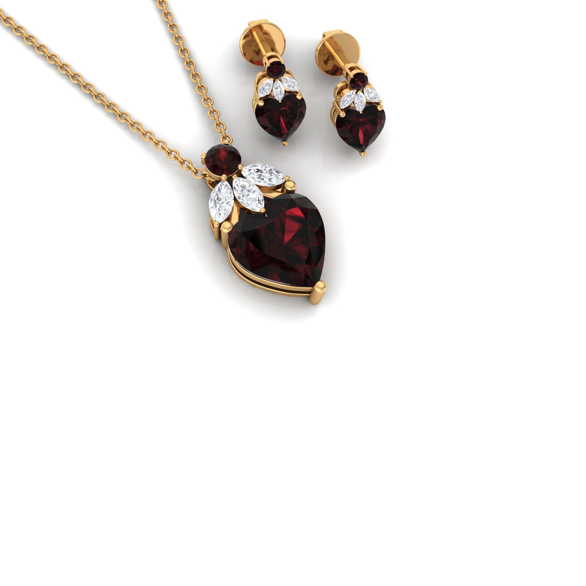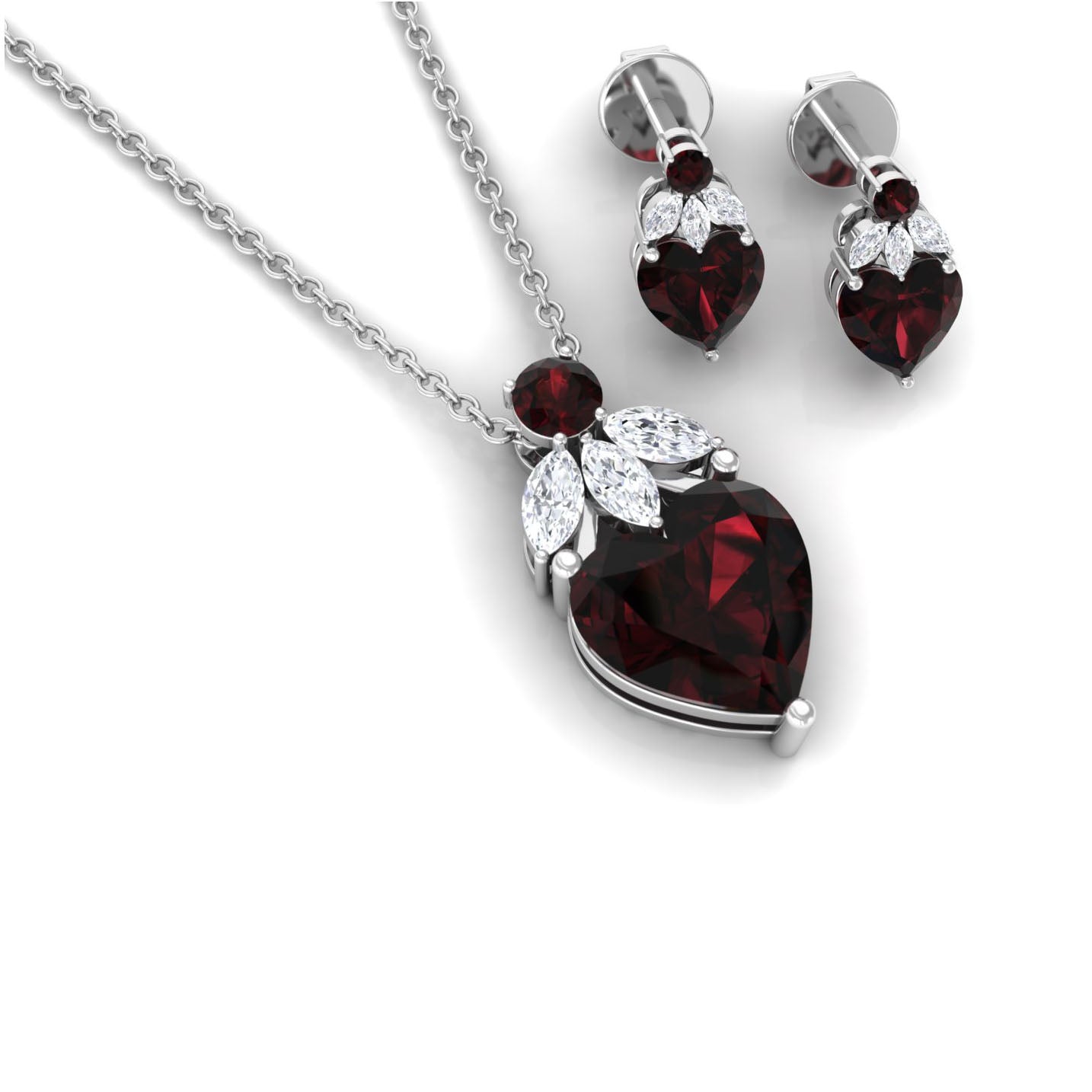 5.50 CT Designer Garnet Heart Pendant Earrings Set with Diamond