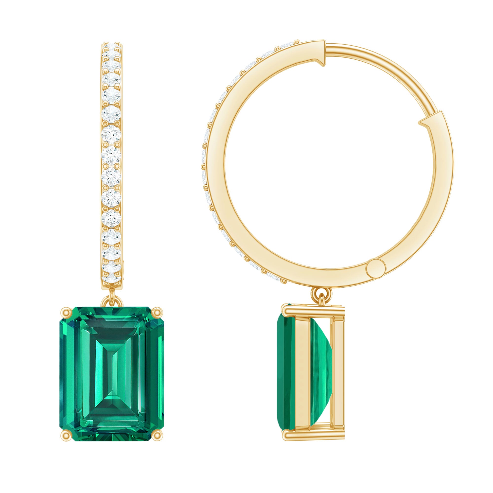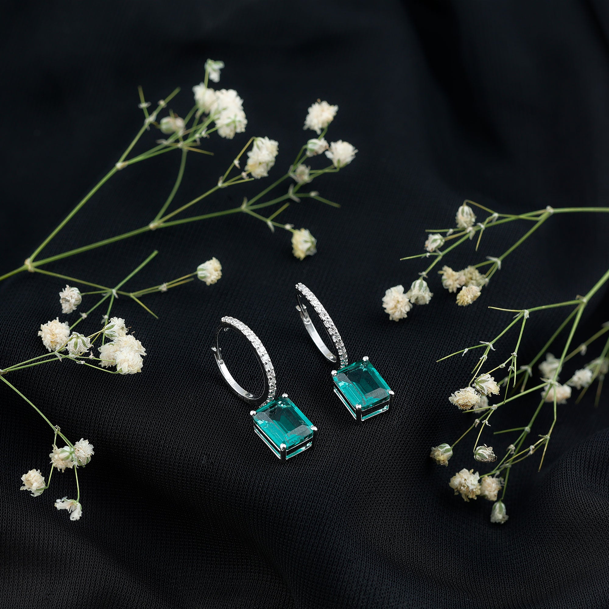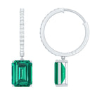 5 CT Lab Grown Emerald Hoop Dangle Earrings with Diamond
