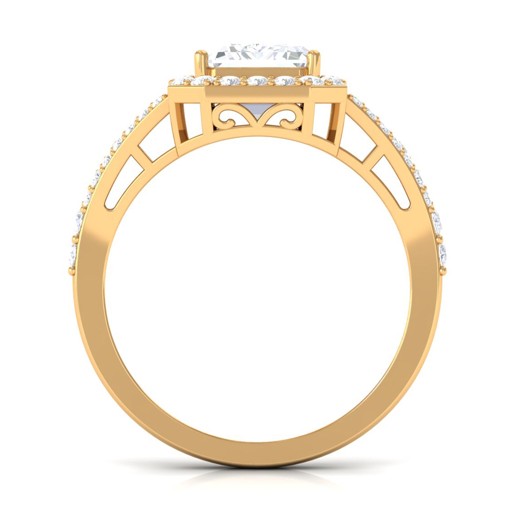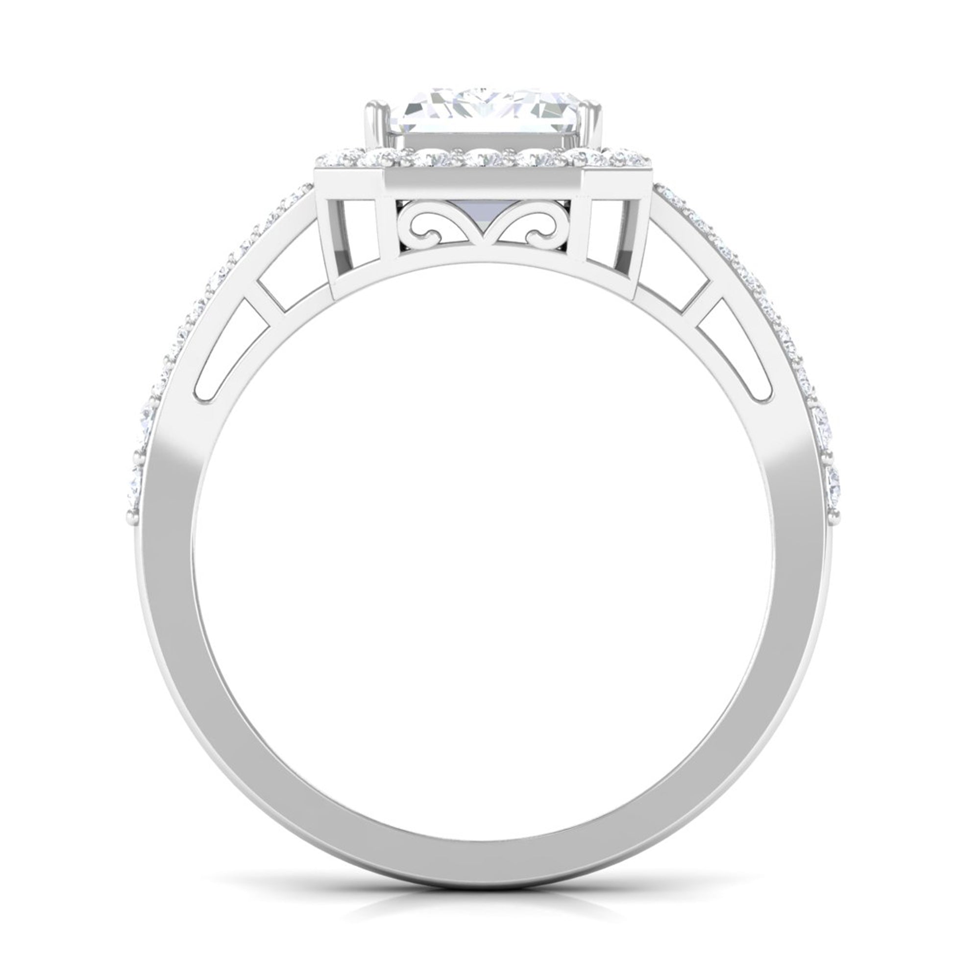 Add enduring meaning for your partner to be for many years to come by presenting this Zircon Engagement Ring. The radiance of Octagon Cut zircon is enough to accentuate your look, it has Round Cut zircon forming halo and side stones on split shank elegantly to add more charm to the ring.
