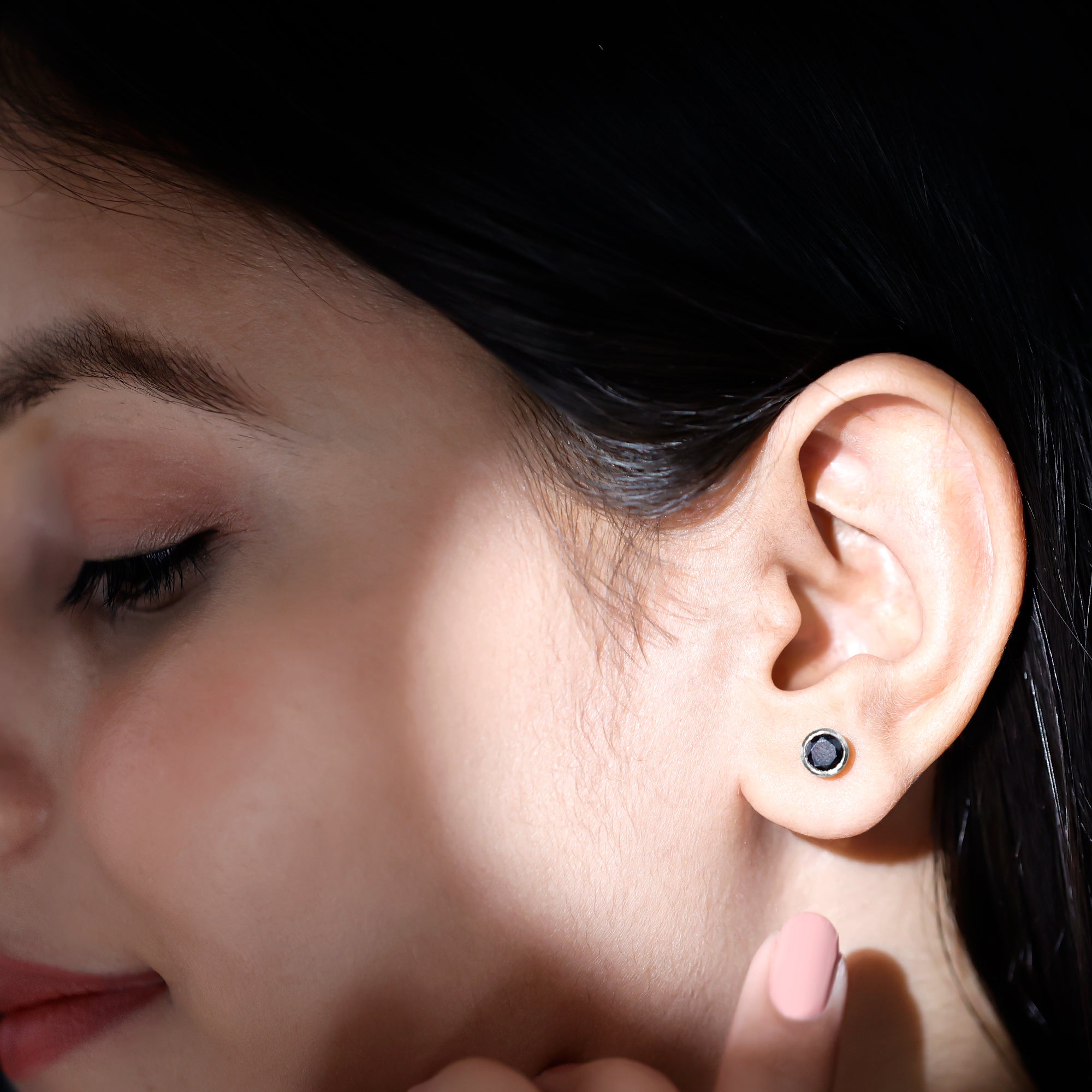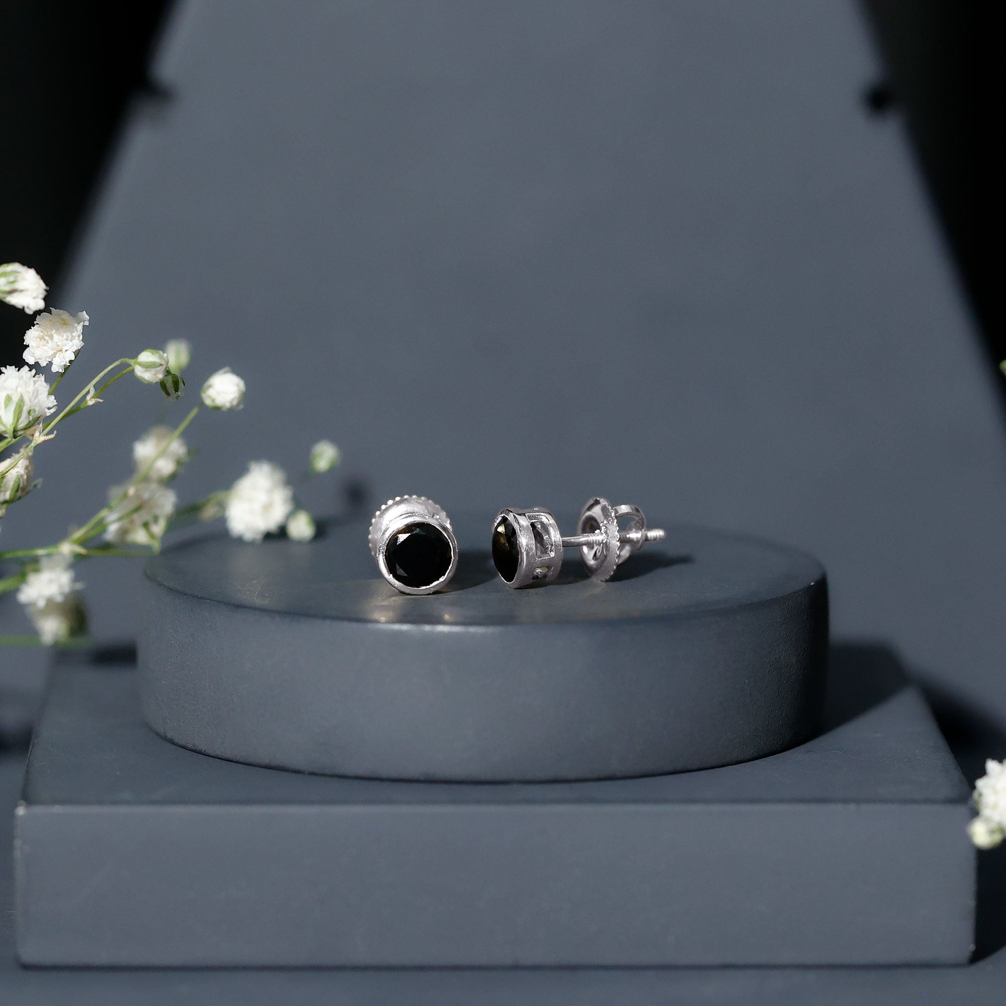 Simplicity meets elegance in these stunning Created Black Diamond Stud Earrings, delicately set in a Bezel Setting. The created black diamond gemstone exudes sophistication, making them a perfect accessory for any formal occasion. These classic solitaire stud earrings are a timeless addition to your jewelry collection.