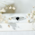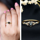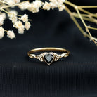 5 MM Heart Shape Lab Grown Black Diamond Solitaire Celtic Ring in Bezel Setting
