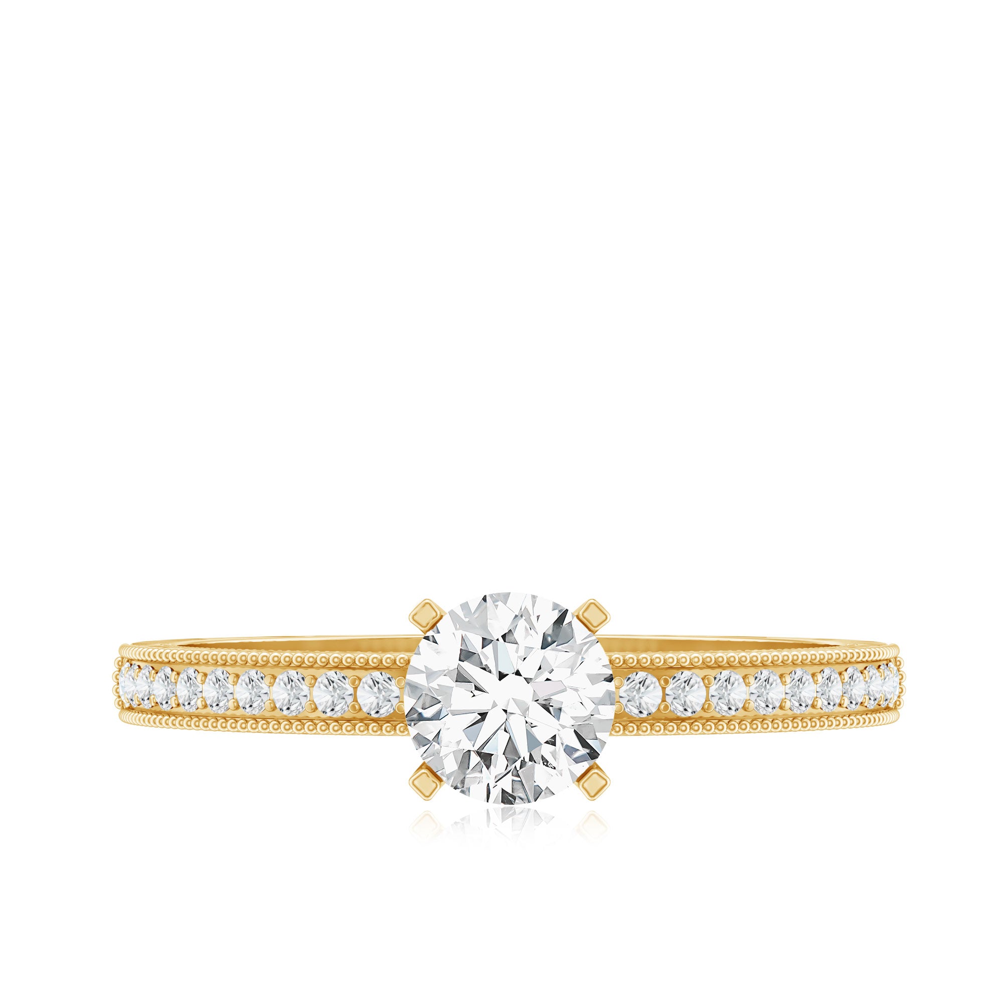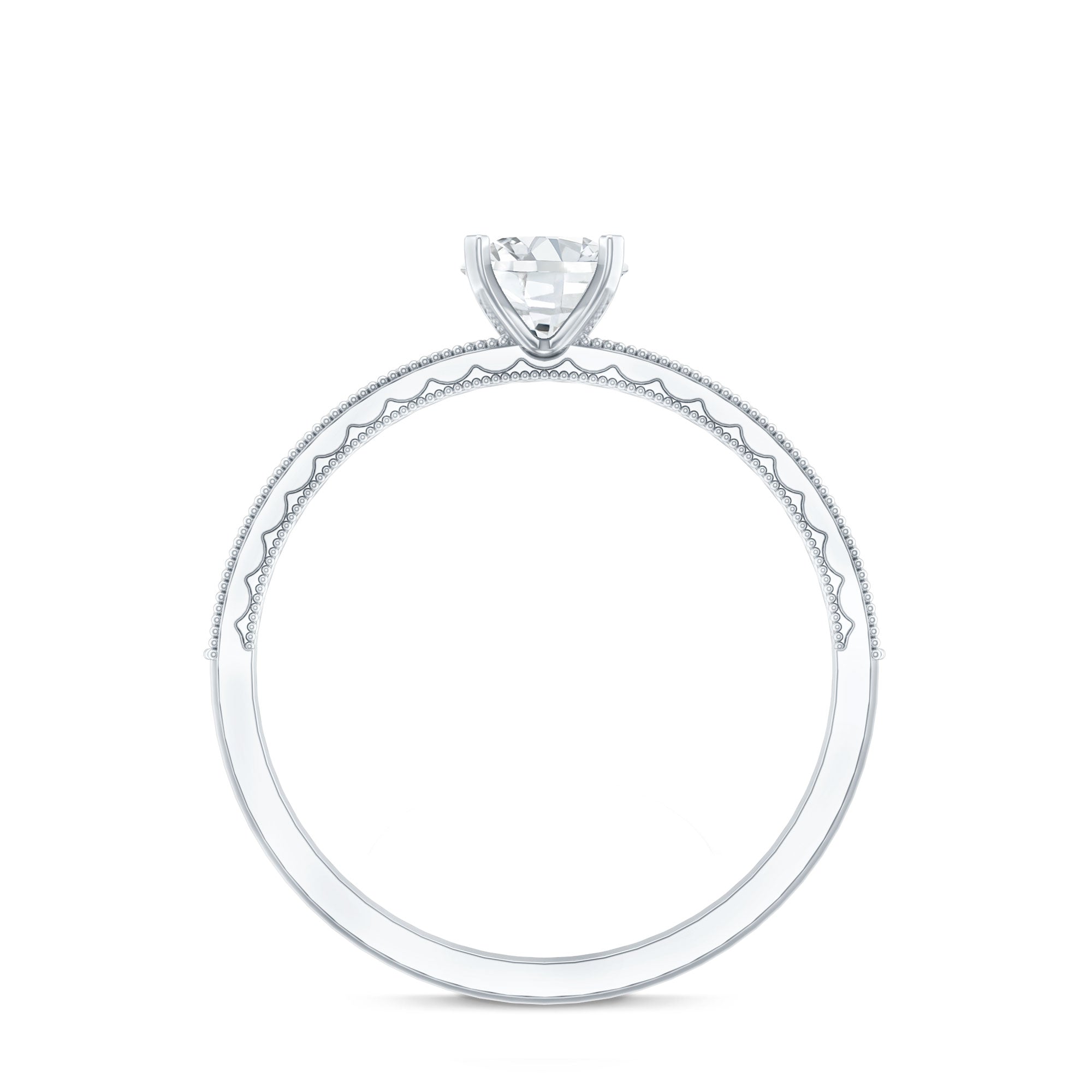 Pledge your commitment with this elegant Lab Grown Diamond Ring that is sure to take her breath away. At the center is the 5 MM Round Shaped Lab Grown Diamond in Square Prong Setting. Adding extra sparkle to the shank the Diamond accents shimmer brightly. The beaded details on the edges of the shank have a glamorous vintage style design that makes it perfect for the one who loves unique and timeless details. This scintillating Diamond Promise Ring adds a touch of color to any look. As a timeless elegance and embodying joy, this Promise Engagement Ring is perfect as an April birthday present or as a commitment ring that says it all.