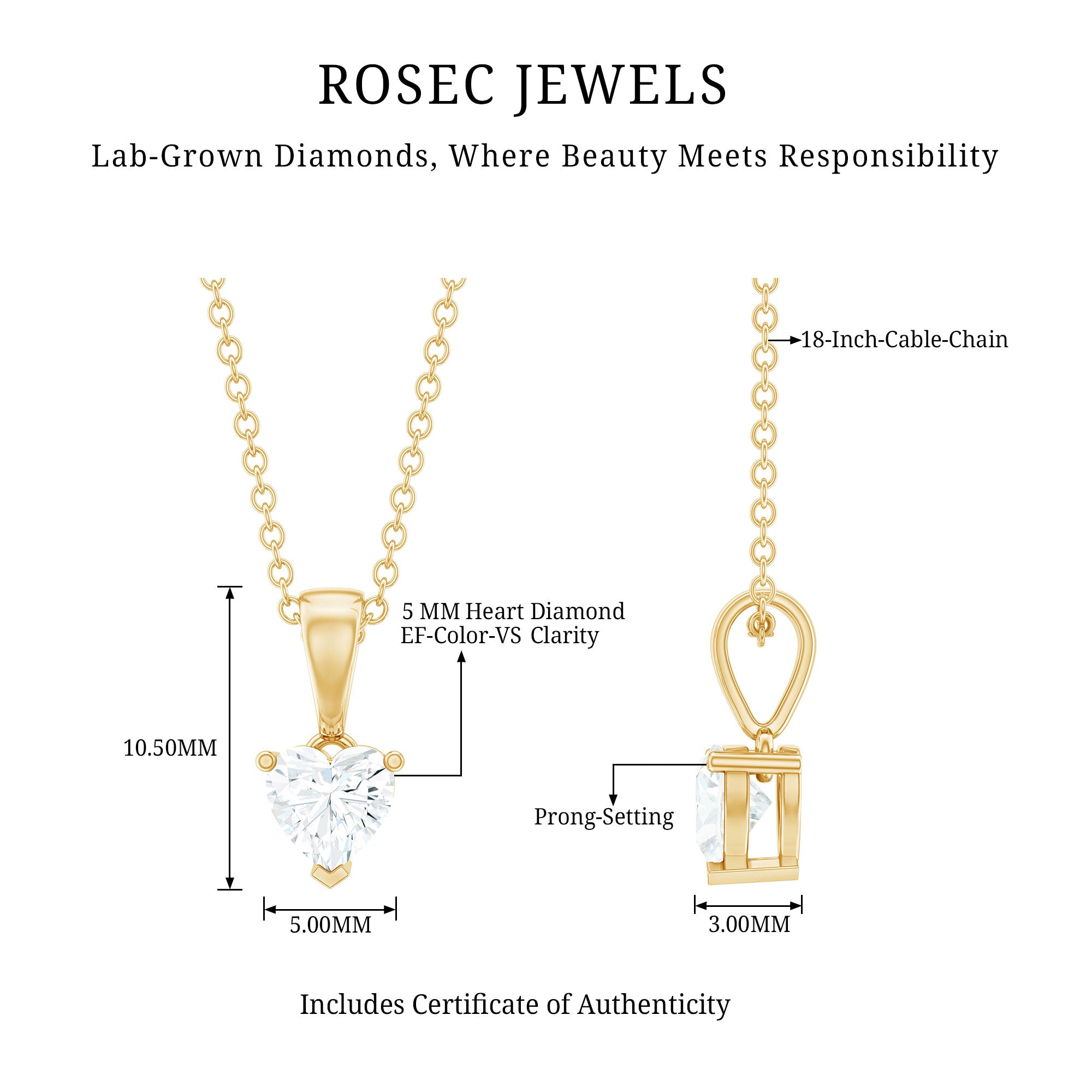 5 MM Lab Grown Diamond Heart Necklace For Women