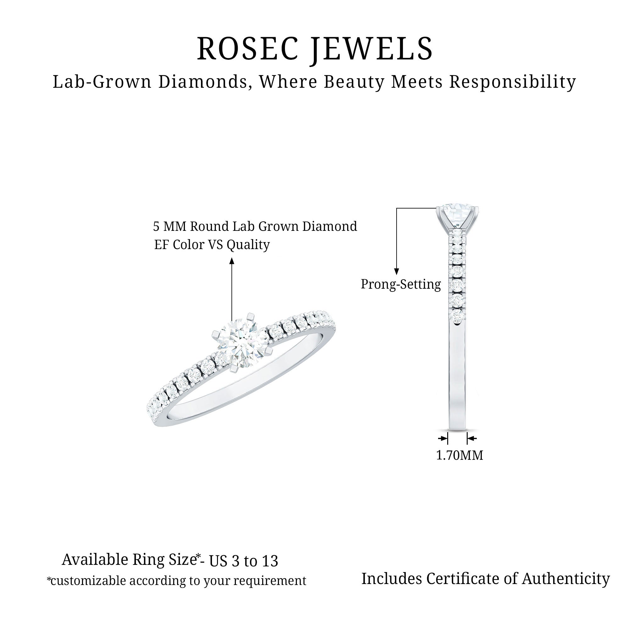 5 MM Lab Grown Diamond Simple Engagement Ring with Side Stones