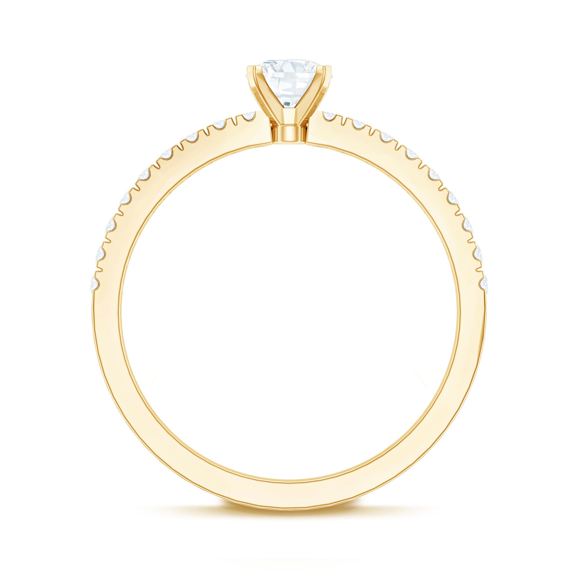 When beauty meets brilliance, you get this Diamond Engagement Ring. It features a 5 MM round cut lab grown diamond of EF-VS quality in the center with minimal side stones. The diamonds shine brightly and are securely set in a secure setting. This is the perfect Side Stone Engagement Ring for your lady love because it symbolizes clarity, love, and sparkle, making it the ideal accessory to complement her big-day look. Whether you are looking for a timeless classic or something modern but simple, this Half Carat Diamond Ring is the perfect choice. An ideal token of your love and devotion.