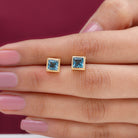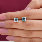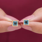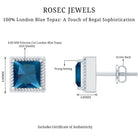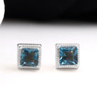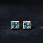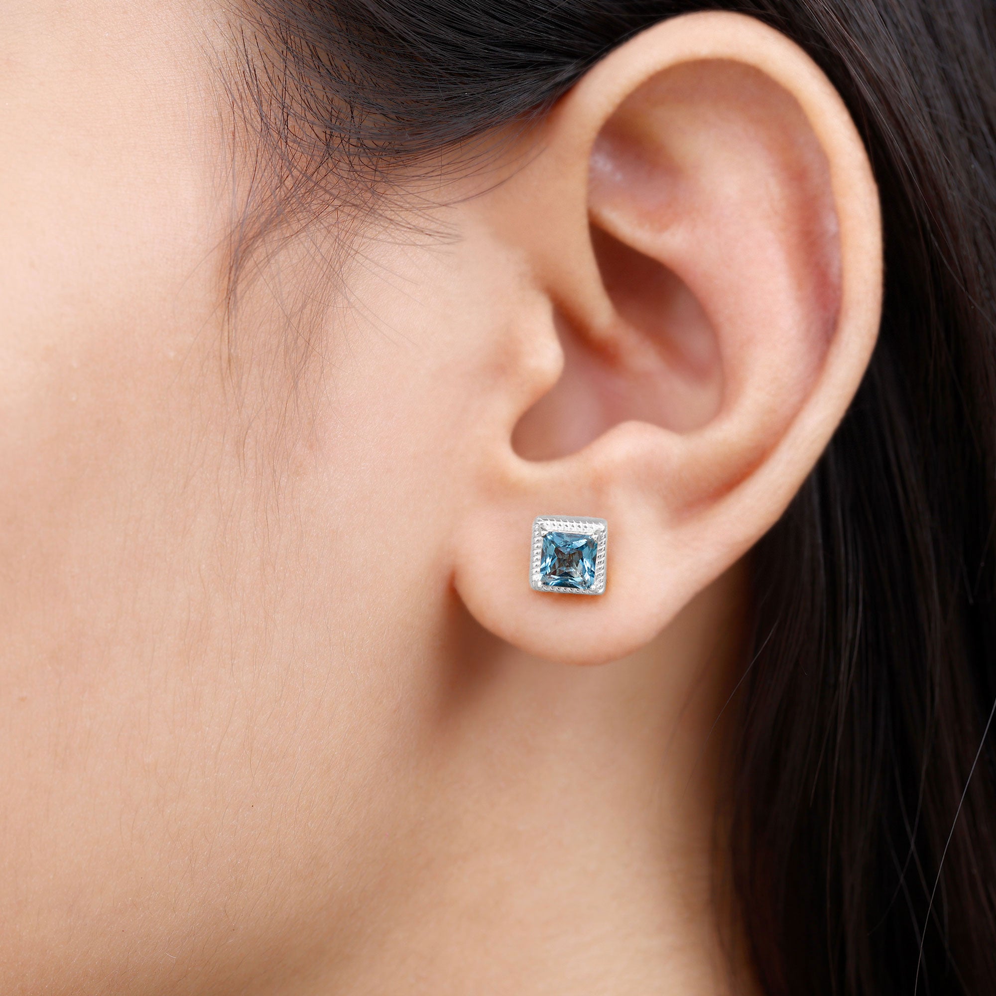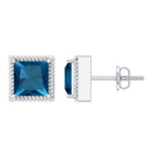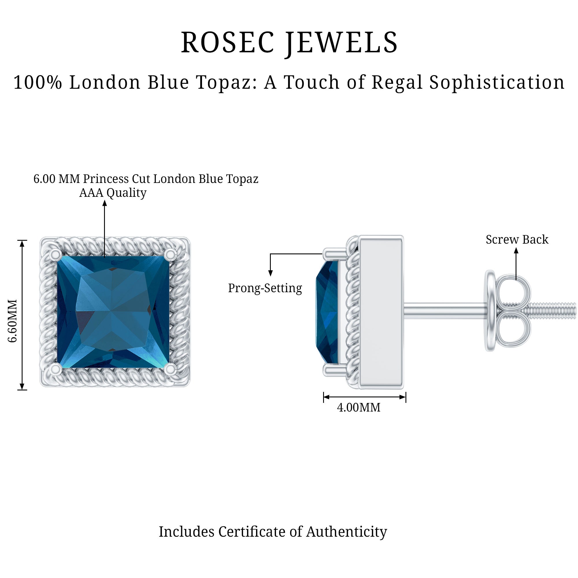5 MM Princess Cut London Blue Topaz Solitaire Stud Earrings with Rope Frame Details
