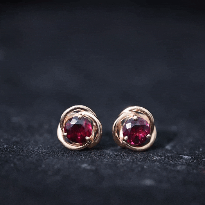 5 MM Rhodolite Solitaire and Gold Swirl Stud Earrings
