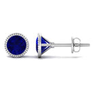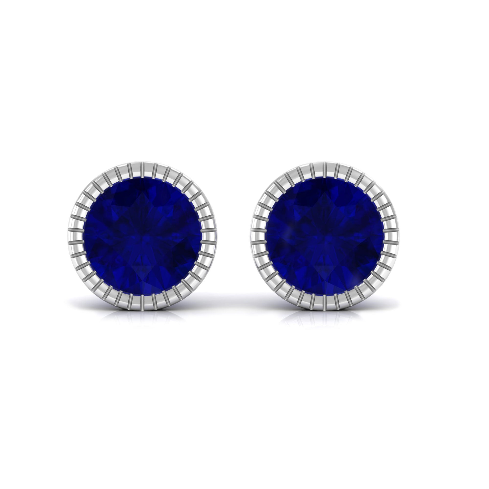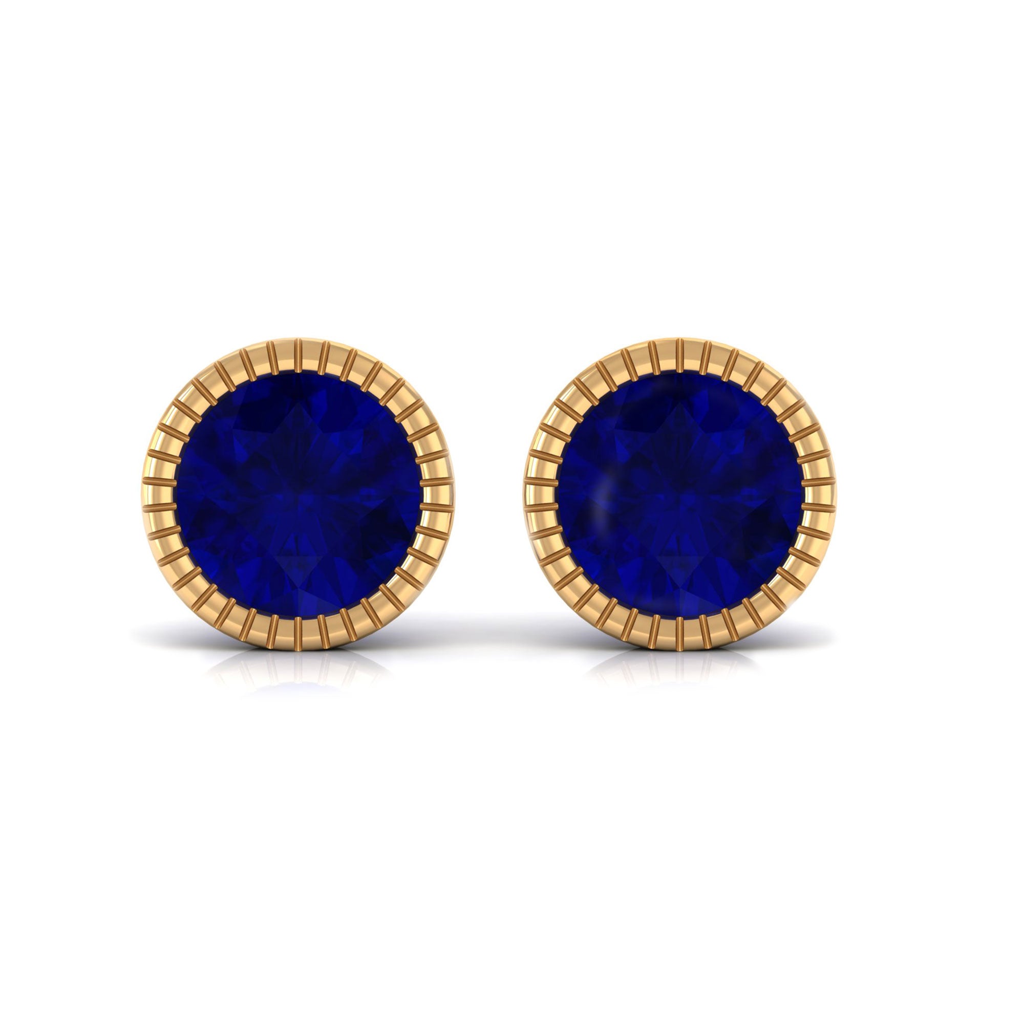 5 MM Round Blue Sapphire Solitaire Stud Earrings in Bezel Setting