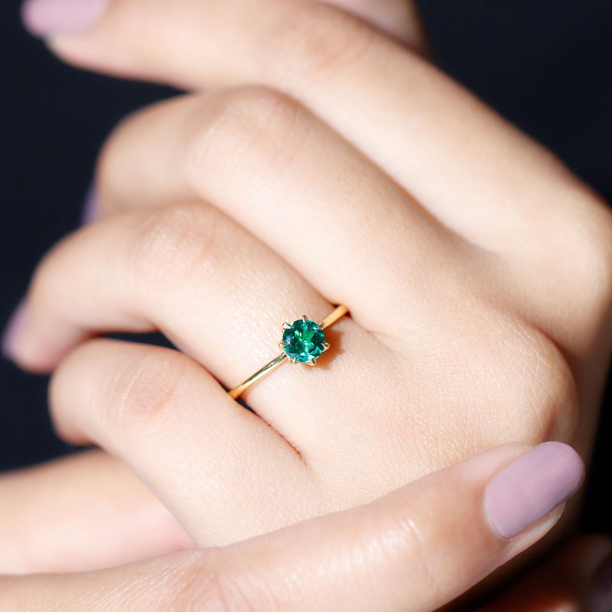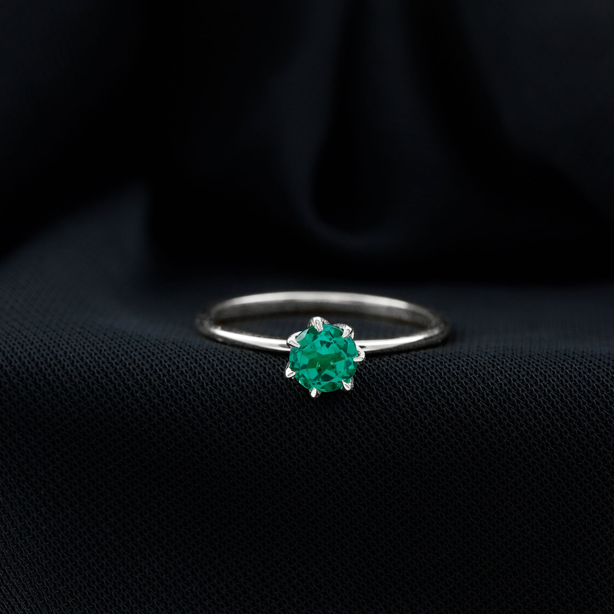 5 MM Round Created Emerald Solitaire Ring in Lotus Basket Setting