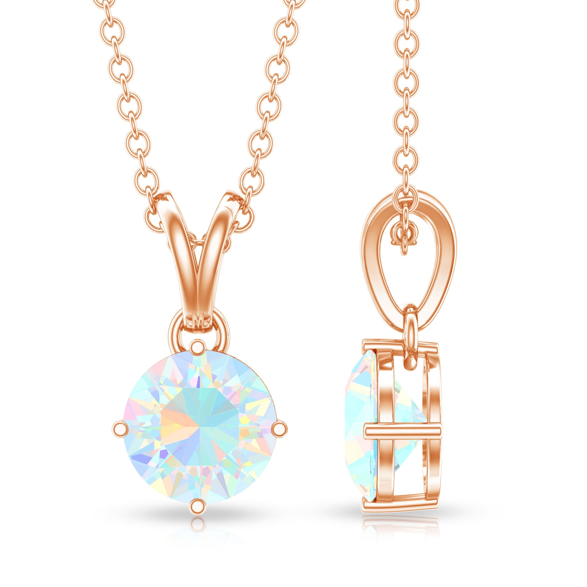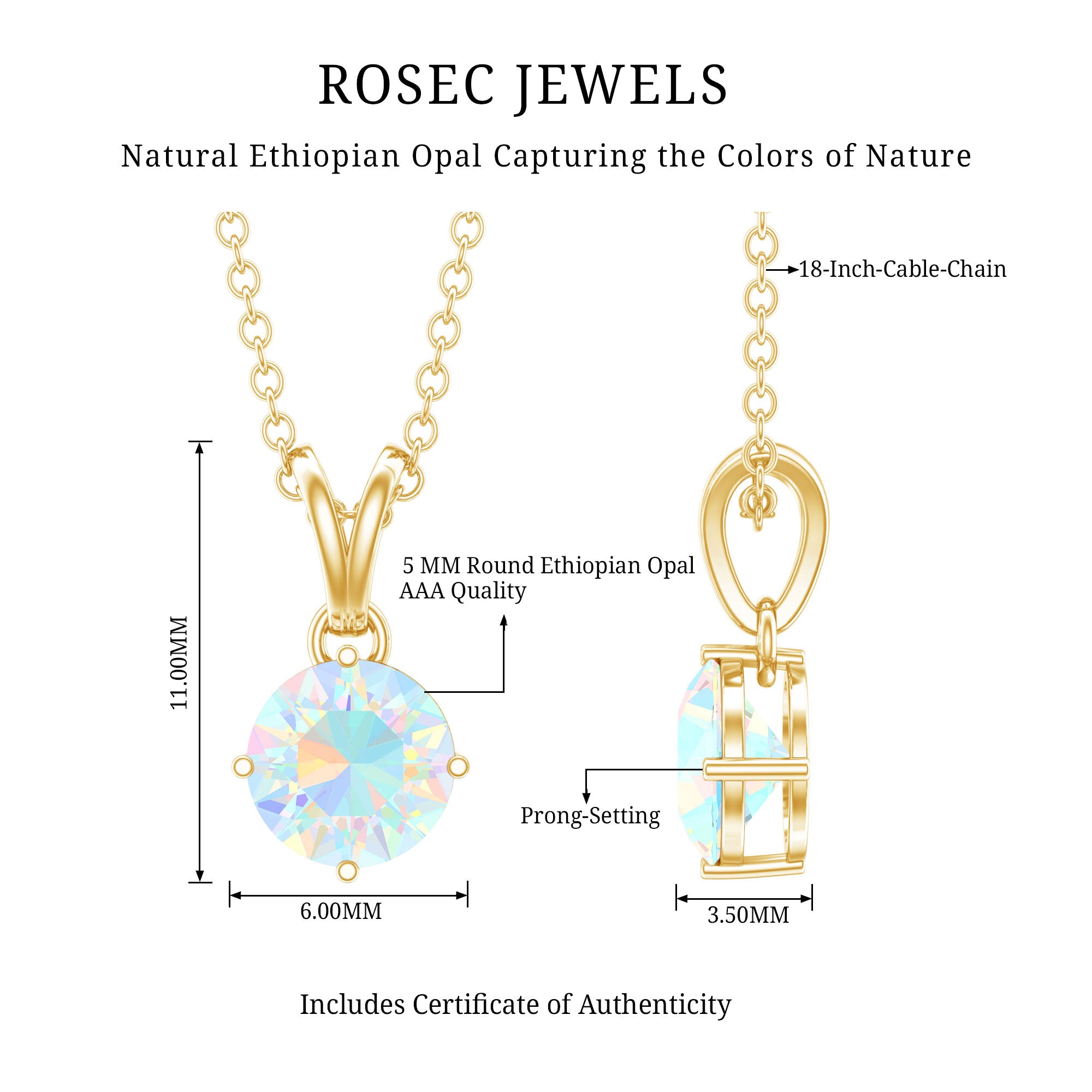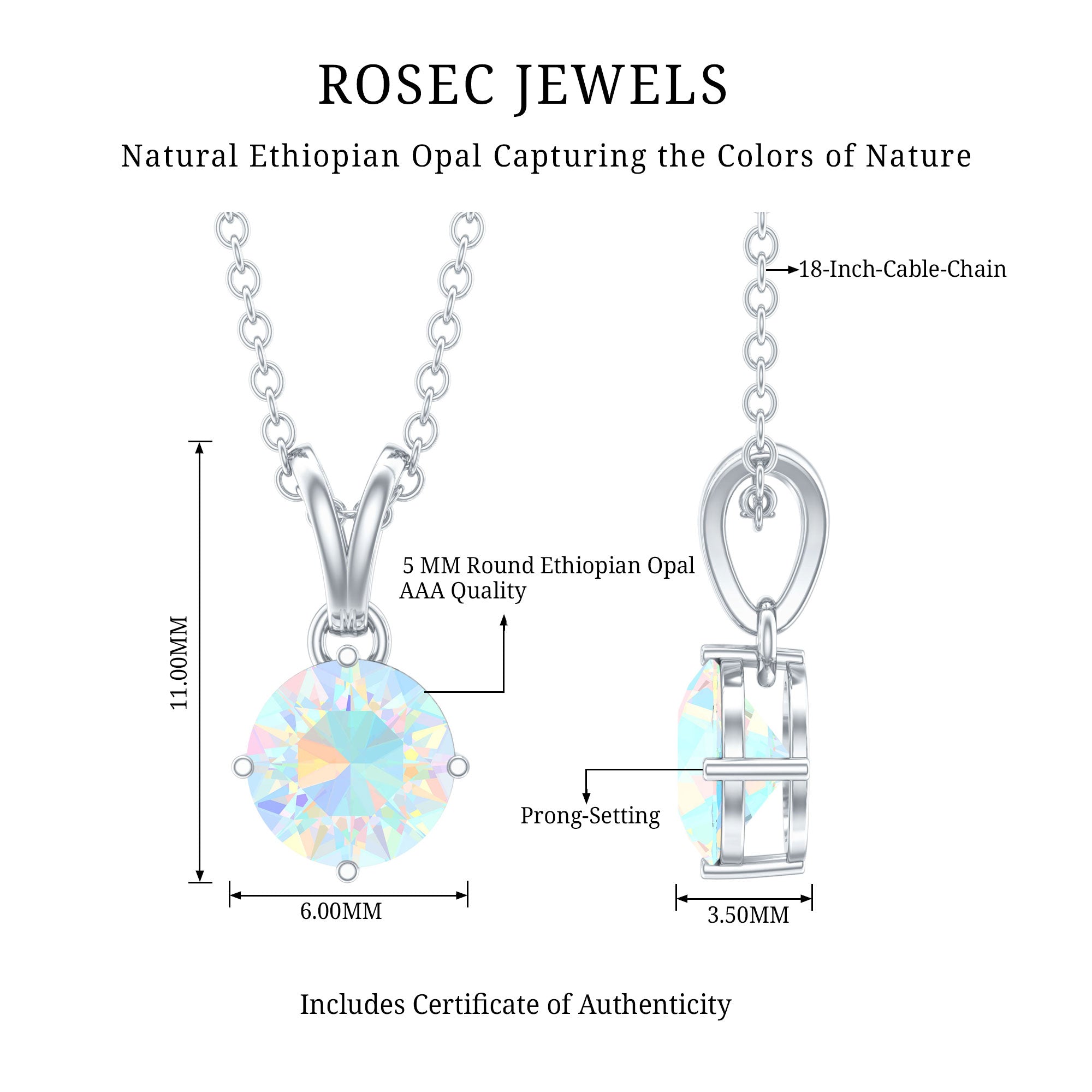 5 MM Round Cut Ethiopian Opal Solitaire Pendant in 4 Prong Setting with Rabbit Ear Bail