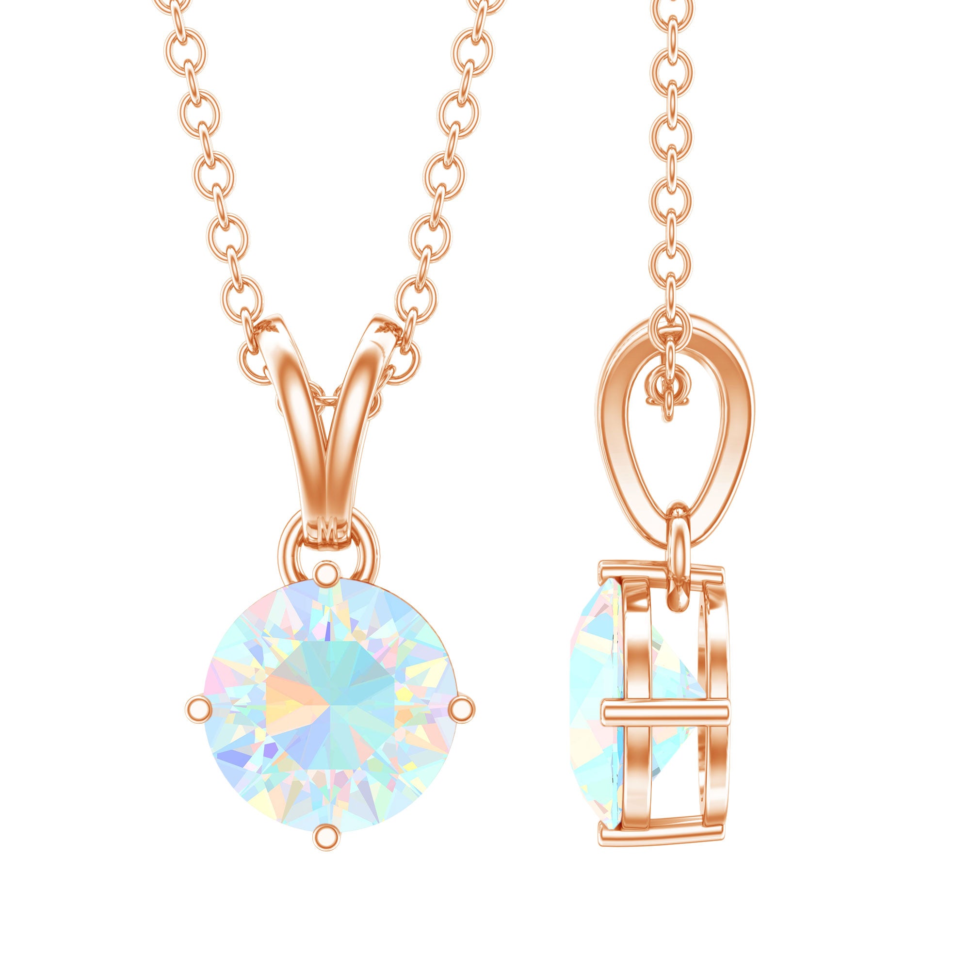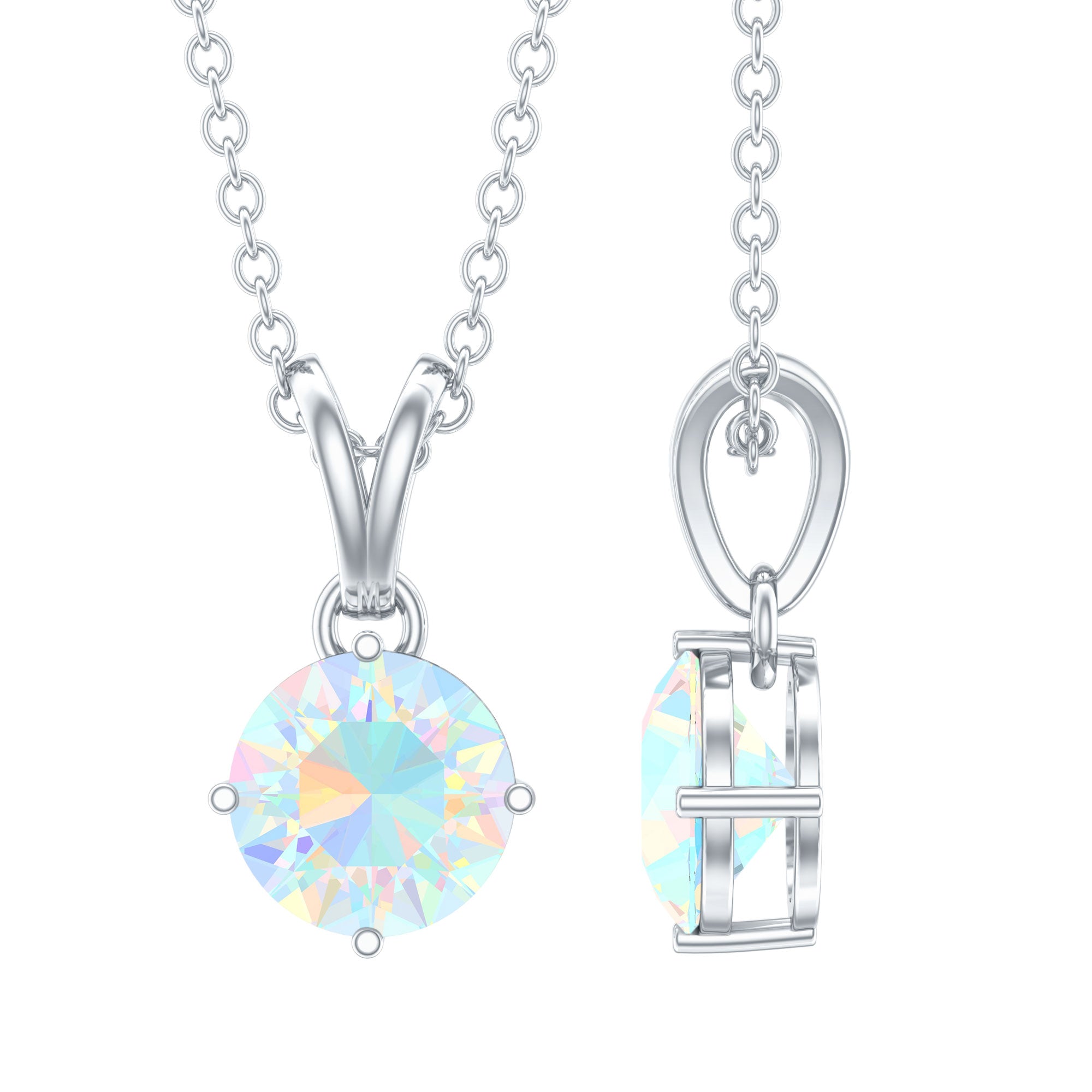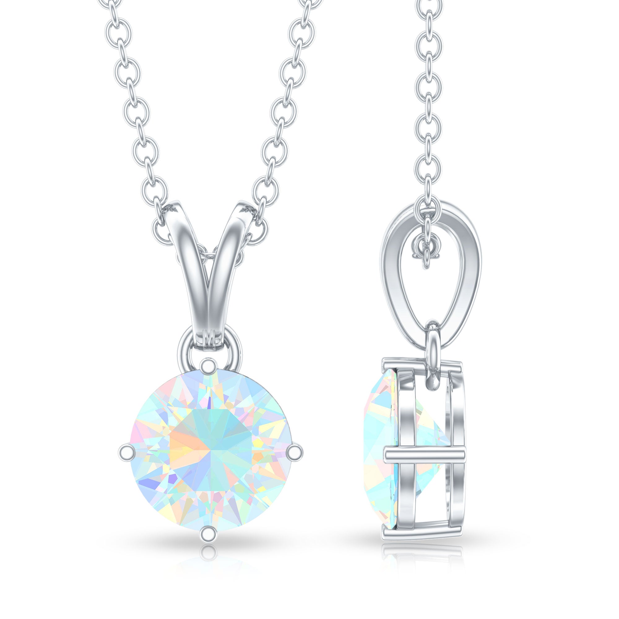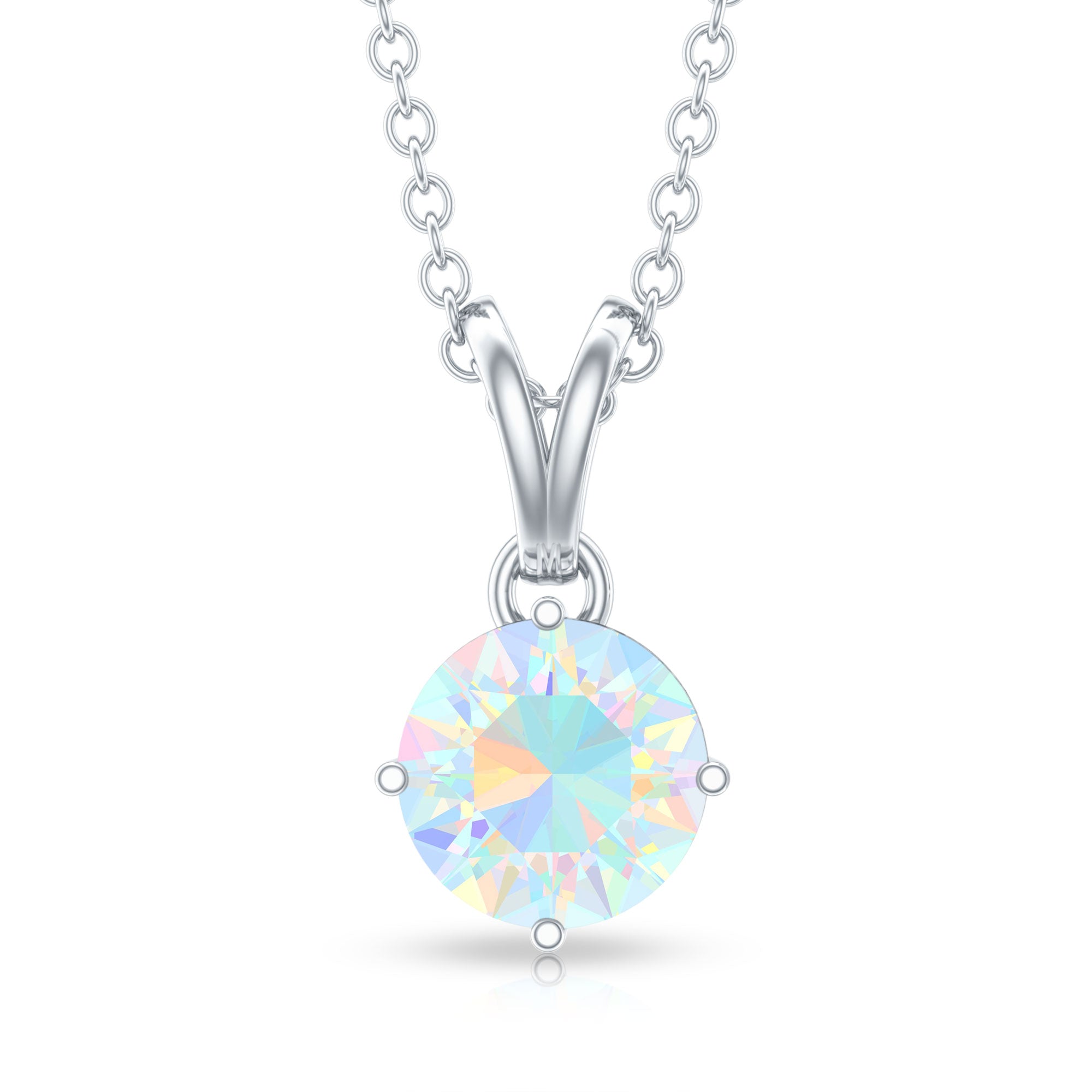 5 MM Round Cut Ethiopian Opal Solitaire Pendant in 4 Prong Setting with Rabbit Ear Bail