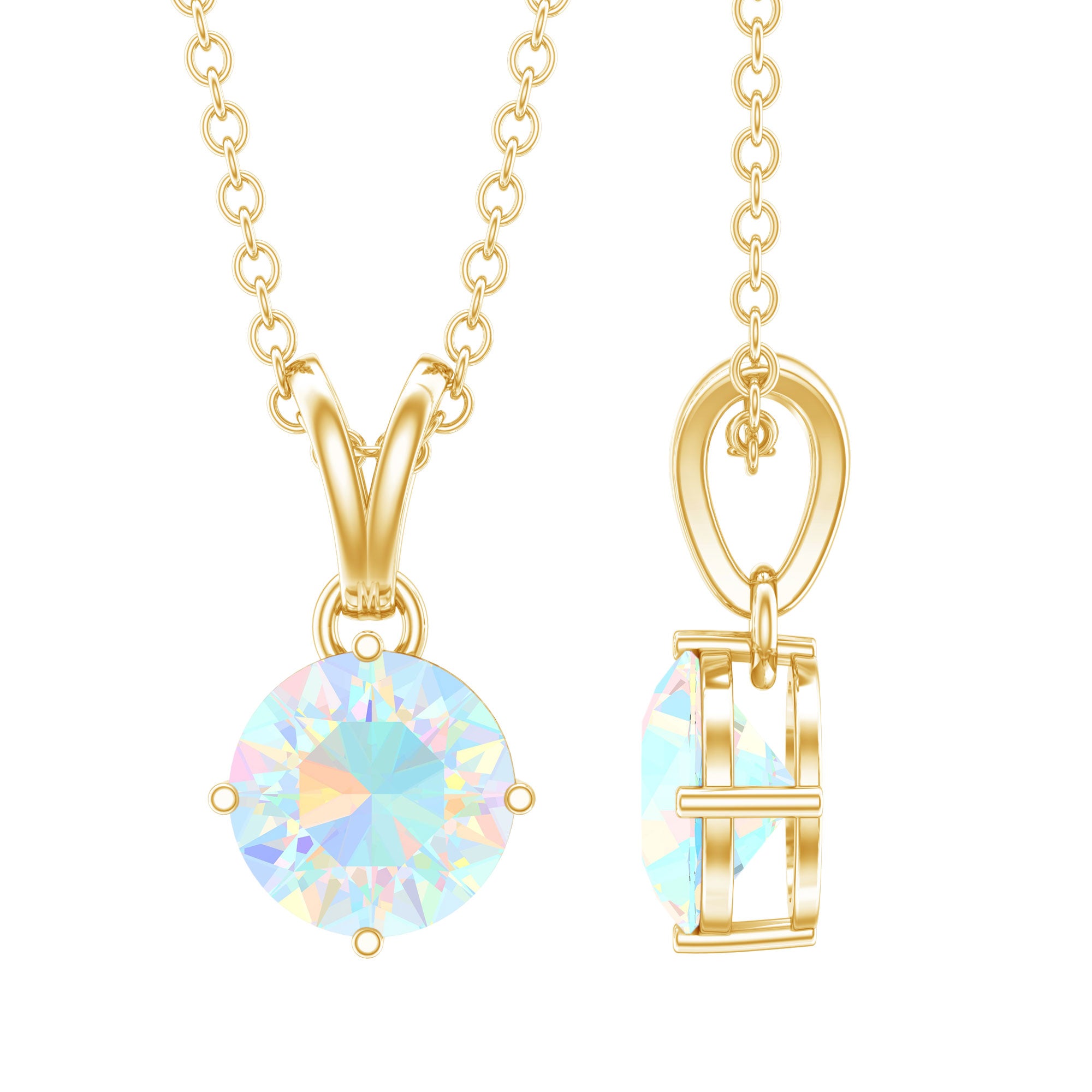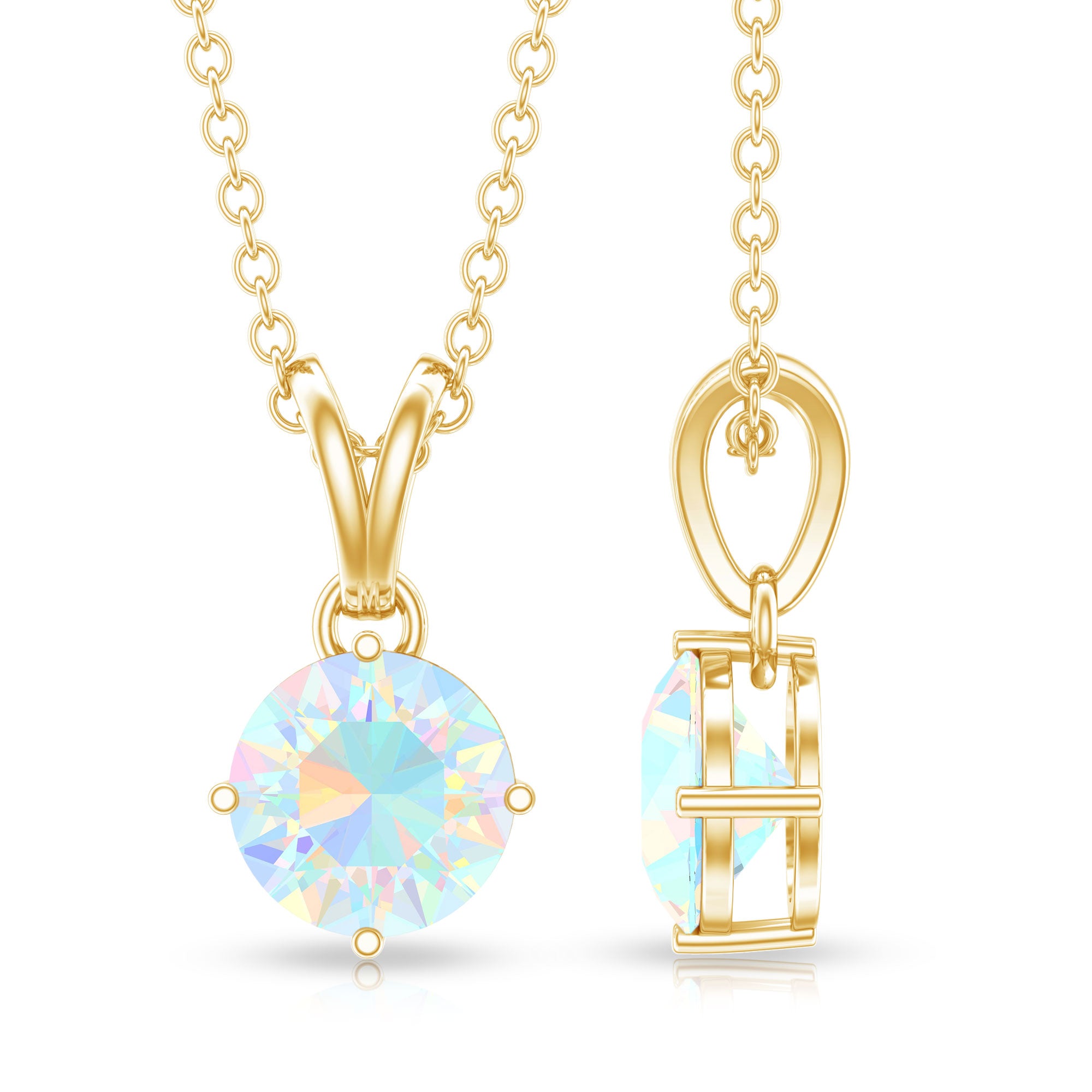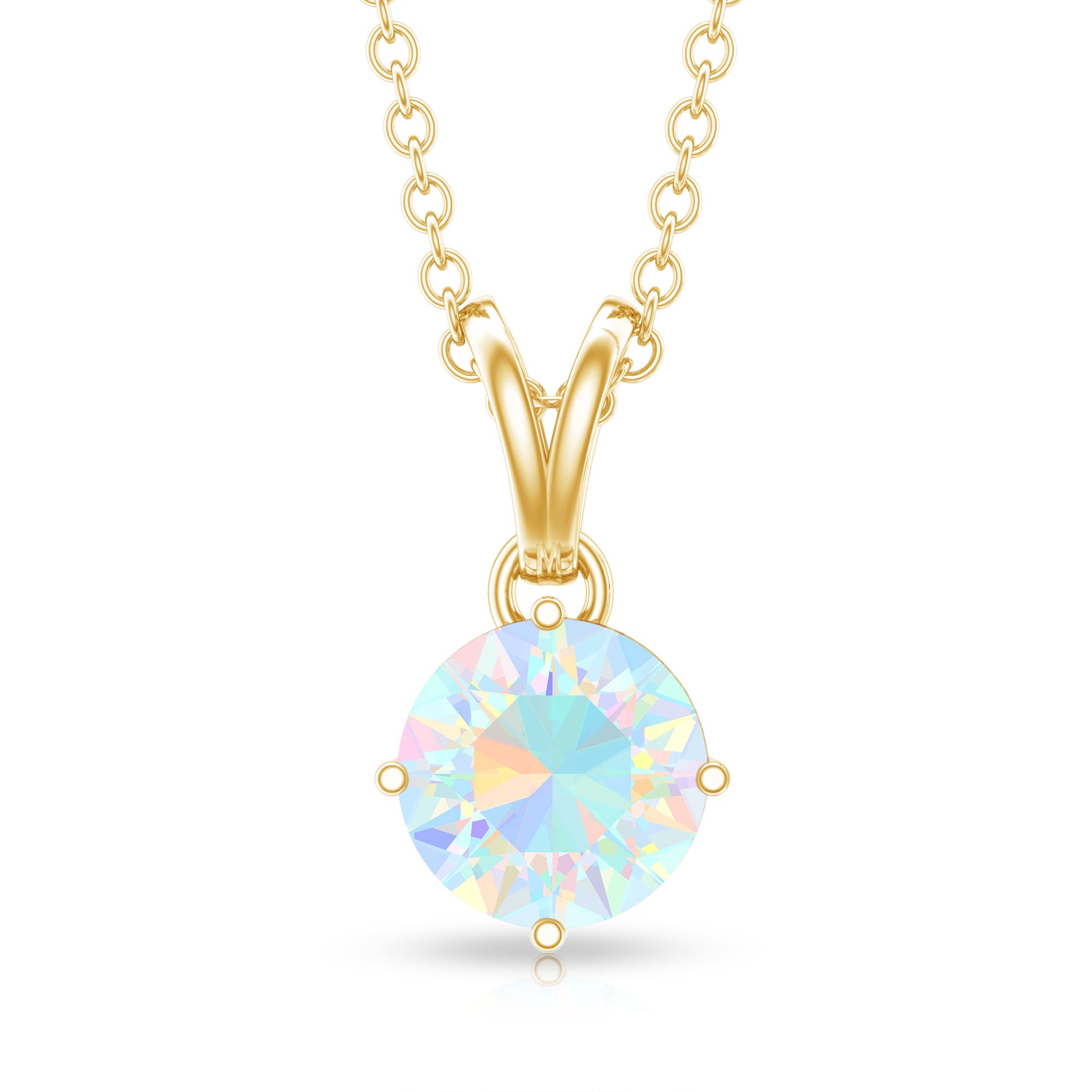 Magnify your style with this beautiful Drop Pendant Necklace is embellished with Round Shape Ethiopian Opal set as Solitaire in 4 Prong Setting. This Gold Rabbit Ear Bail Pendant is Composed of Solid Gold.