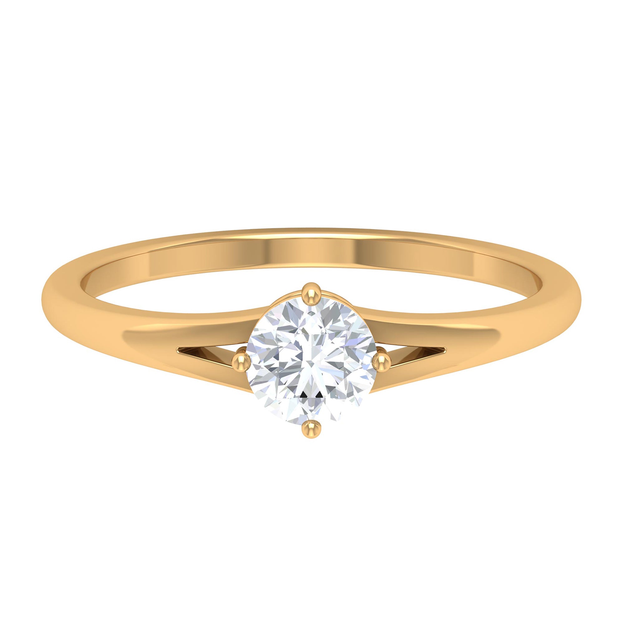 5 MM Round Cut Zircon Solitaire Ring in Gold with Split Shank