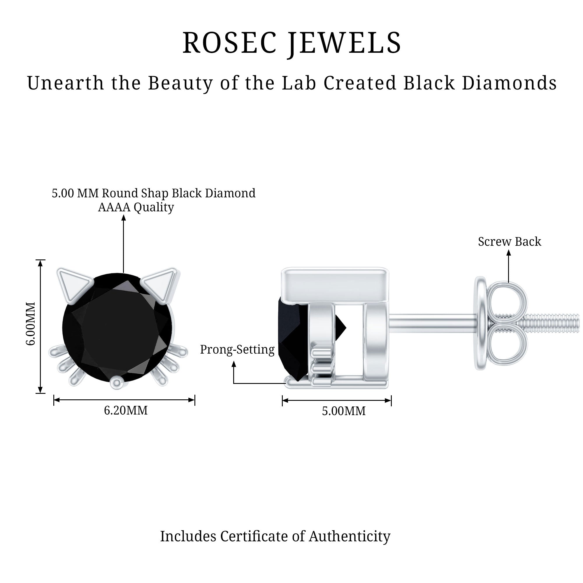 5 MM Round Lab Created Black Diamond Solitaire Cat Stud Earrings