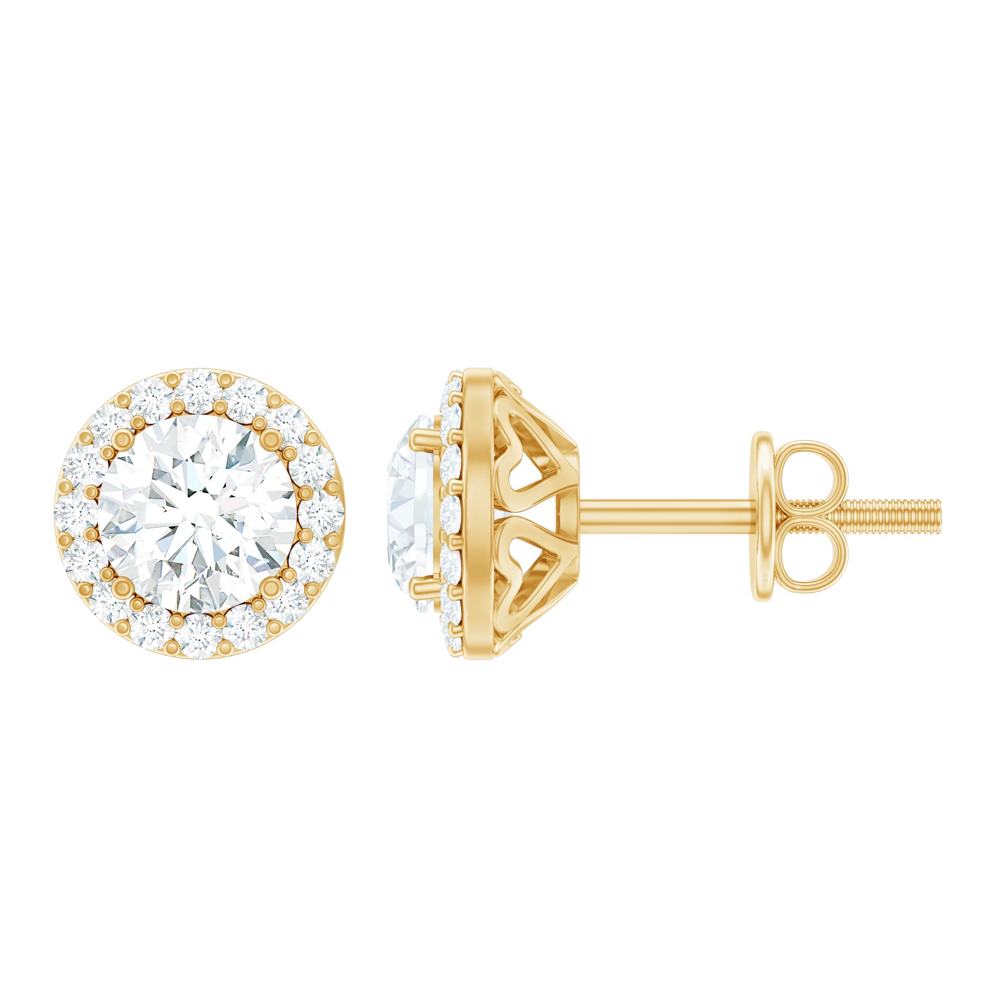 5 MM Round Lab Grown Diamond Halo Stud Earrings With Screw Back