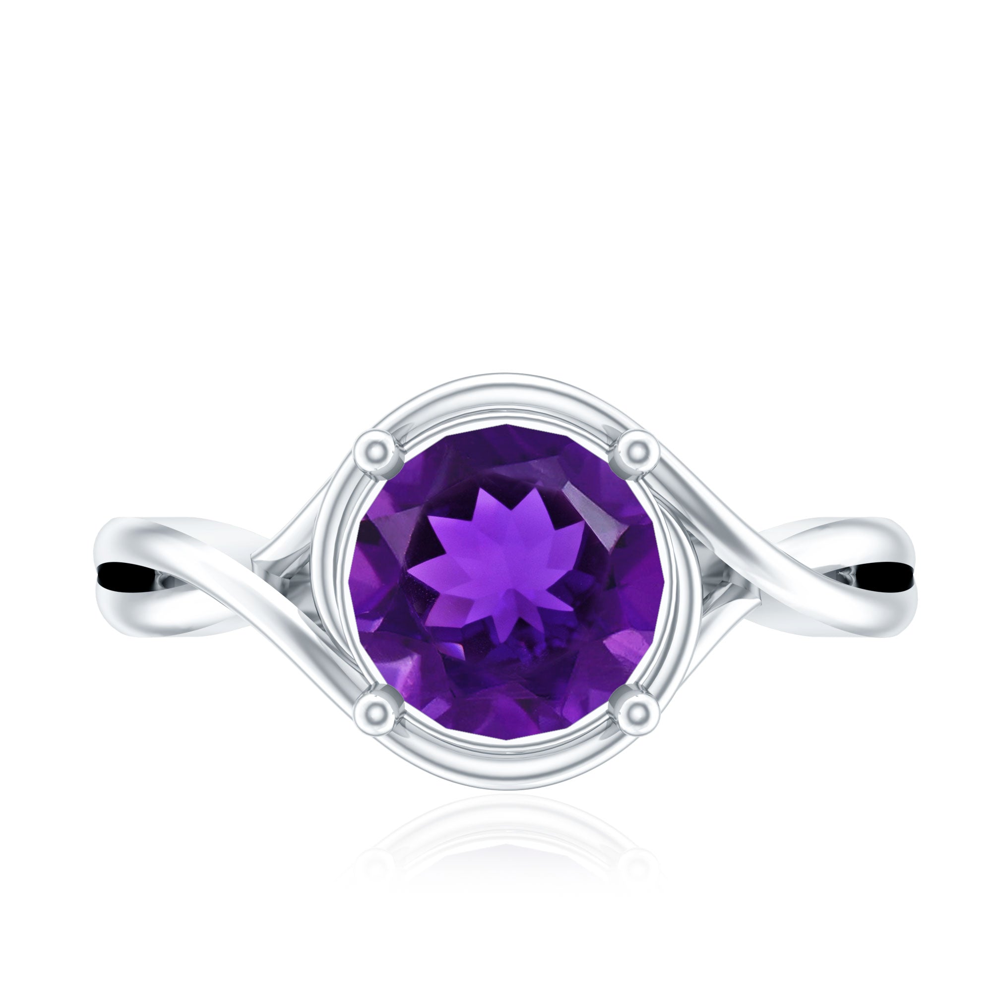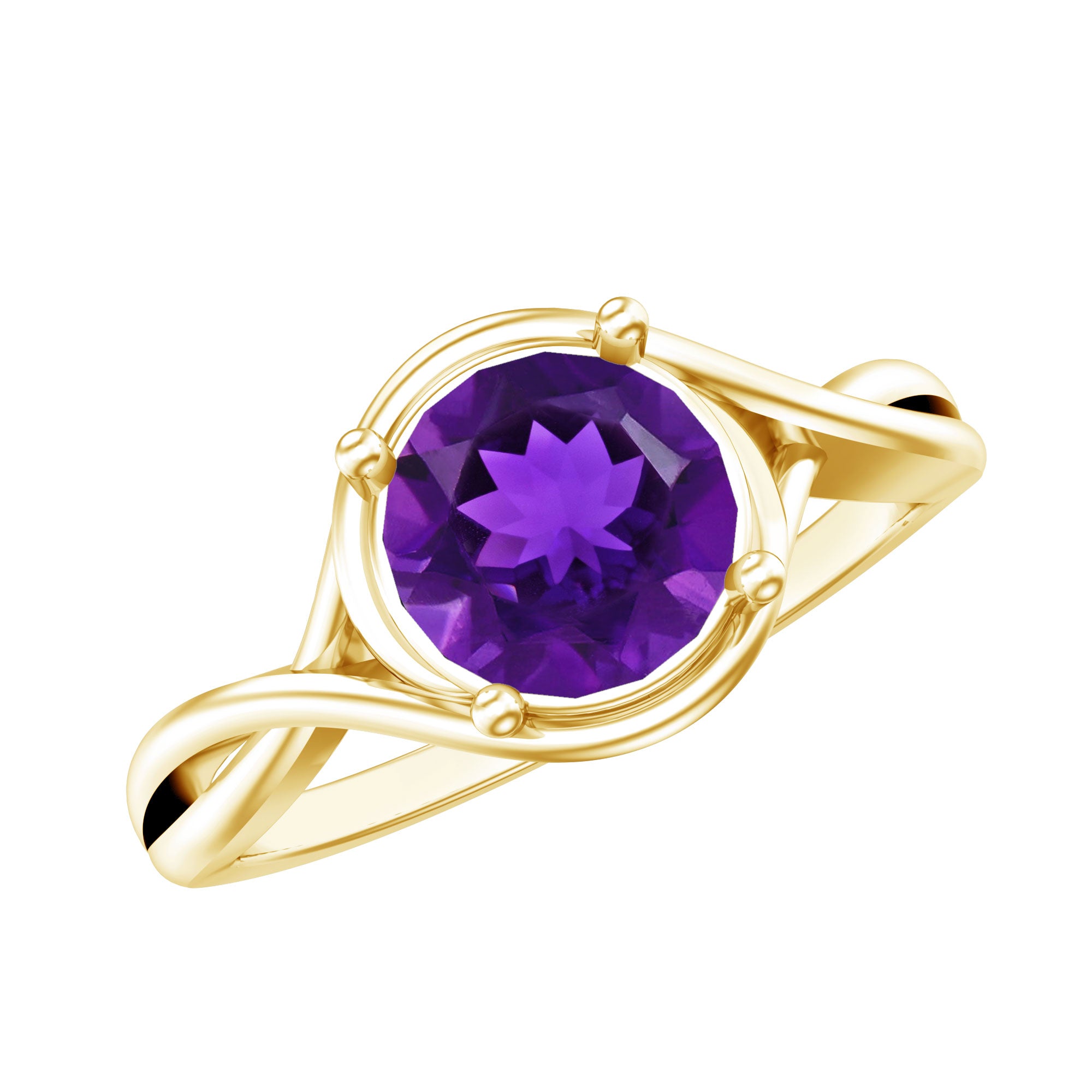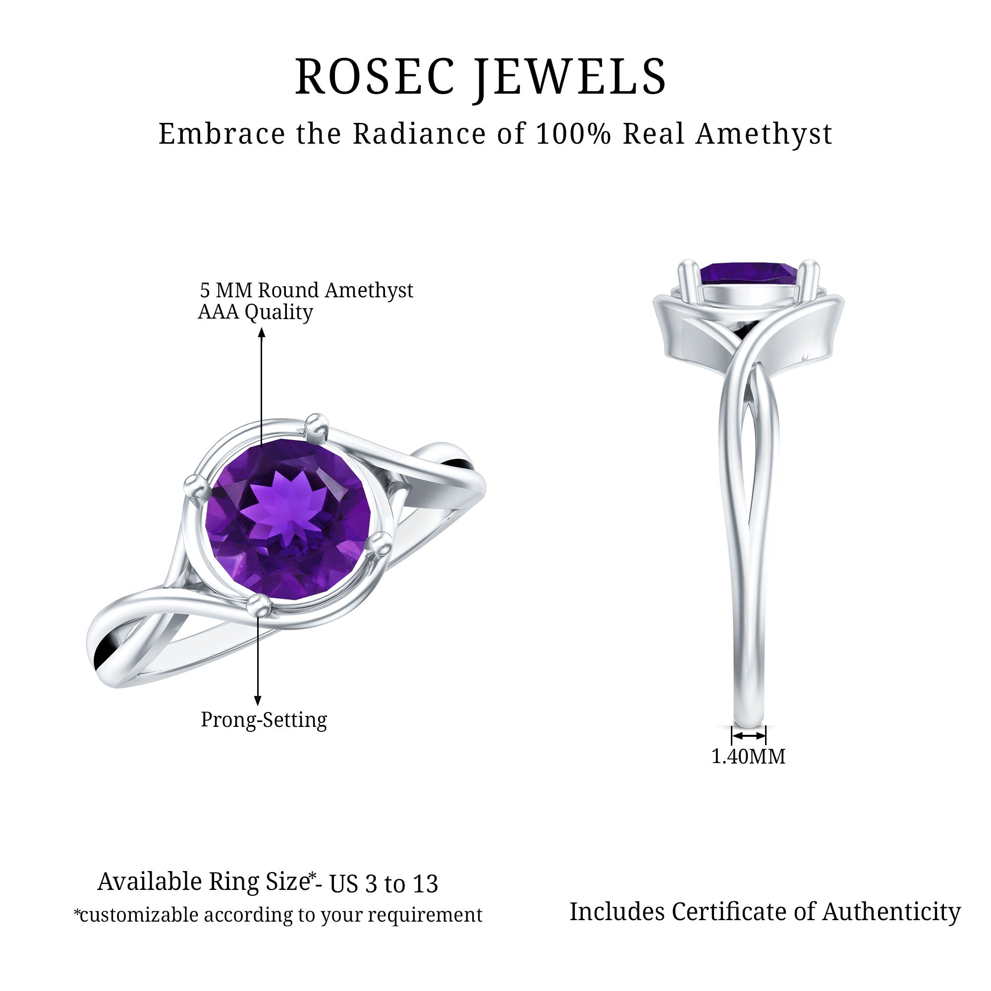 5 MM Round Shape Amethyst Solitaire Ring in Four Prong Setting with Crossover Shank