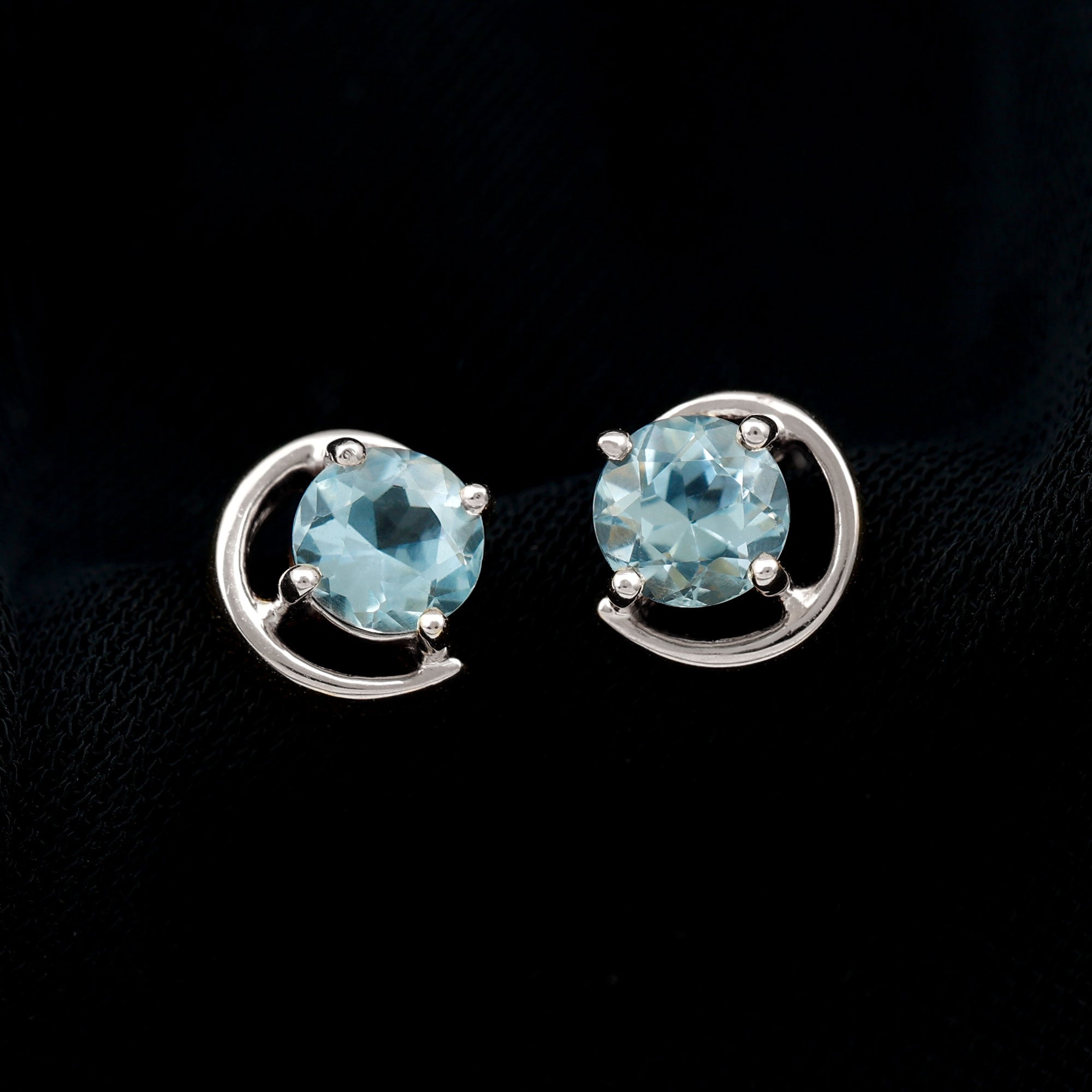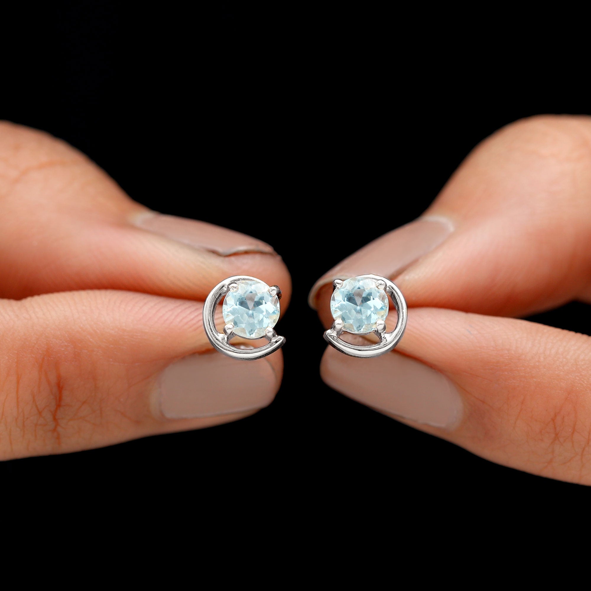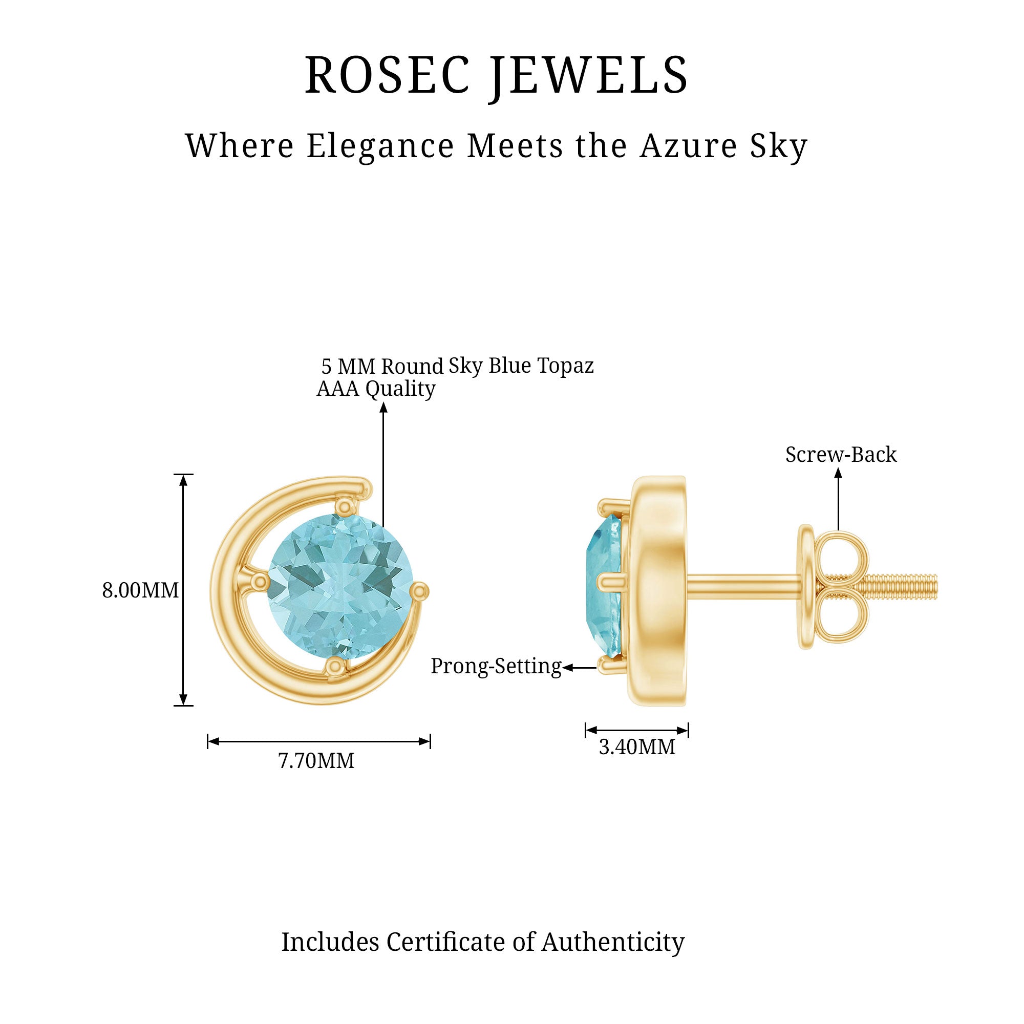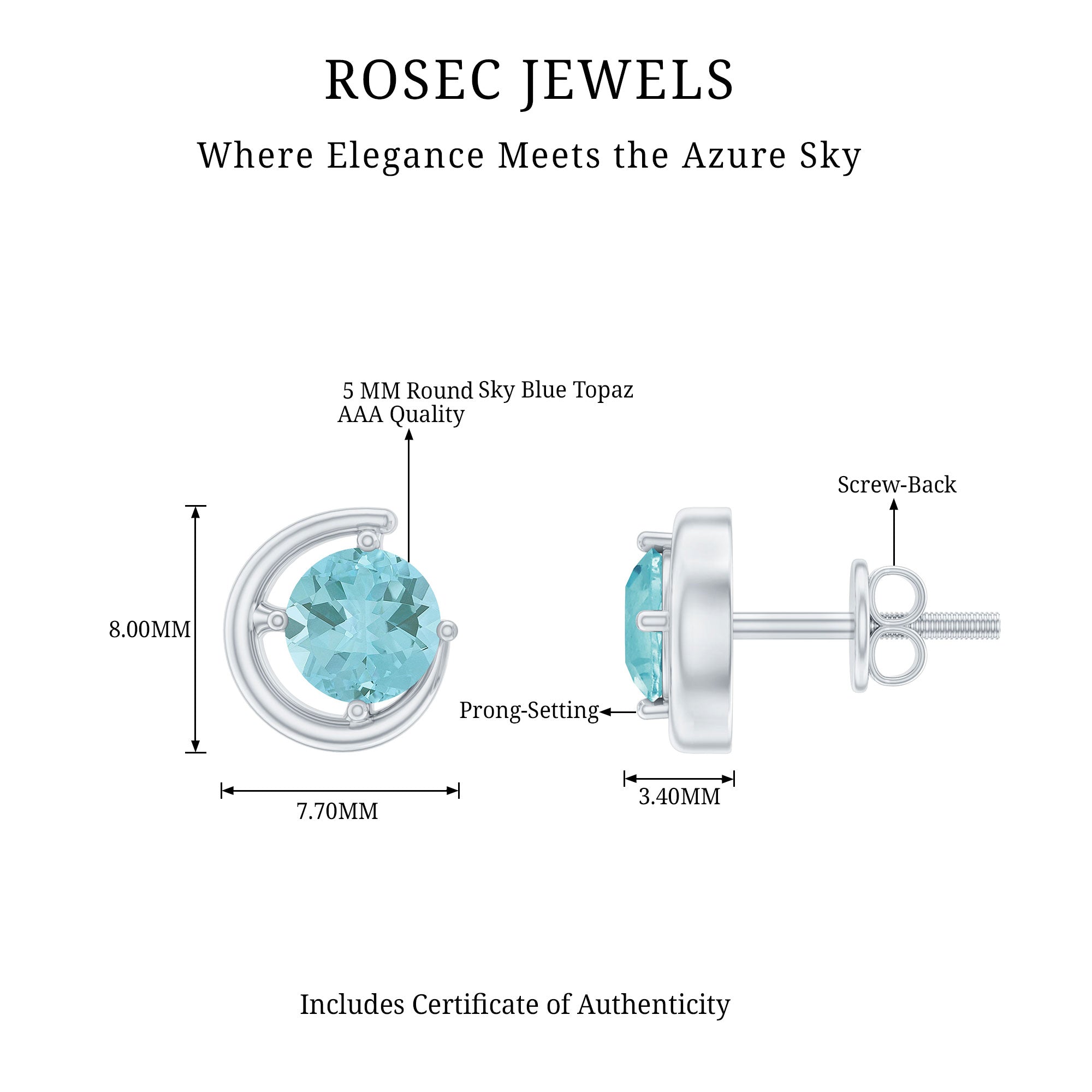 5 MM Round Sky Blue Topaz Simple Solitaire Stud Earrings in Prong Setting