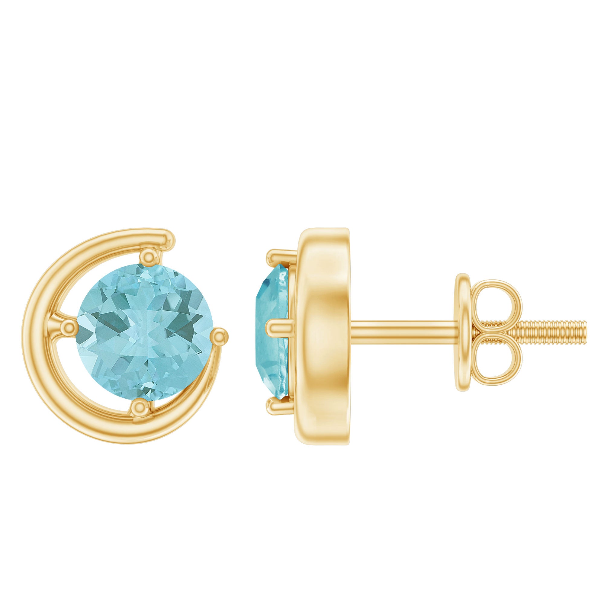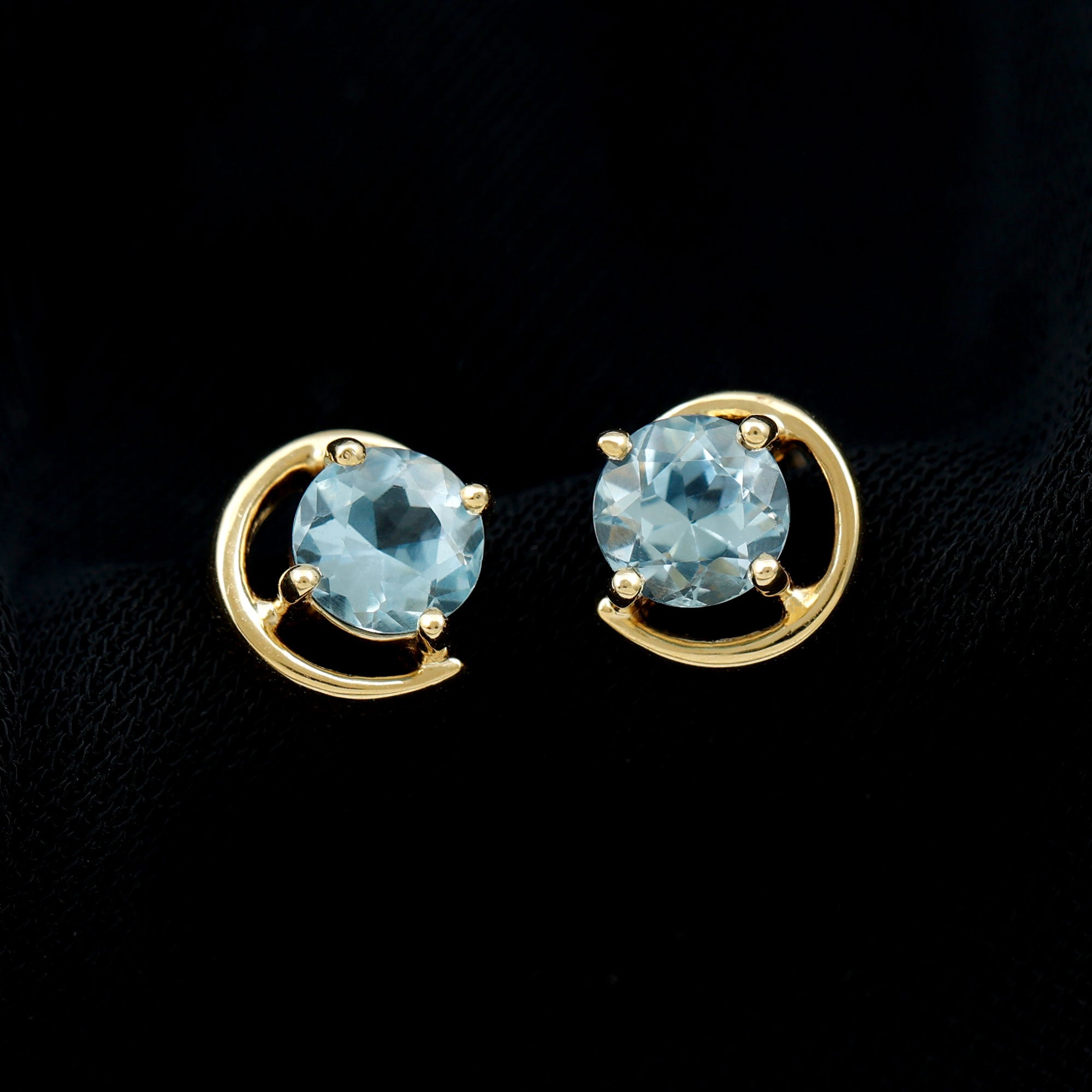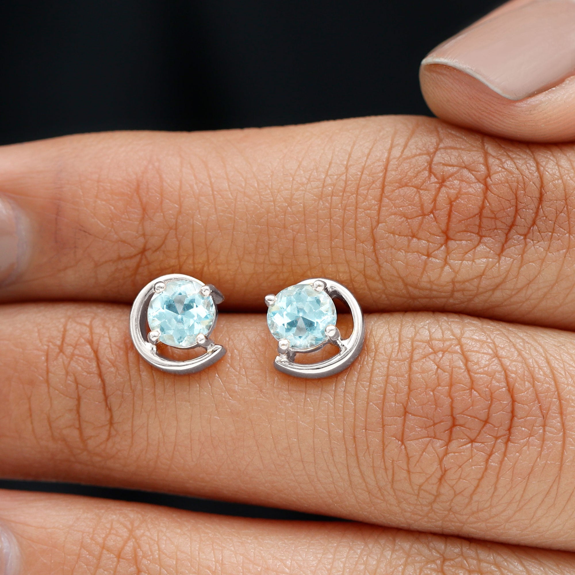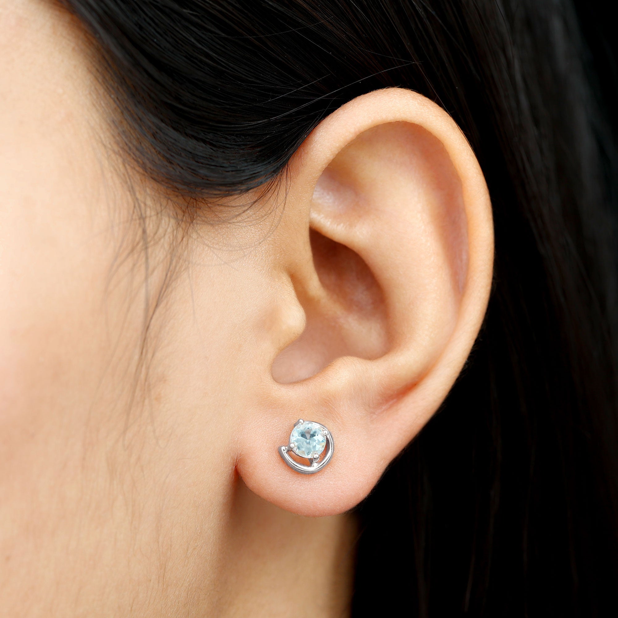 5 MM Round Sky Blue Topaz Simple Solitaire Stud Earrings in Prong Setting