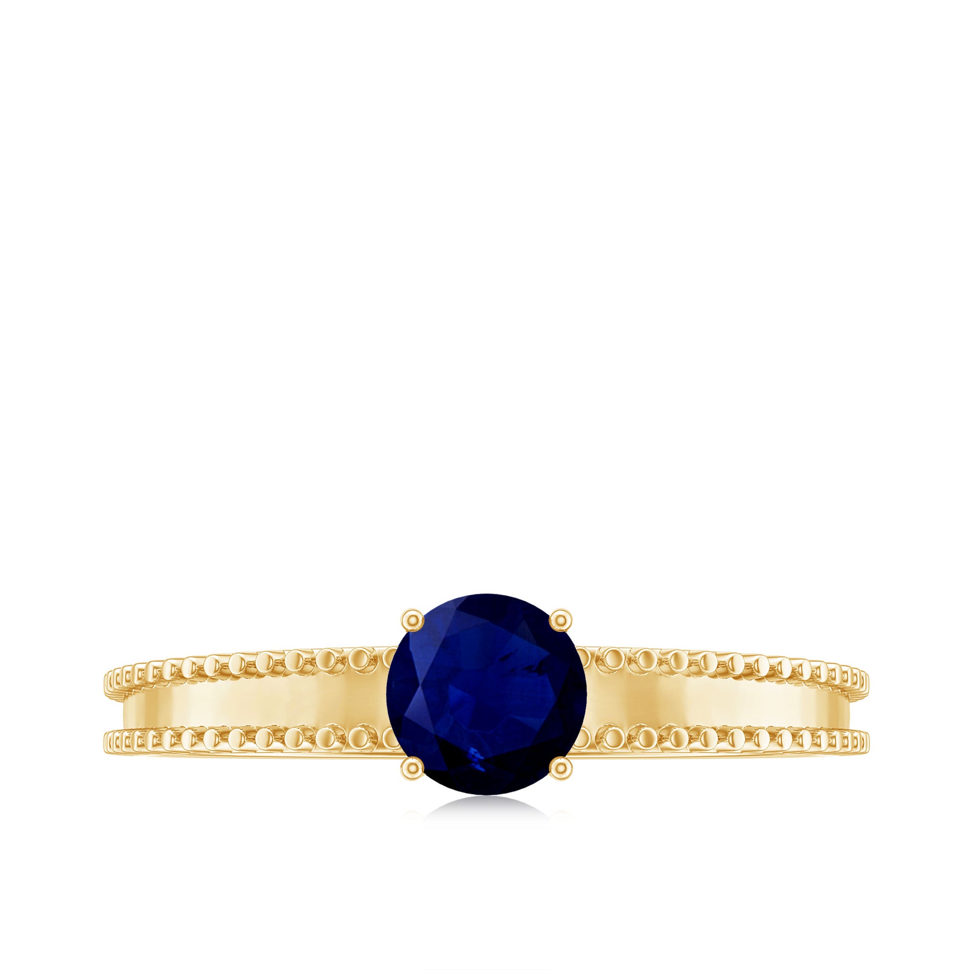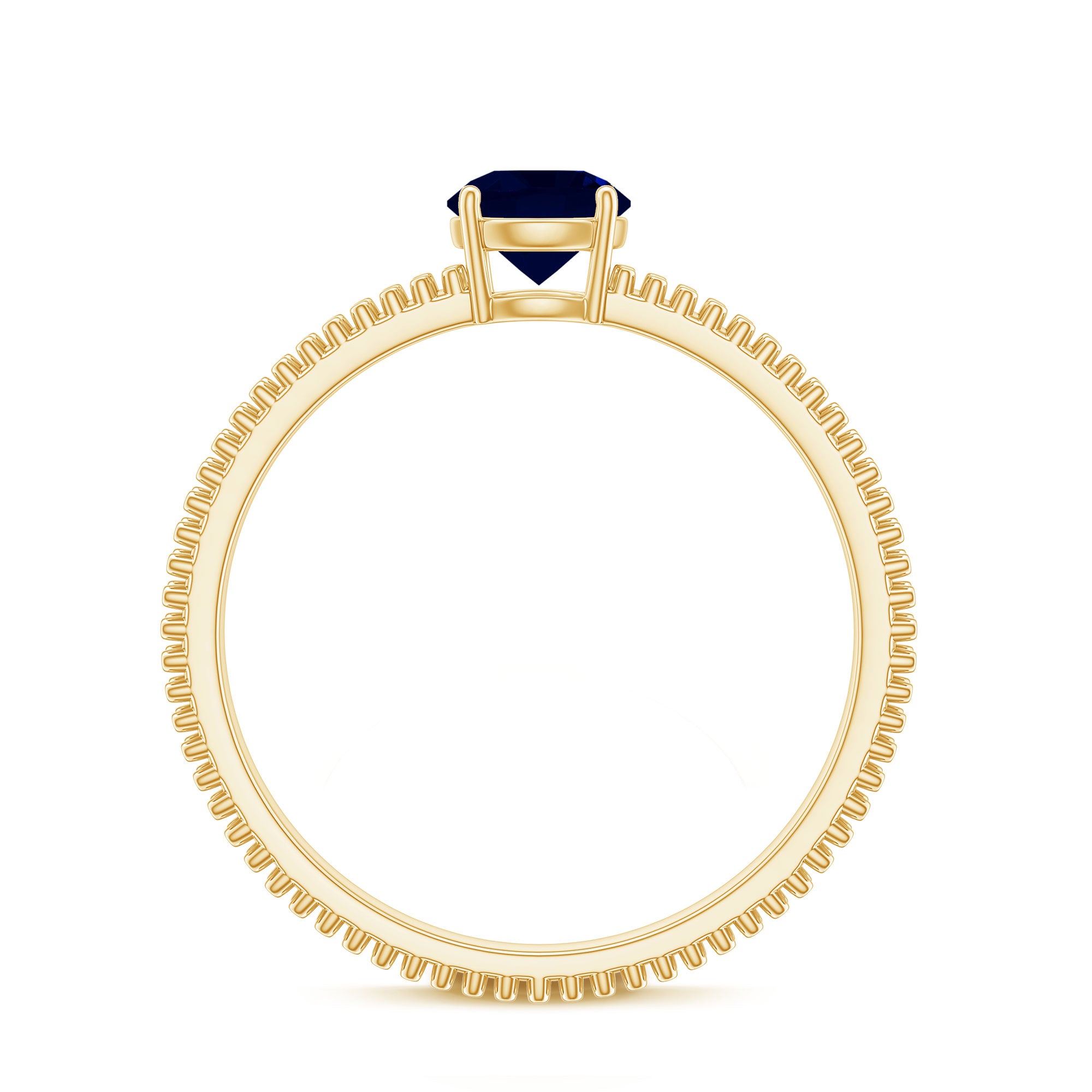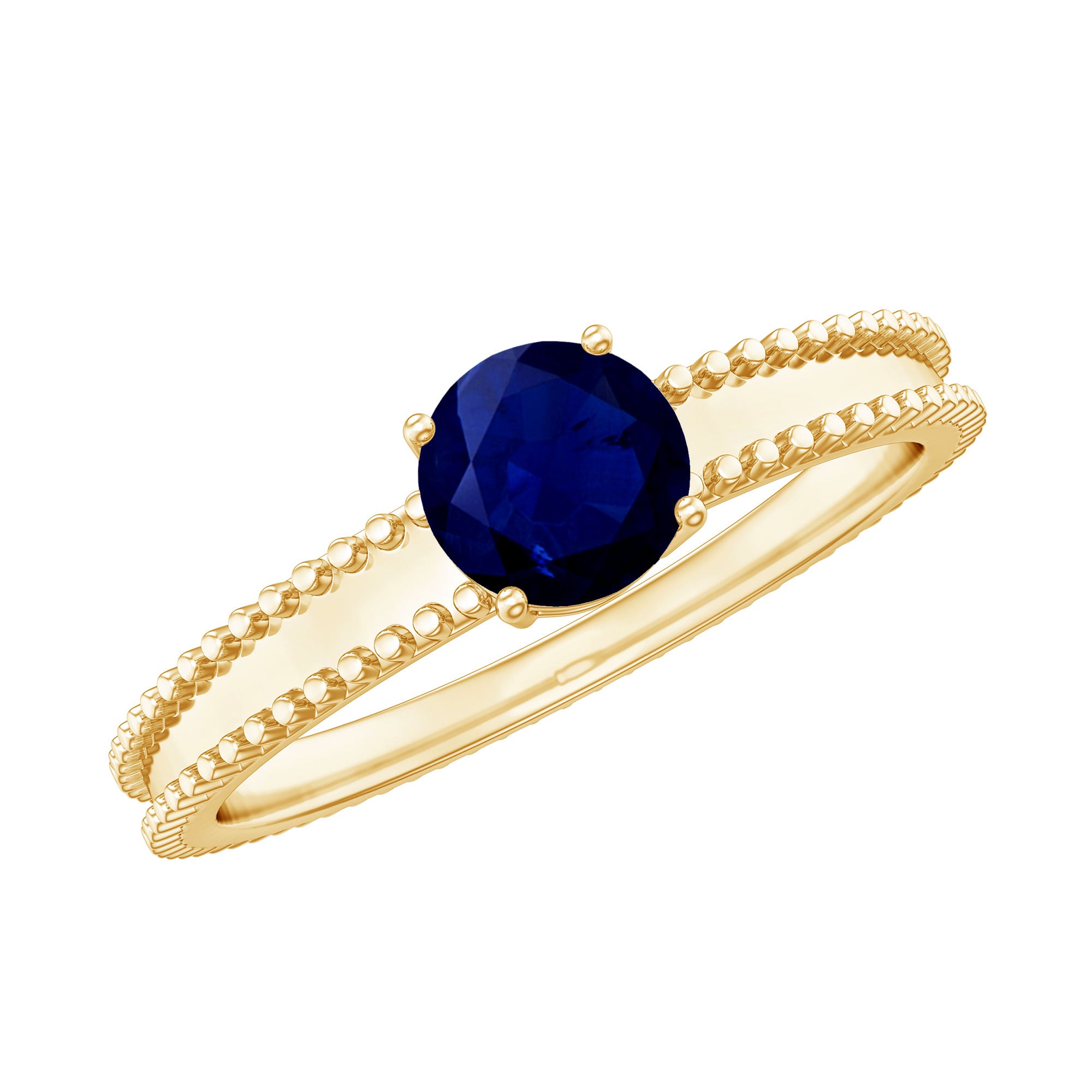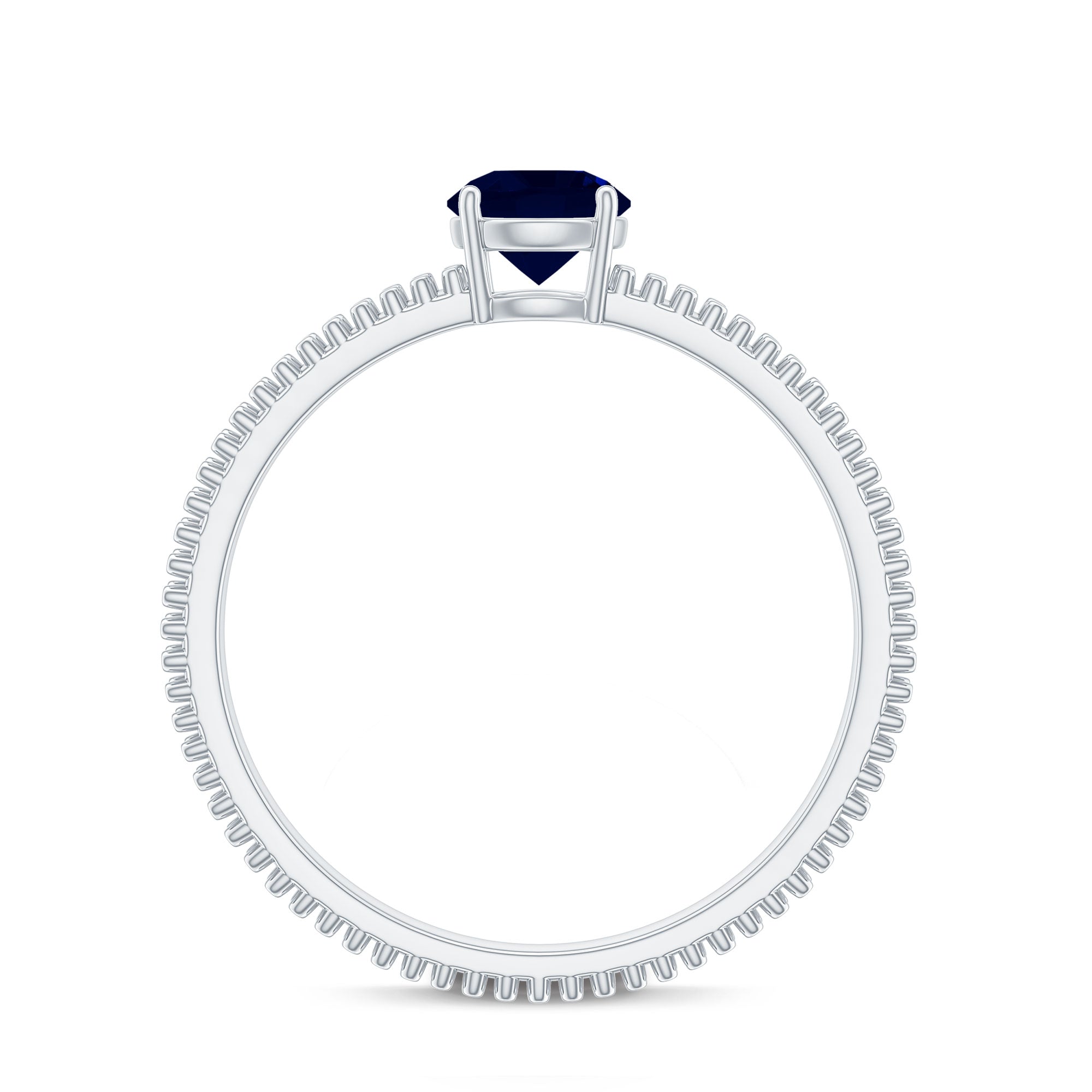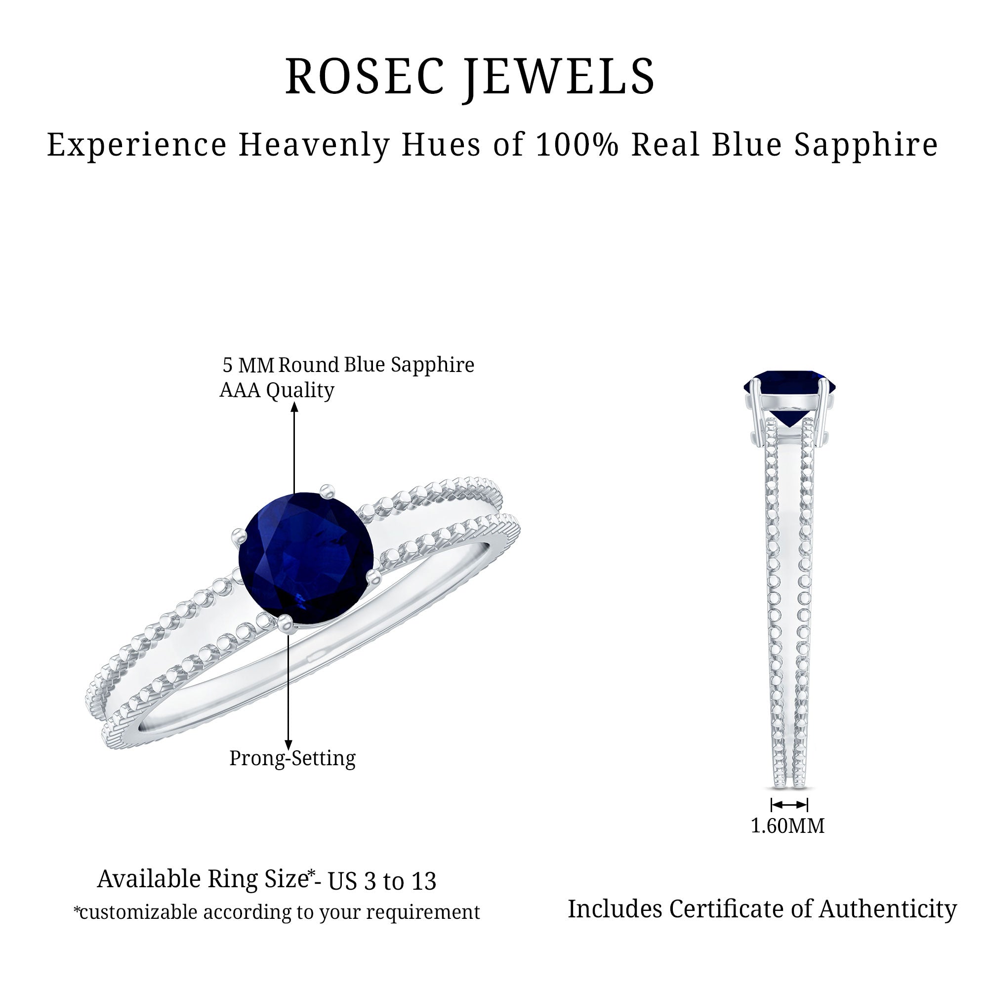 5 MM Solitaire Blue Sapphire Band Ring with Beaded Embellishment