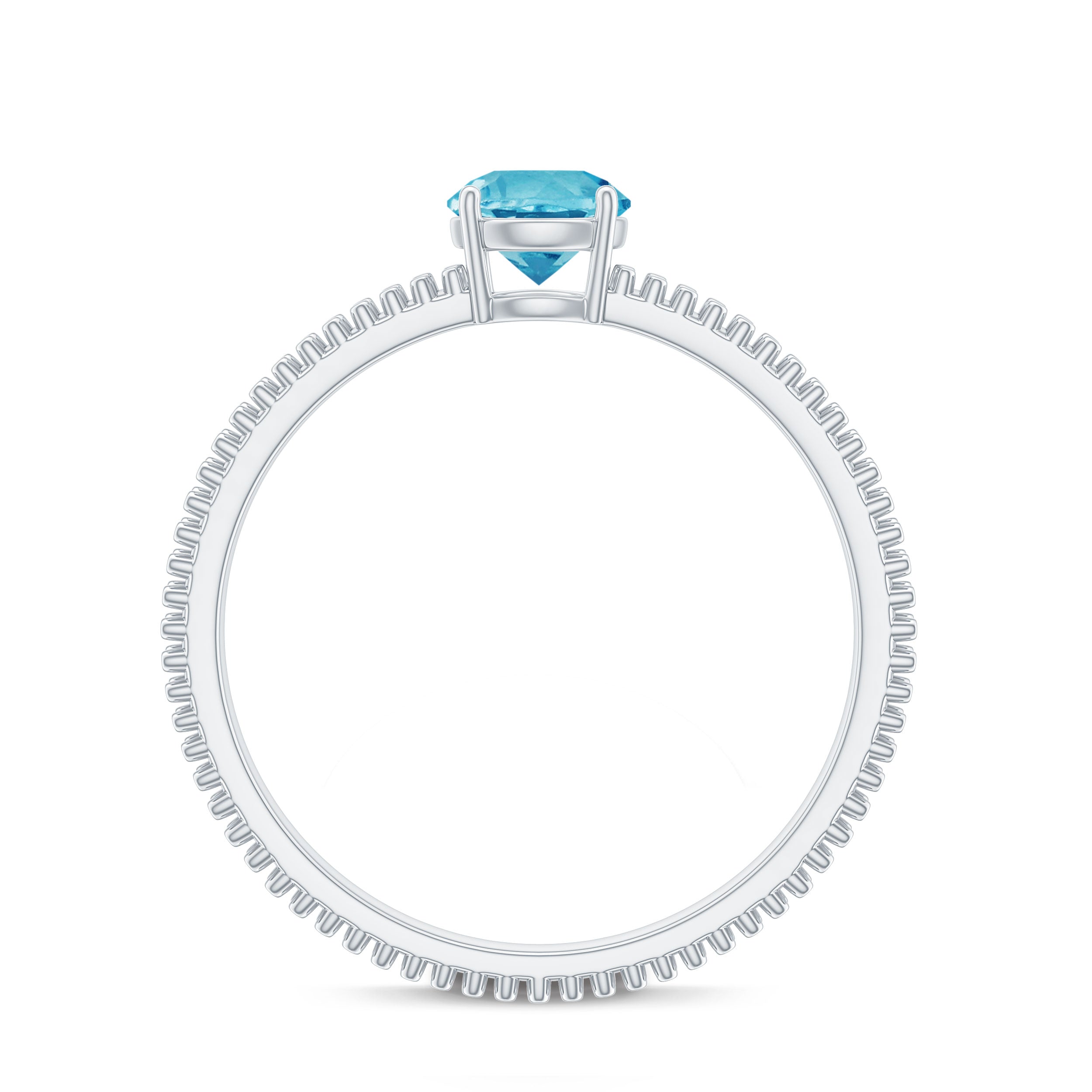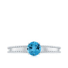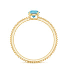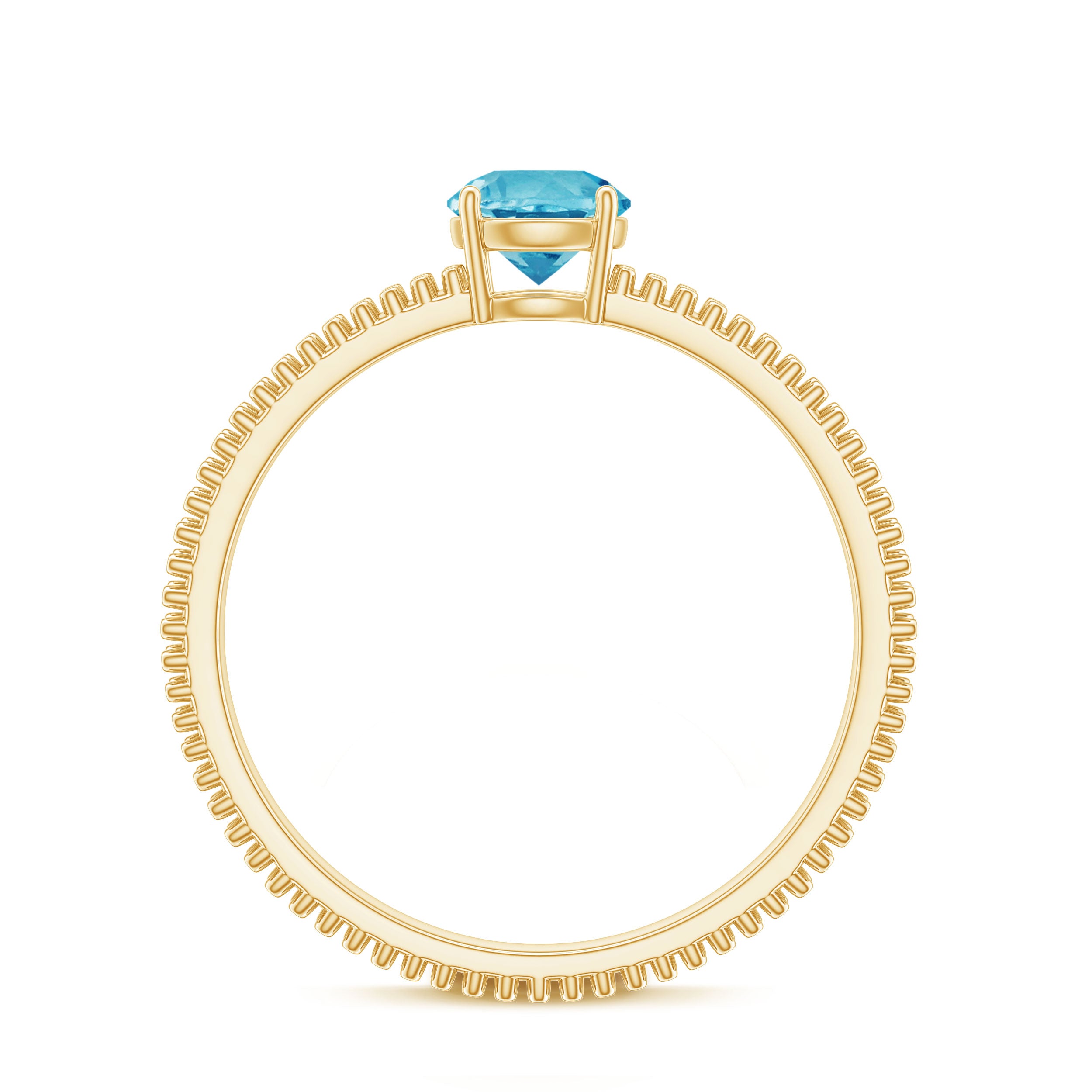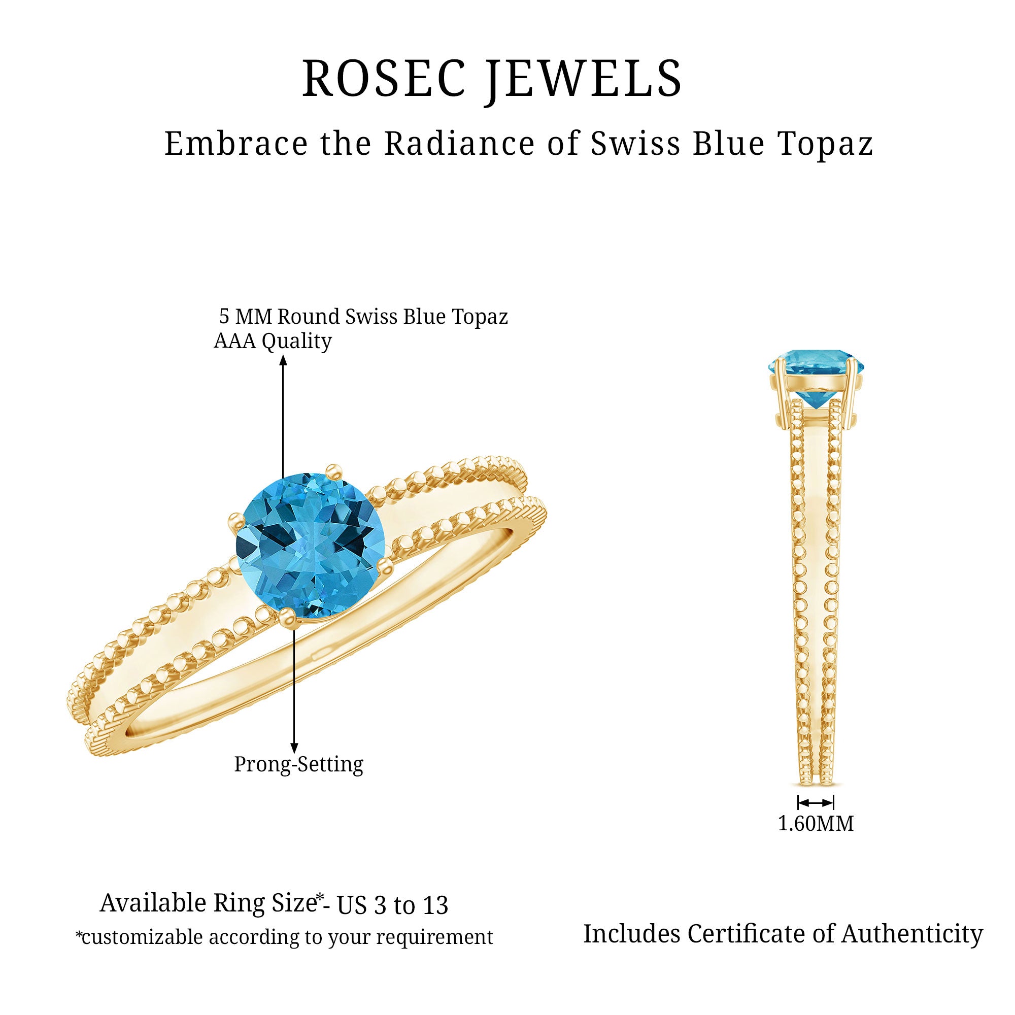 5 MM Solitaire Swiss Blue Topaz Band Ring with Beaded Embellishment