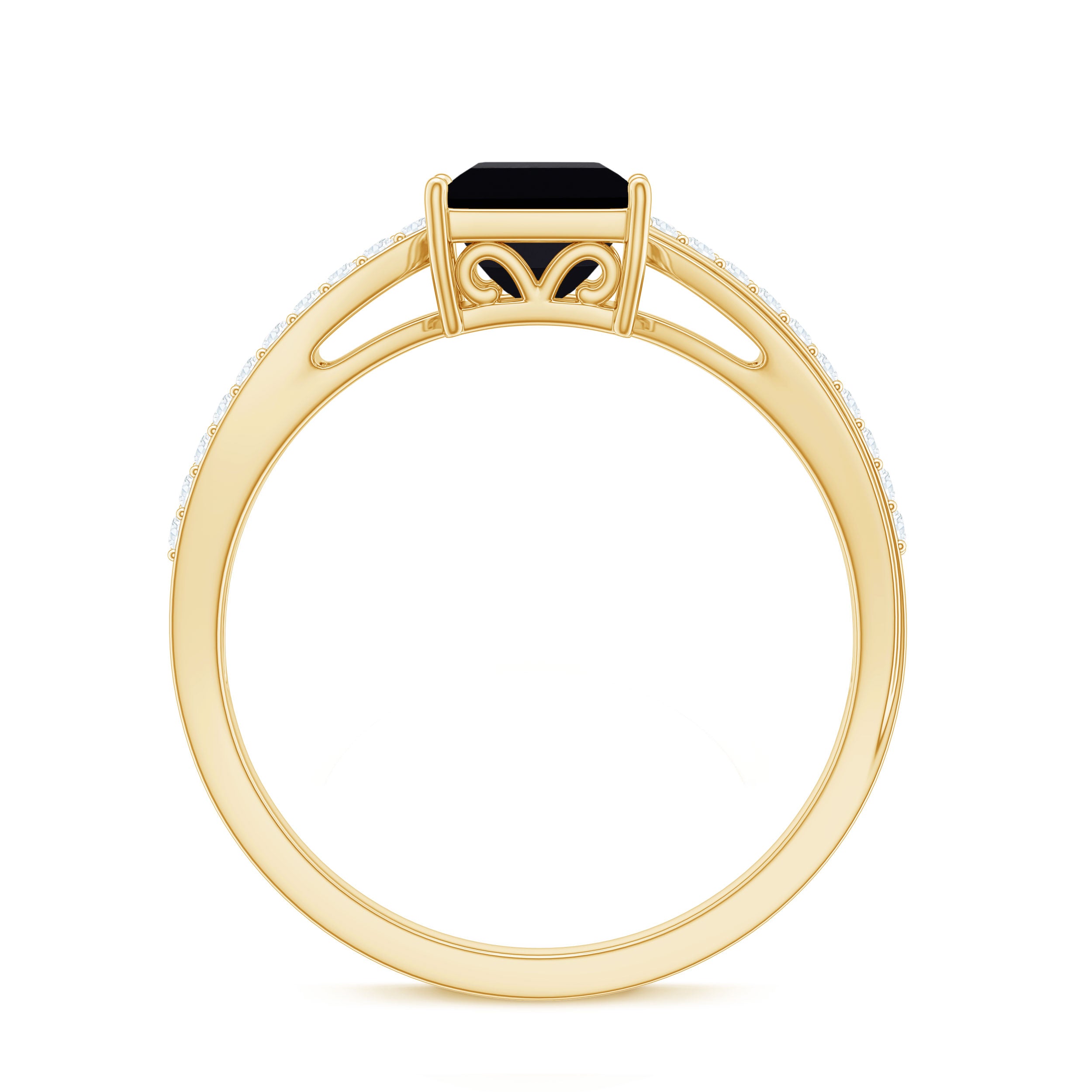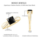 Add some sparkle to your life with this Black Onyx Engagement Ring, featuring 5 mm Princess Cut Black Onyx set at the center as solitaire in a prong setting with petite round diamond accents set on the pinched style shank on both sides. Distinct in its design, this Solitaire Engagement Ring is an essential piece of jewelry suitable for any occasion, consistently exuding brilliance. It showcases a 5 MM Princess Cut Black Onyx positioned at the center as a solitaire in a 4 Prong Setting, complemented by a Pinched Shank adorned with small round diamonds, resulting in a breathtaking accessory that will illuminate your hand. The elegance and simplicity of this Natural Black Onyx Engagement Ring are sure to capture your heart. This Princess Cut Onyx Ring has a total weight of 1 Carats and displays AAA quality Black Onyx and HI Color SI Clarity Diamonds. All our gemstones are certified and undergo rigorous quality inspections. The blend of timeless elegance and contemporary brilliance renders this piece a treasured keepsake for years to come. Available in a variety of metal colors and ring sizes, this 1 Carat Engagement Ring for Weddings is ideal for those who appreciate both understated beauty and radiance. It is presented in exquisite packaging, ready to commemorate your love story and commitment in a manner that is both considerate and unforgettable.