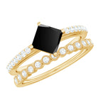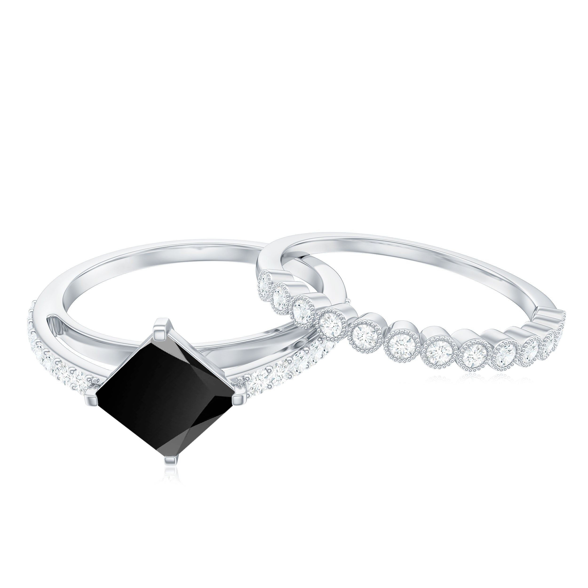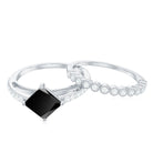 5mm Princess Cut Black Onyx Wedding Rings Set with Diamond Band