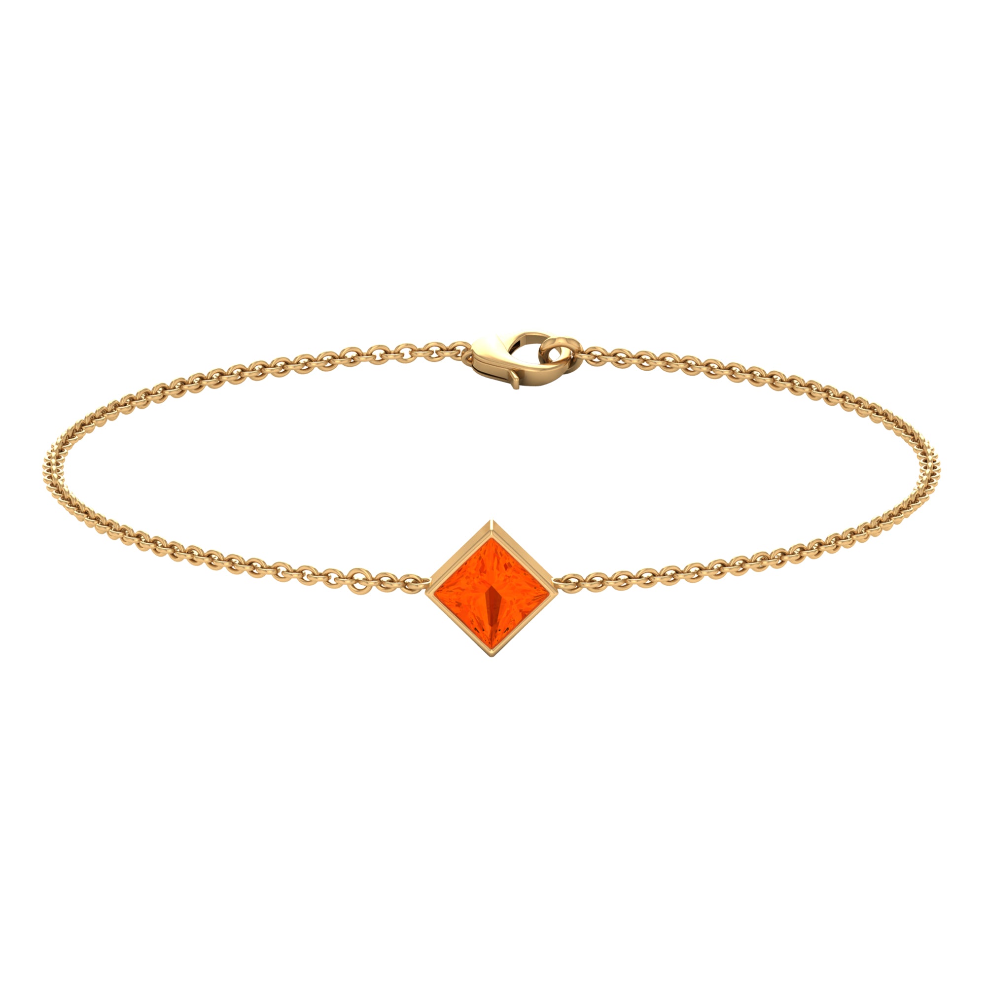 Elegant yet simple in its design, this Fire Opal Bracelet features a sleek and contemporary aesthetic that amplifies its brilliance. With a modern appearance, this Solitaire Bracelet is embellished with Princess cut Fire Opal set in Bezel Setting. This attractive Bezel Set Bracelet is a timeless selection that remains perpetually fashionable. Fusing style with personal taste, this Opal Chain Bracelet produces a stunning effect. As a classic piece that embodies modern sophistication, it offers the ultimate wrist embellishment. Radiating endless sparkle, it also serves as a delightful new addition to your jewelry collection. Its timeless and subtle elegance is crafted to endure, with a contemporary charm that captures and reflects light from all angles. The modern sophistication of the Promise Bracelet presents both a contemporary and classic allure, making it appropriate for a variety of occasions. Embrace the charm of this timeless design, allowing it to grace your wrist with elegance and poise.