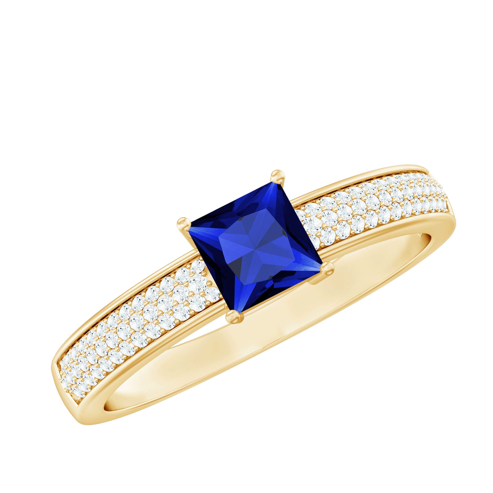 5mm Princess Cut Lab Created Blue Sapphire Promise Ring with Diamond