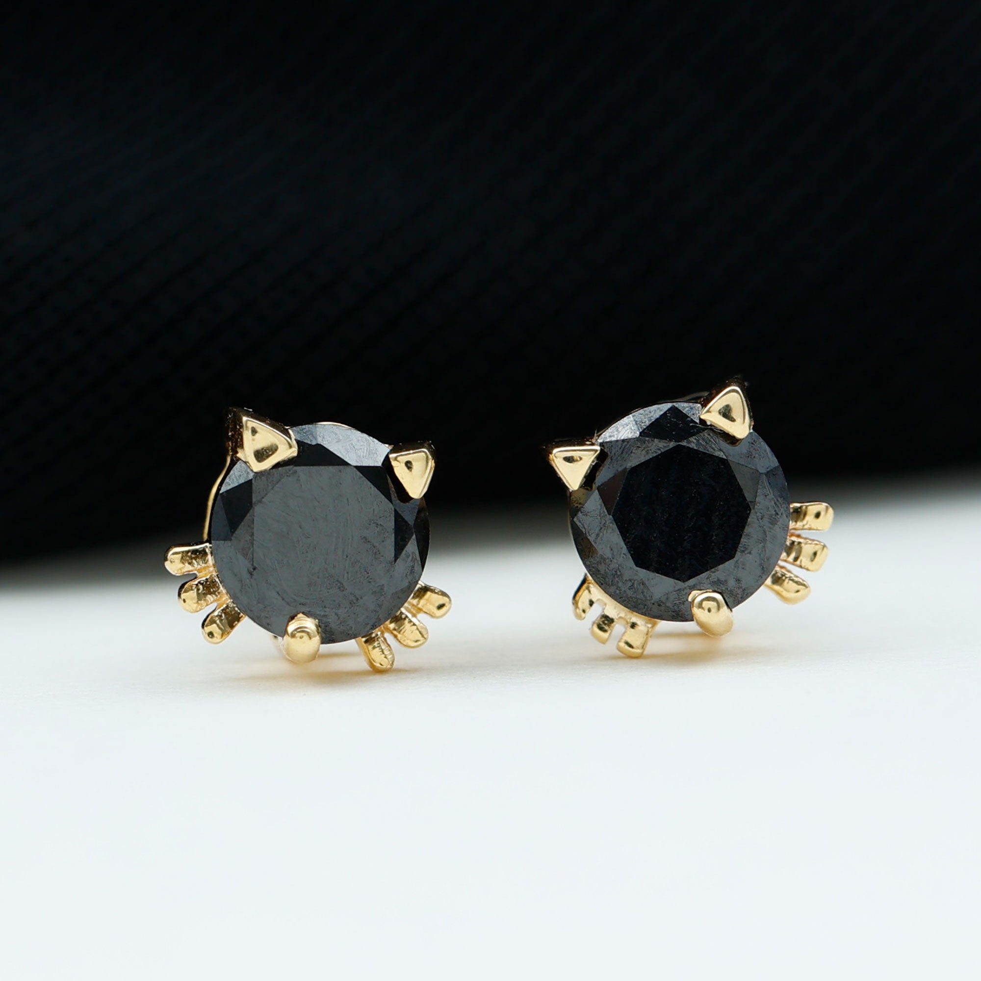 Bring a fun and stylish touch to your look with these adorable Lab Grown Black Diamond Earrings. Each earring features a 5 MM round cut lab created black diamond placed at the center in secure prong setting. The earrings are shaped like a cute cat face, with metal ears and whiskers adding a charming and cheerful detail. This cat inspired design makes the studs perfect for animal lovers and anyone who enjoys unique accessories. Despite their fun look, the Black Diamond Stud Earrings are easy to wear and suitable for everyday outfits. Screw back closures provide a secure and comfortable fit, allowing you to wear them with confidence throughout the day. Made with AAAA quality lab created black diamonds, these Cat Stud Earrings are an environment-friendly choice and a thoughtful option for conscious shoppers. These Kitty Stud Earrings come neatly packed in a jewelry box, making them ready for gifting or safe storage.