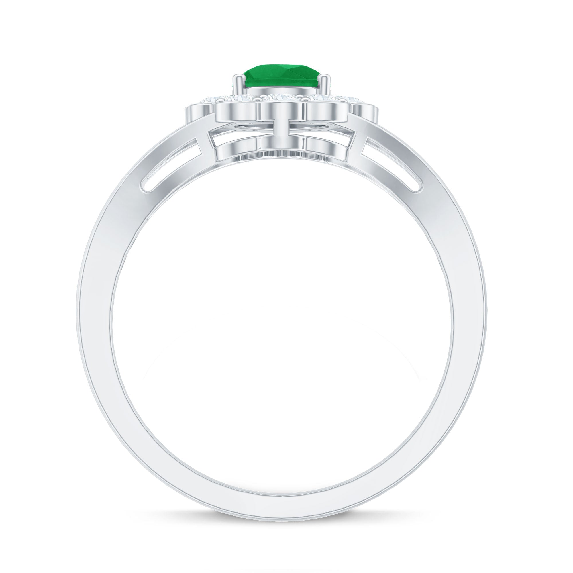 5X7 mm Pear Cut Emerald Engagement Ring with Diamond Halo