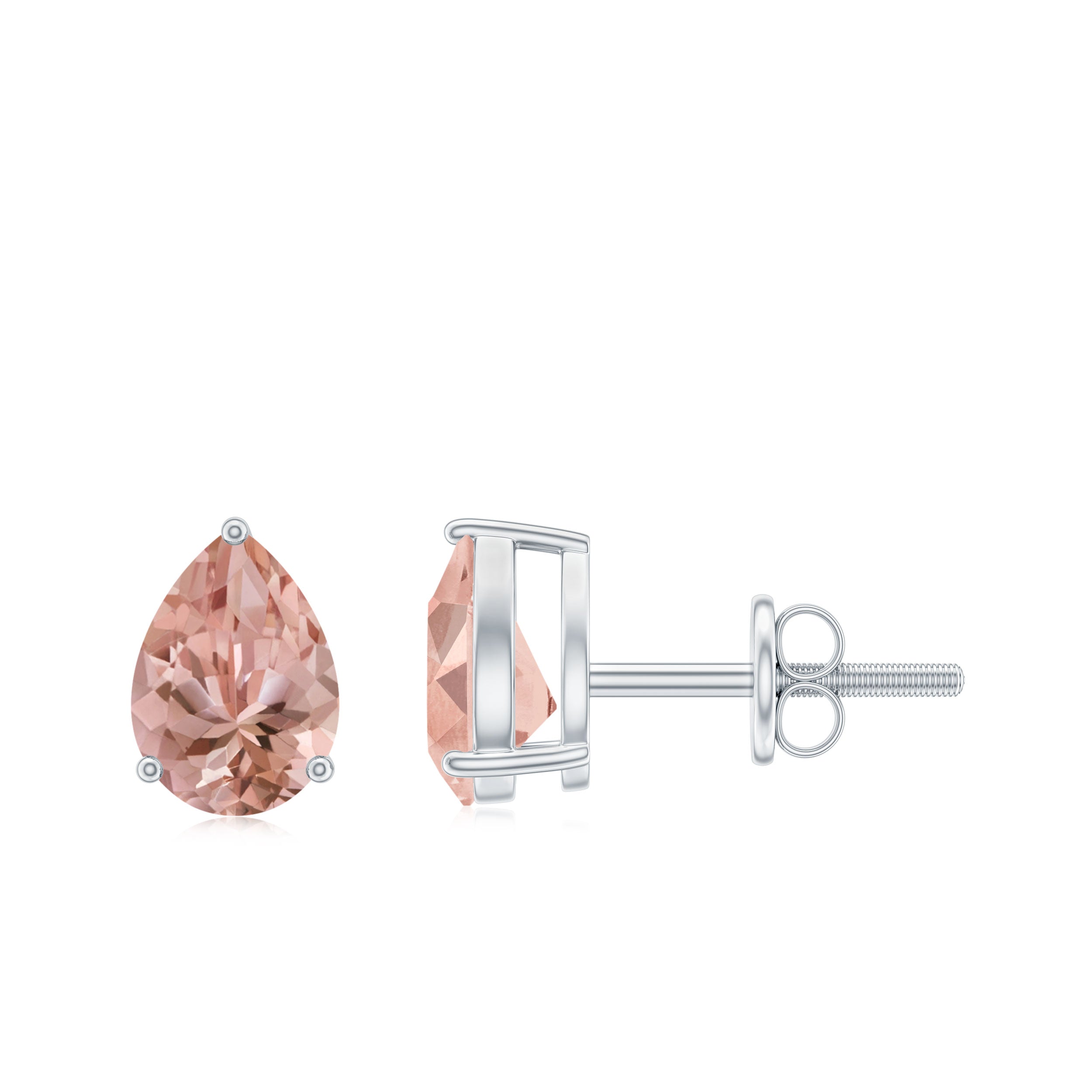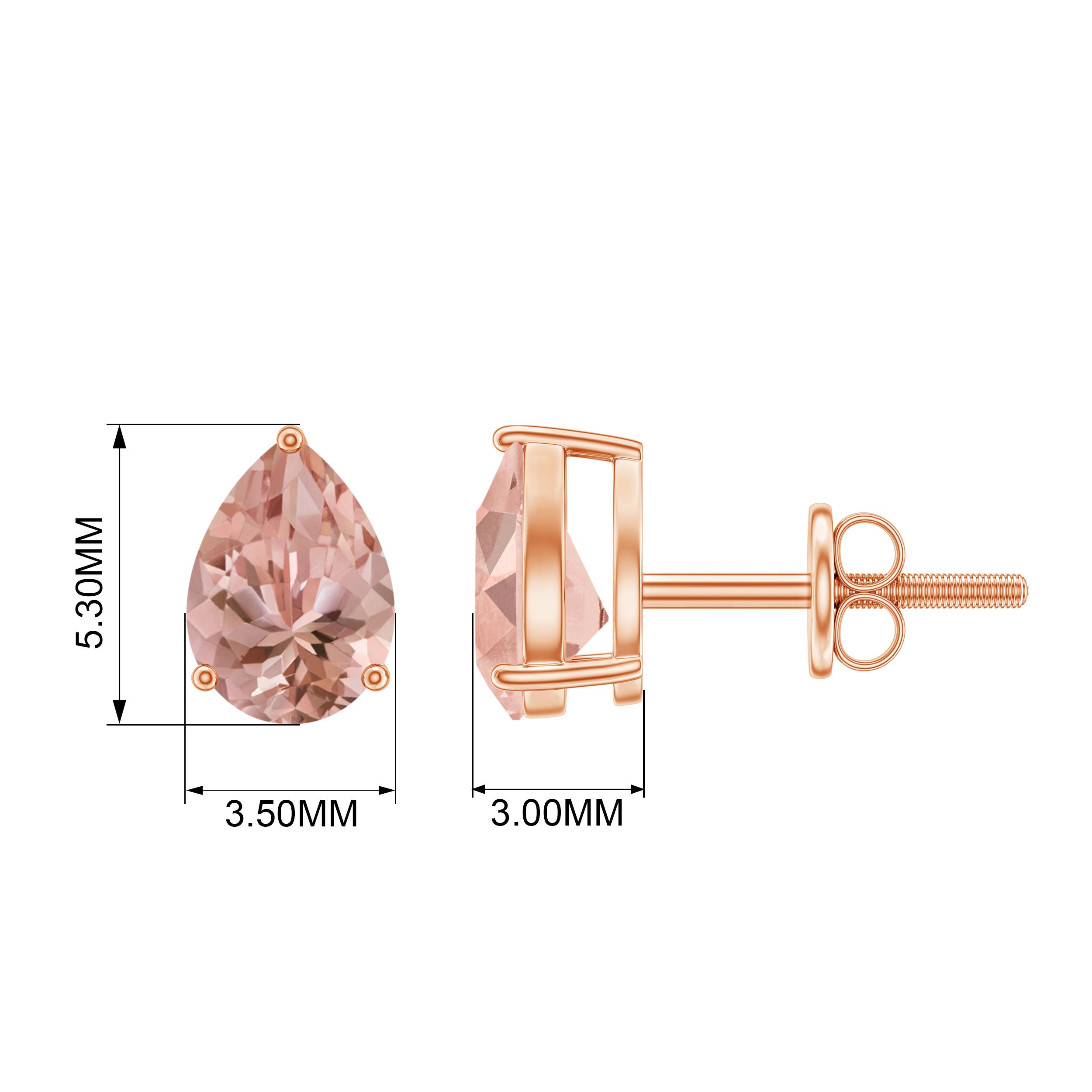 5X7 MM Pear Cut Morganite Solitaire Stud Earrings in 3 Prong Setting