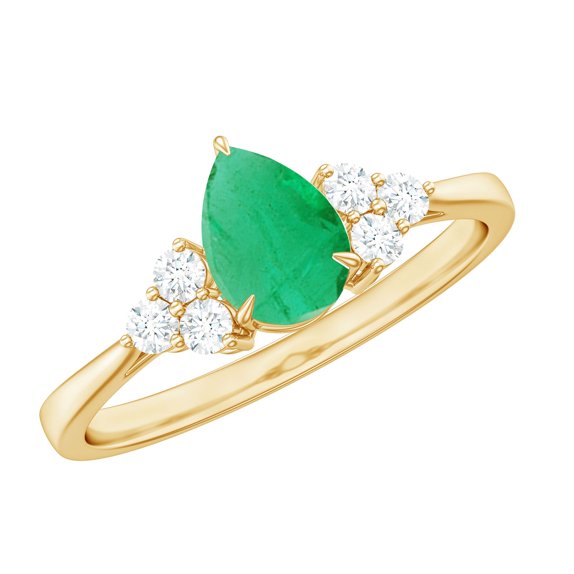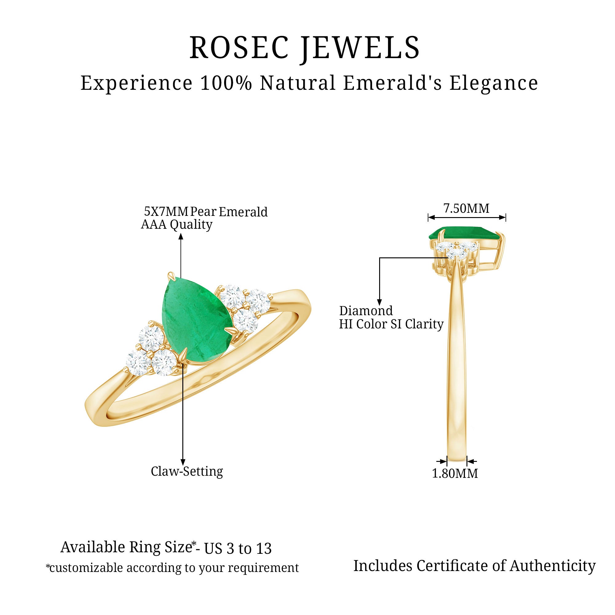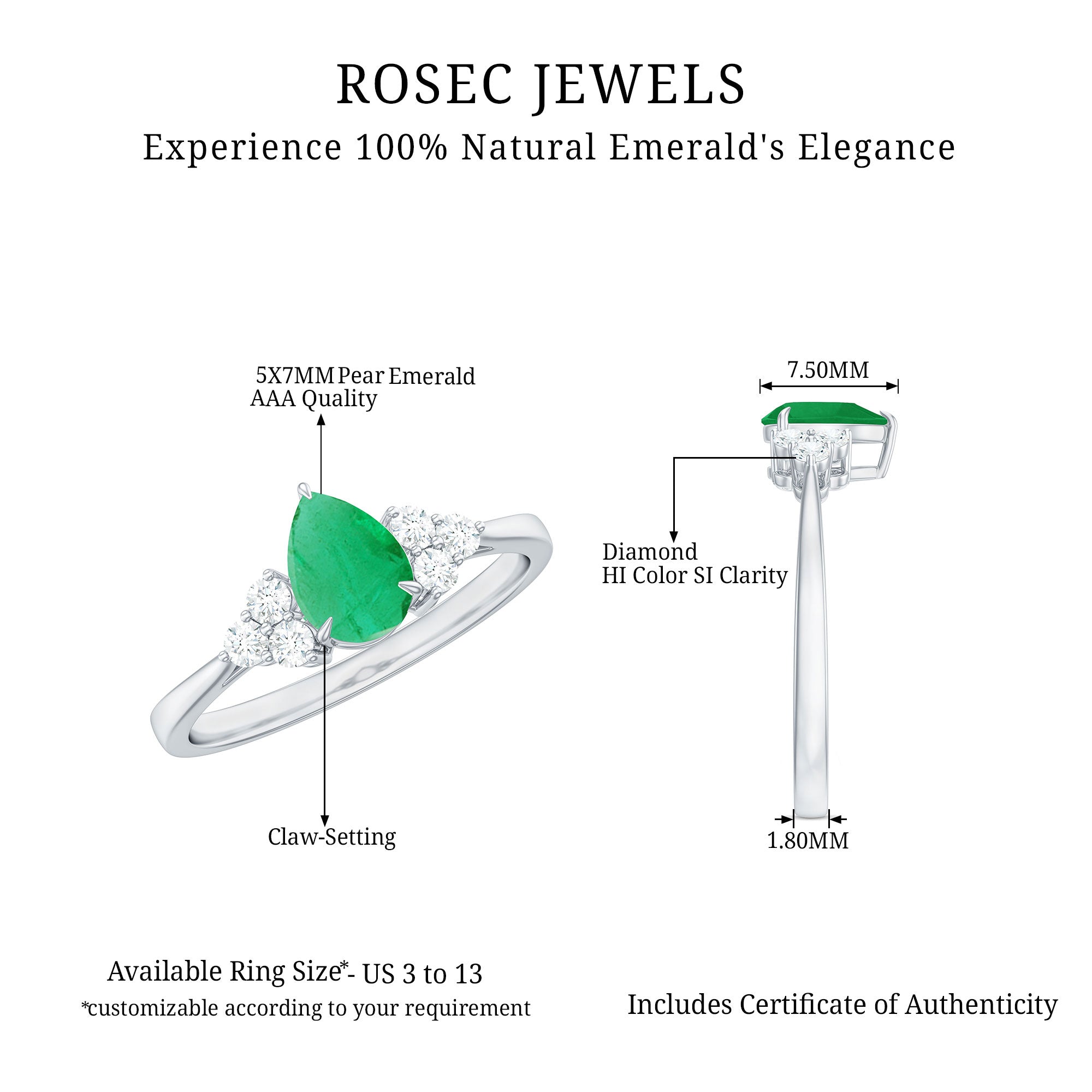 5X7mm AAA Quality Pear Shape Emerald Solitaire Engagement Ring with Diamond Trio