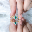 Celebrate love with a dazzling Emerald Engagement Ring – the perfect symbol of forever. Make your proposal unforgettable with this mesmerizing pear shaped engagement ring, a stunning representation of timeless elegance and emotional depth. The ring features a captivating 5X7 mm AAA quality emerald at its heart, radiating rich green brilliance, flanked by shimmering HI-SI quality round diamonds on either side, totaling a precise 0.948 carat weight. Designed in a secure claw setting, this minimal engagement ring reflects sophistication and simplicity in perfect harmony, making it an ideal token for life’s most meaningful promise. Crafted for modern romantics, this emerald and diamond engagement ring embodies purity, passion, and individuality, suited for those seeking a classic yet fresh expression of their journey. The teardrop-shaped emerald lends the piece a graceful and organic silhouette, beautifully blending into the designs subtle sparkle, making it an exquisite green emerald ring for any bride-to-be. Whether you see it as a pear cut engagement ring or a womens ring emerald, its delicate style and luxurious feel mark it as a piece to treasure for a lifetime. Perfect for engagements, this emerald diamond ring isnt just a piece of jewelry — its a heartfelt story, a memory frozen in time, and a symbol of commitment that transcends trends. An iconic trio engagement ring like this makes an unforgettable impression and is sure to be cherished as an heirloom for generations.