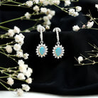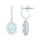 5X7 MM Oval Rainbow Opal Drop Earrings with Moissanite Halo