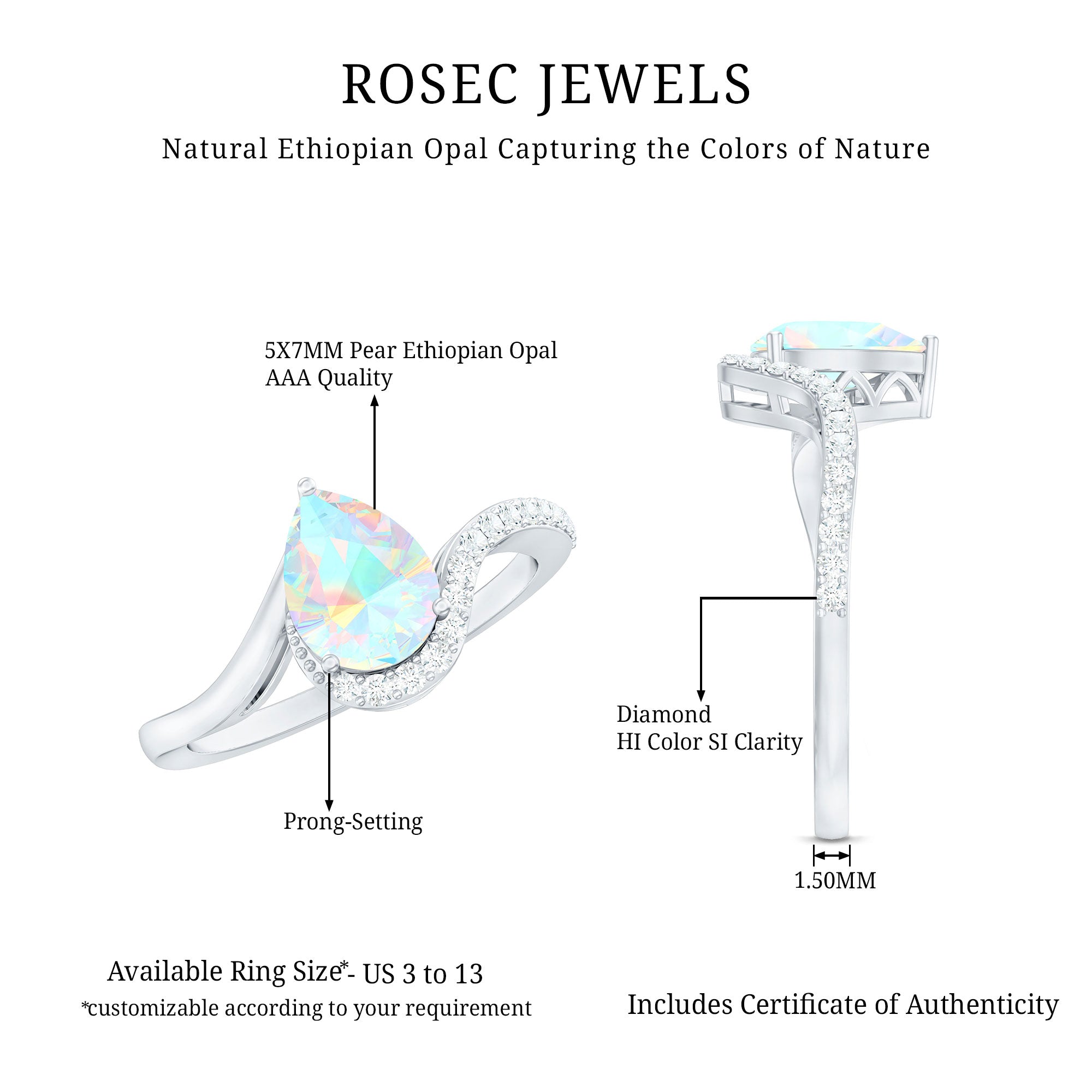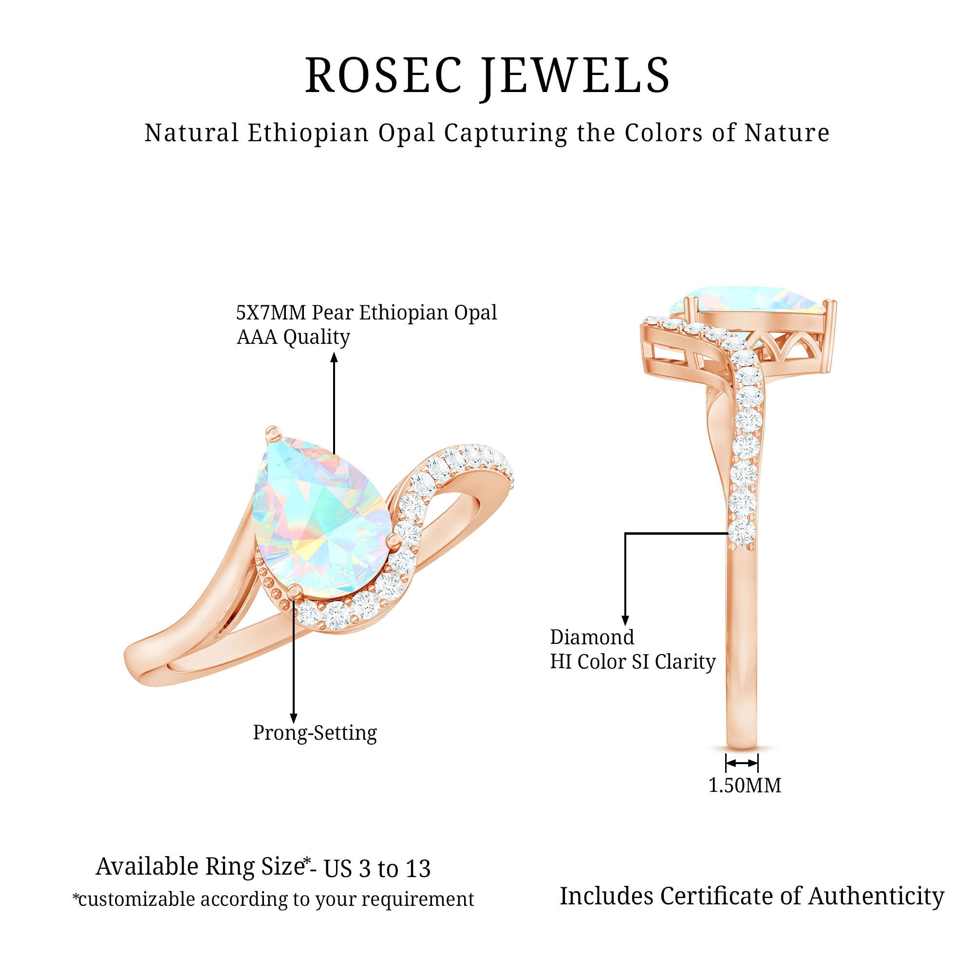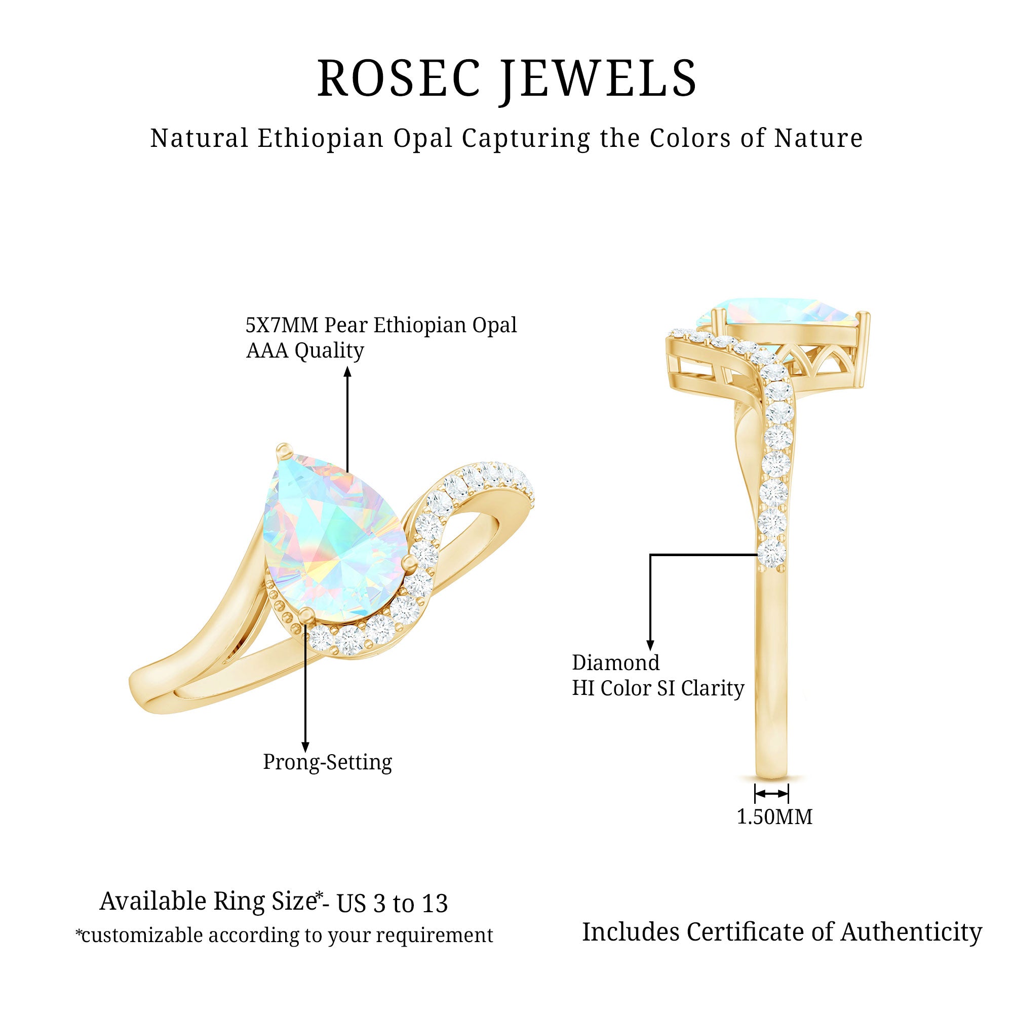 5X7mm Pear Cut Ethiopian Opal Engagement Ring with Diamond