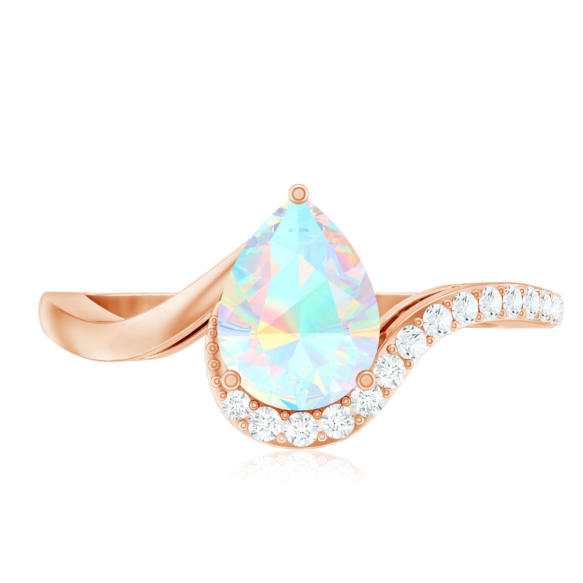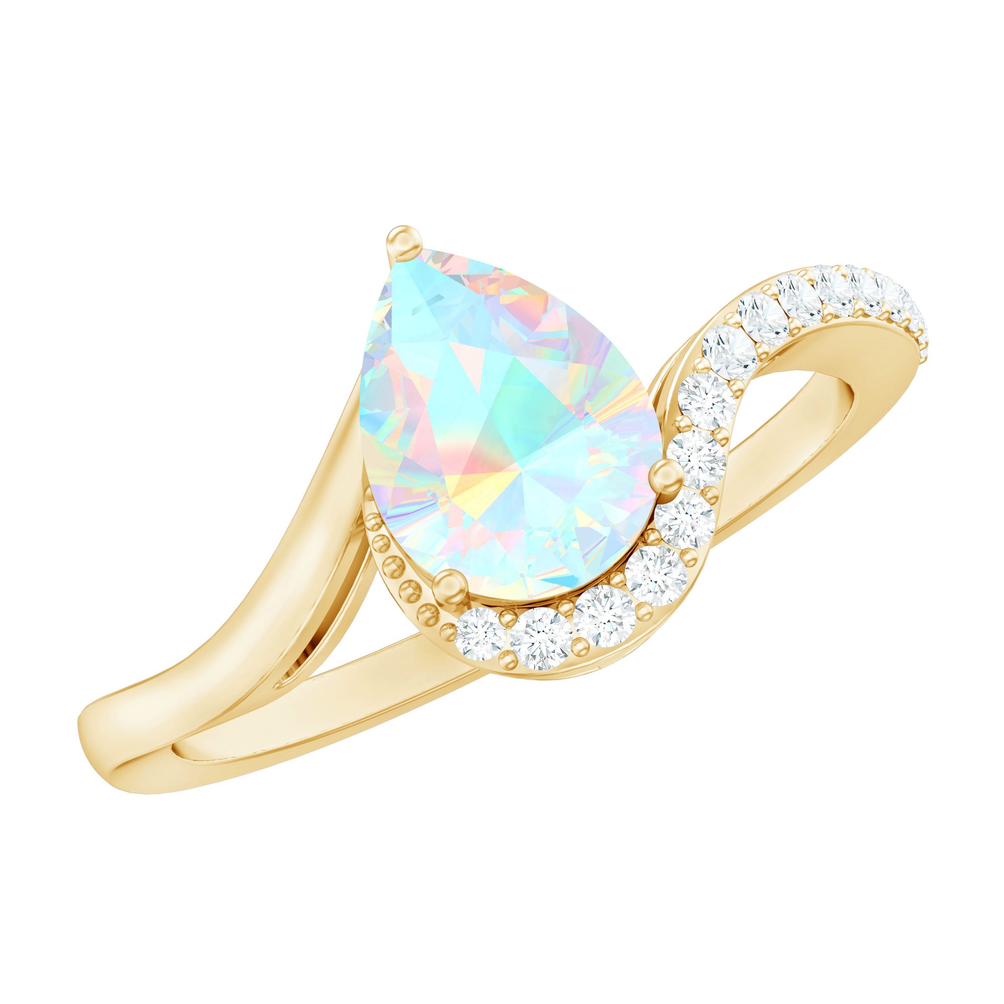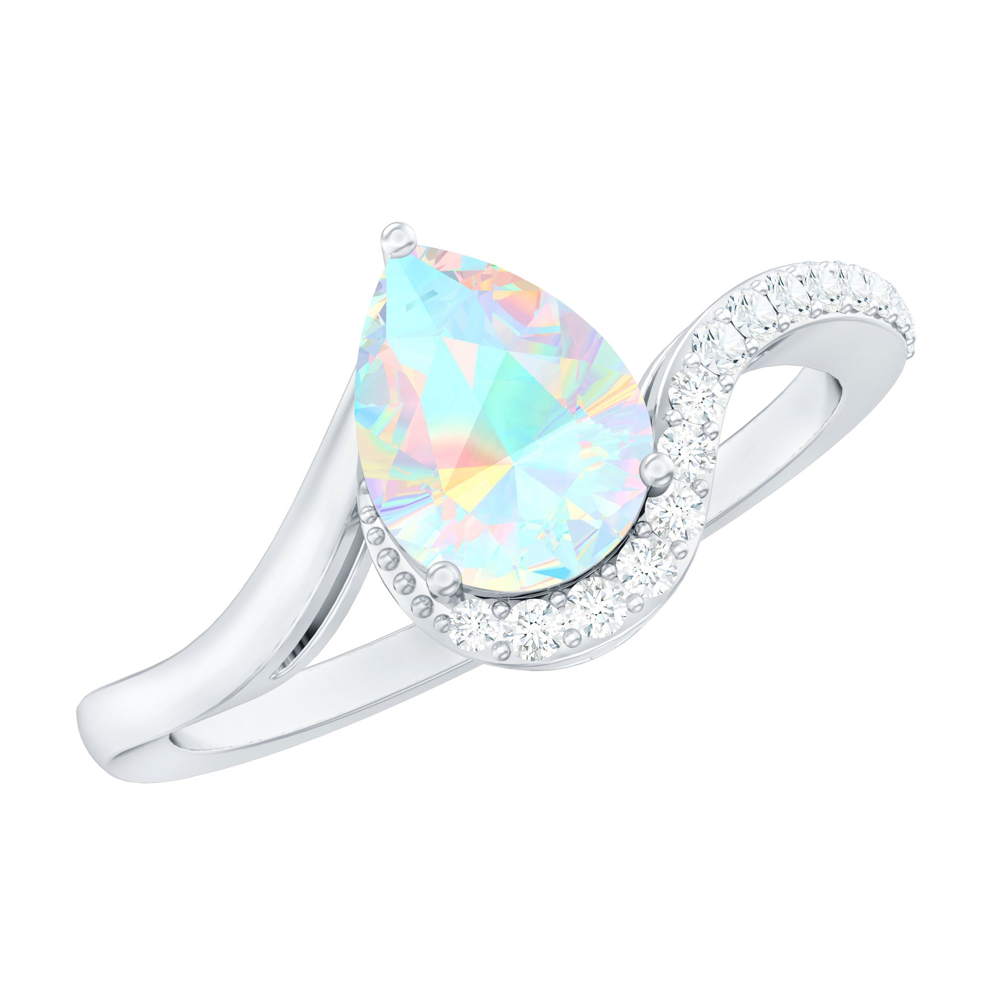 5X7mm Pear Cut Ethiopian Opal Engagement Ring with Diamond