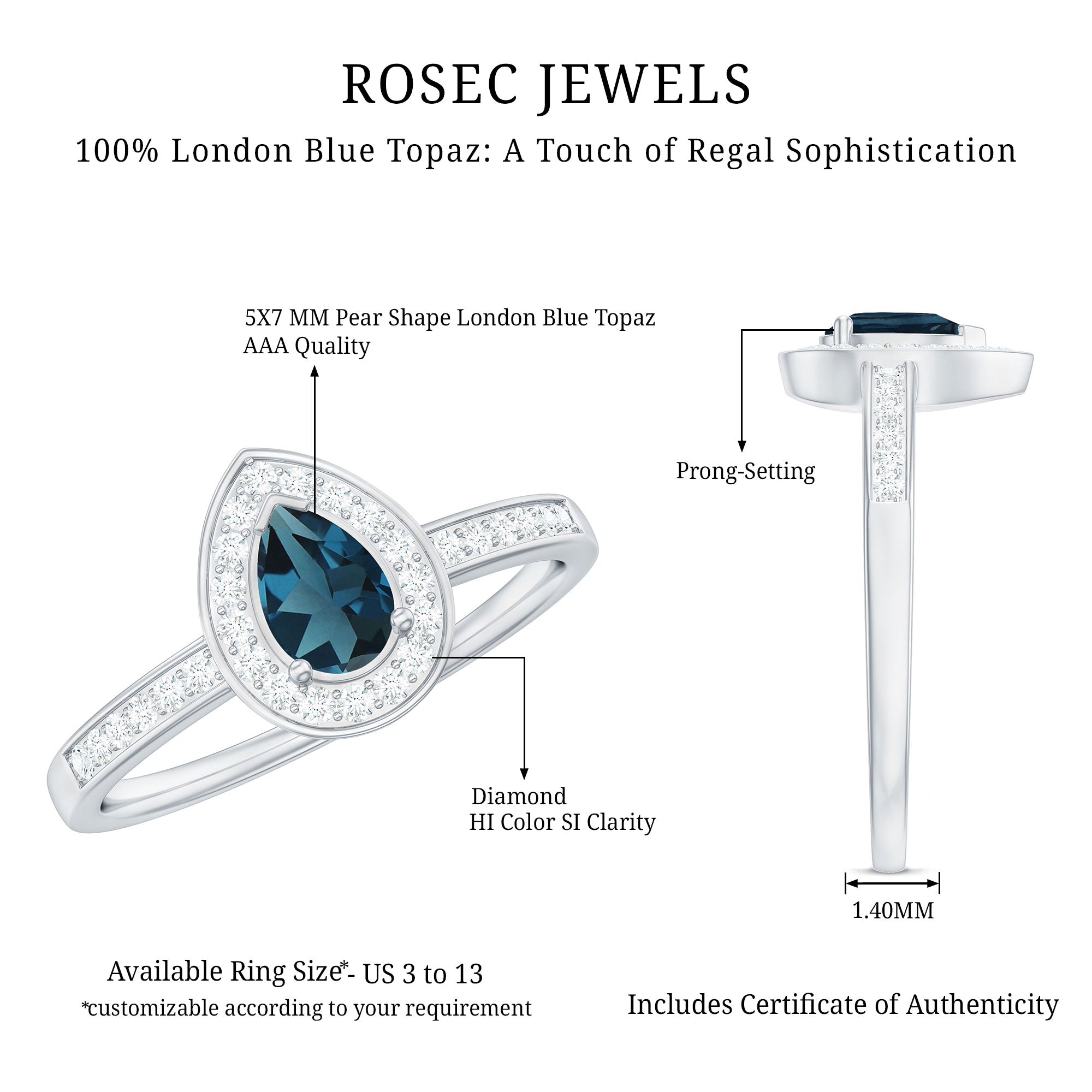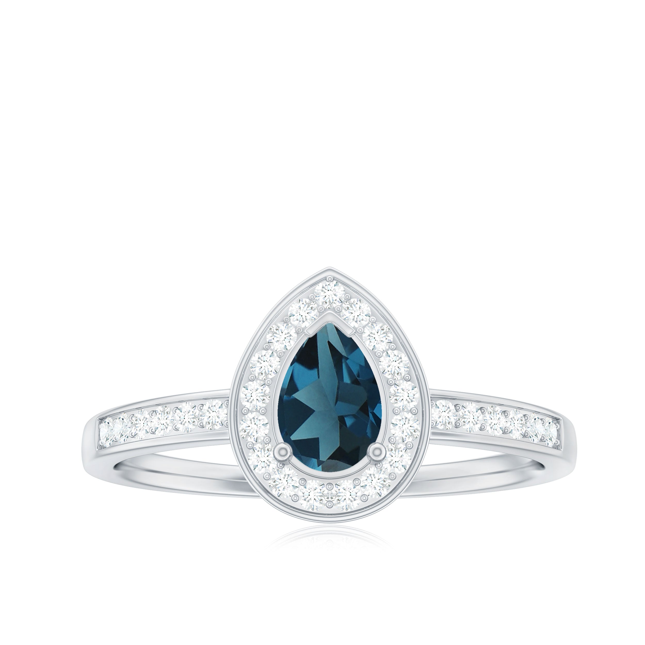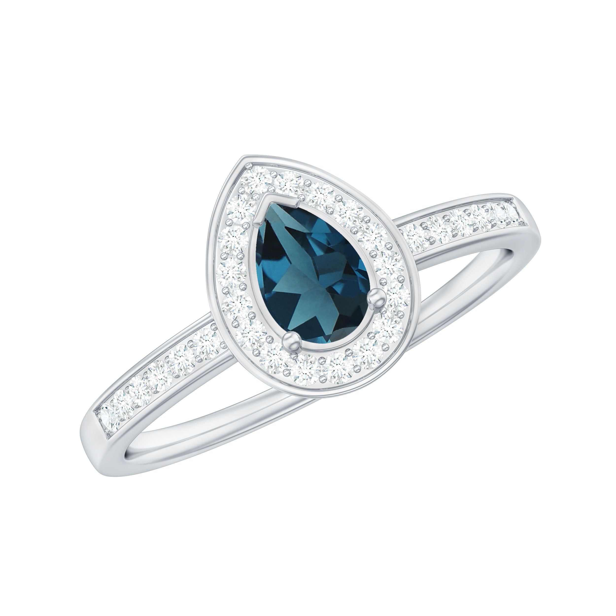 5X7MM Pear Shaped London Blue Topaz Engagement Ring with Real Diamond Halo