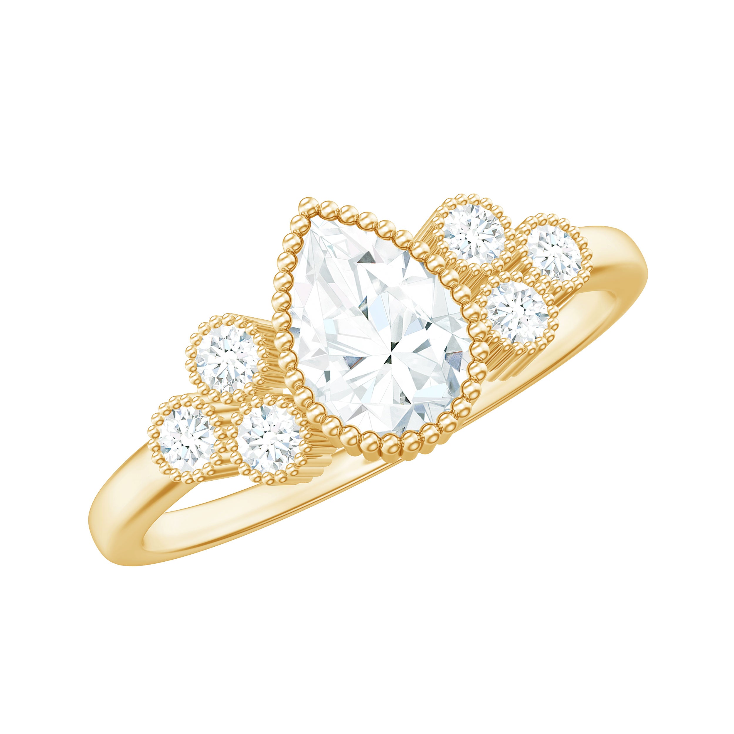 5X7mm Pear Shaped Moissanite Classic Engagement Ring with Beaded Details