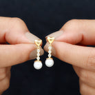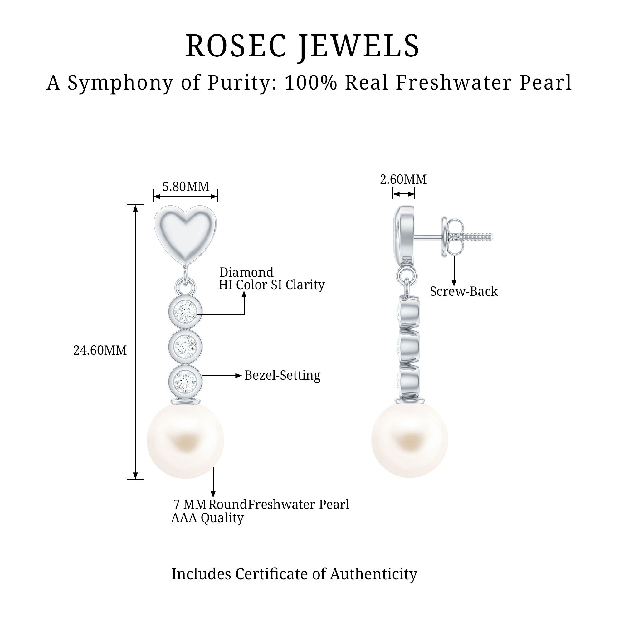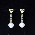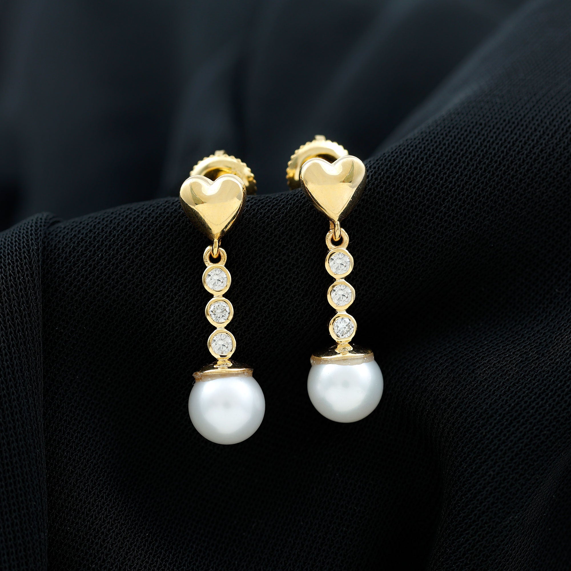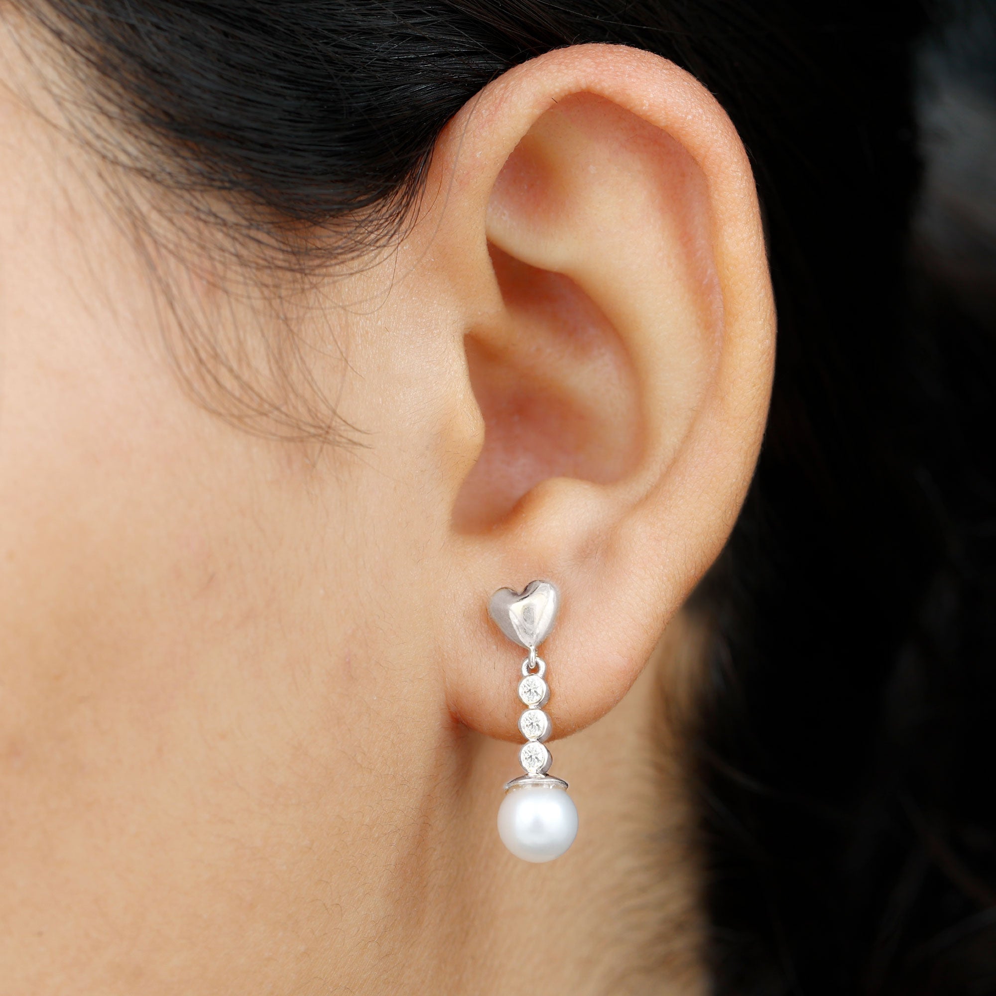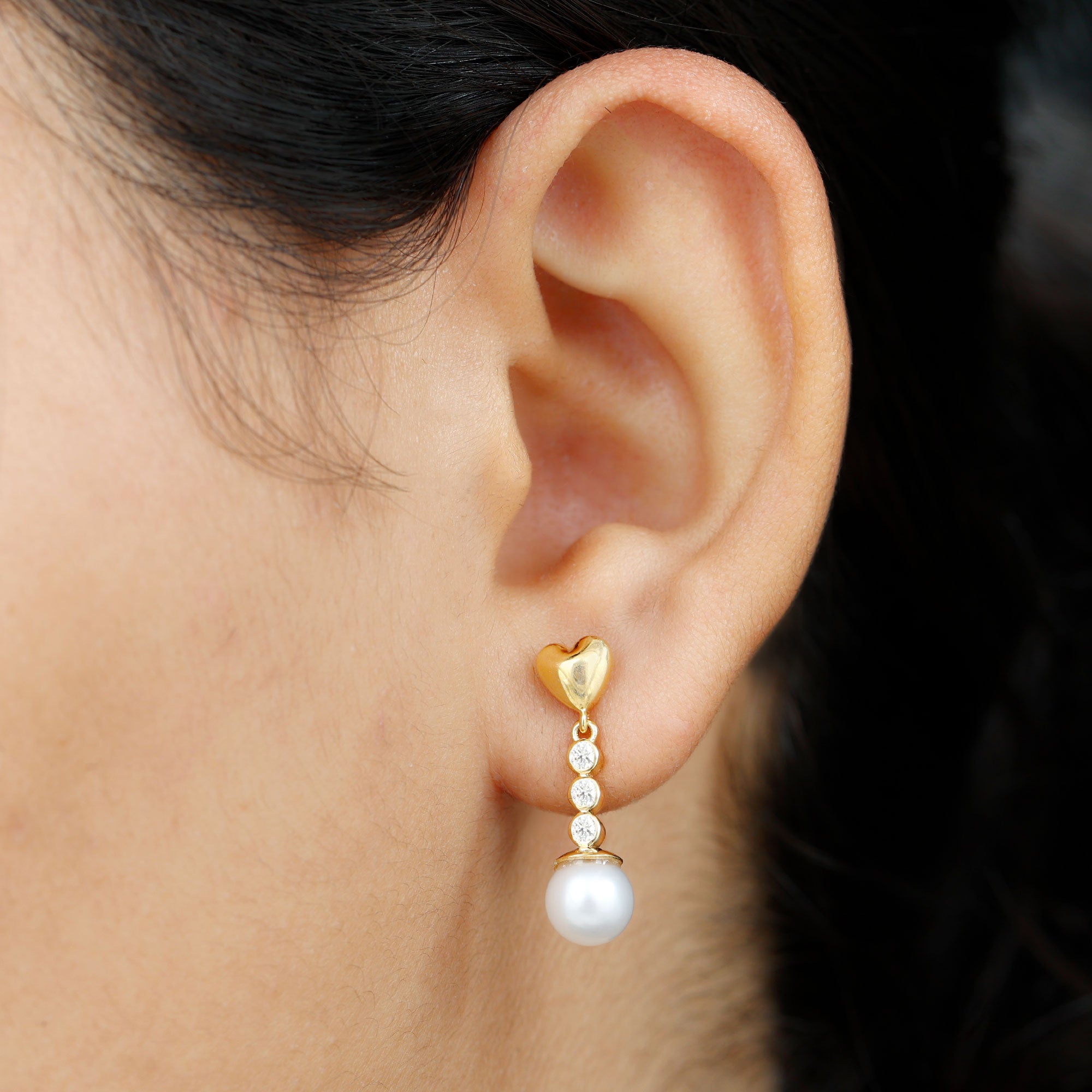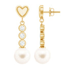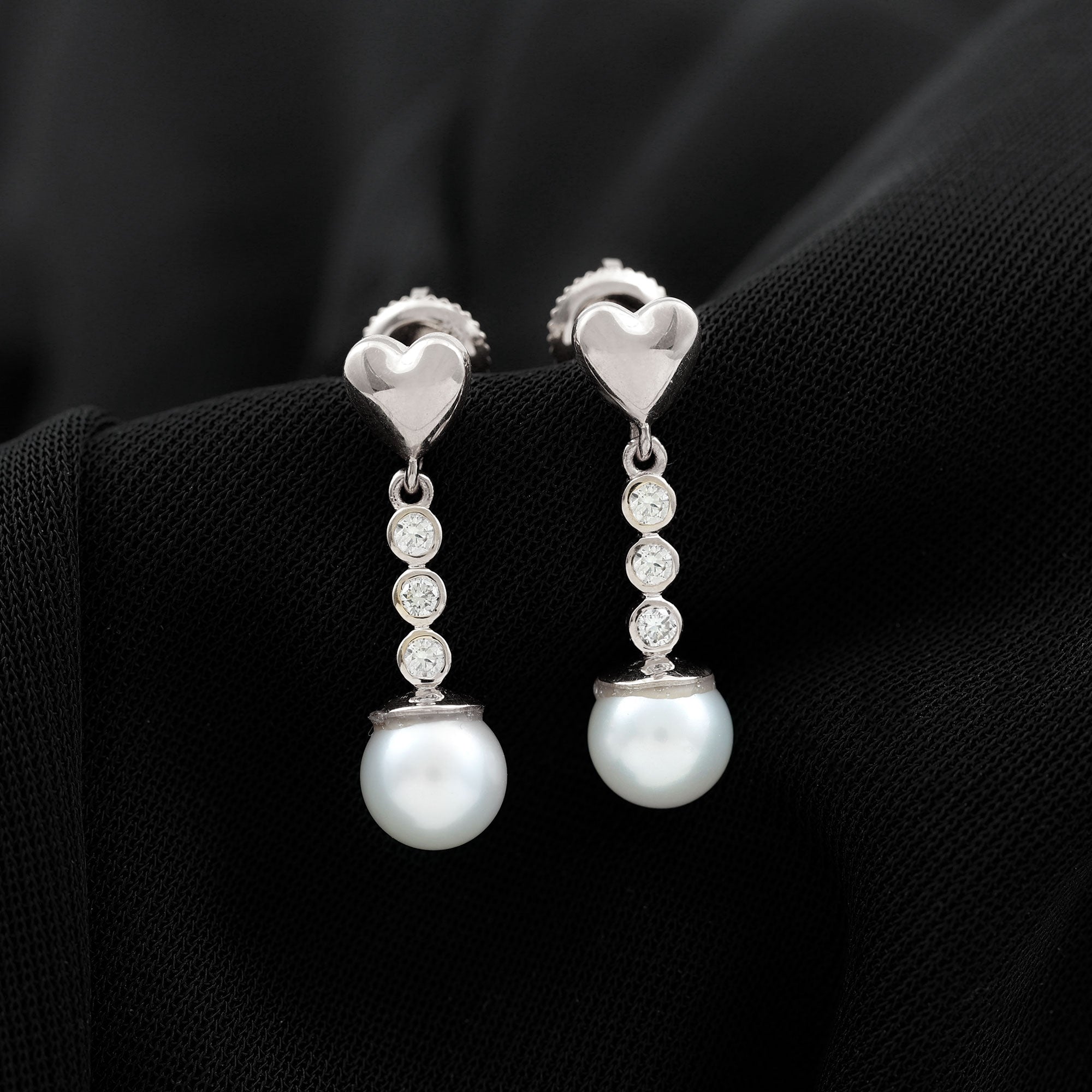 6.25 CT Heart Dangle Earrings with Freshwater Pearl and Diamond