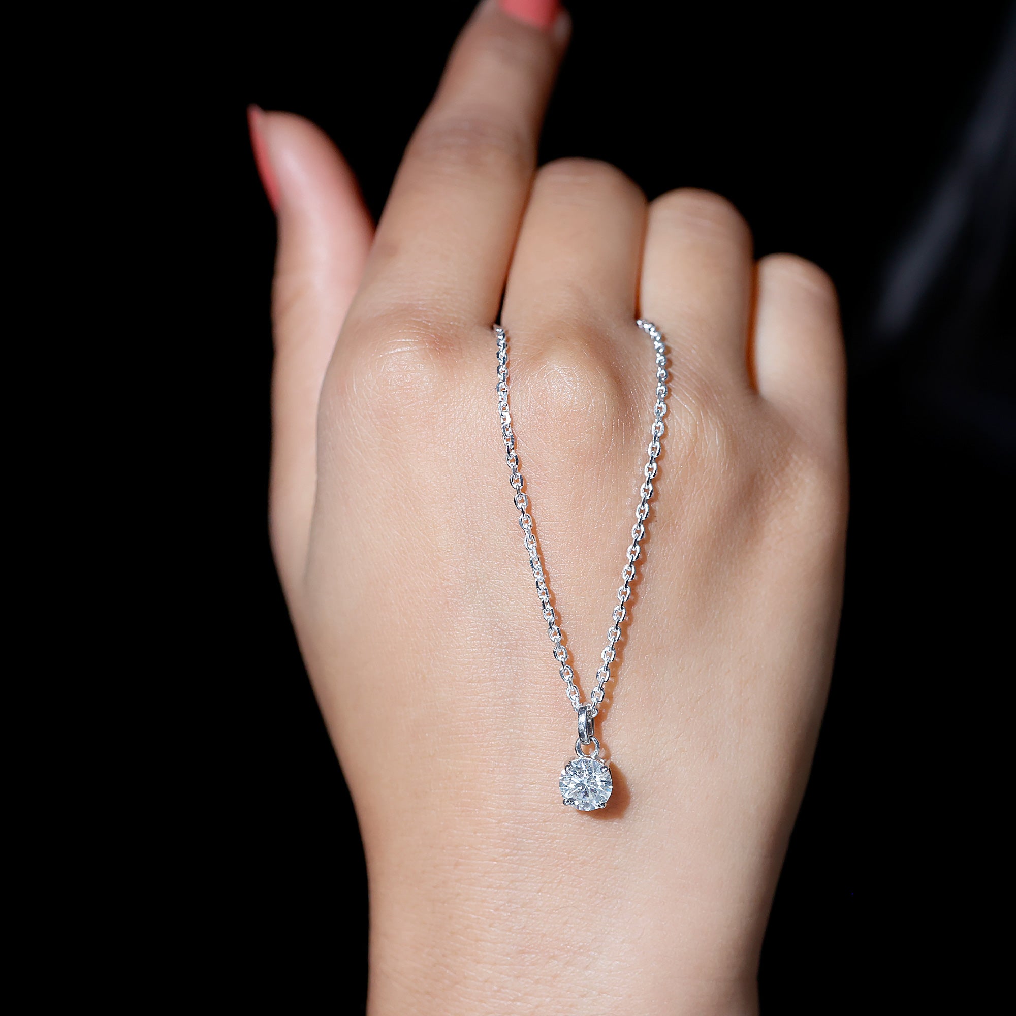 1 Carat Round Moissanite Solitaire Pendant Necklace in Prong Setting
