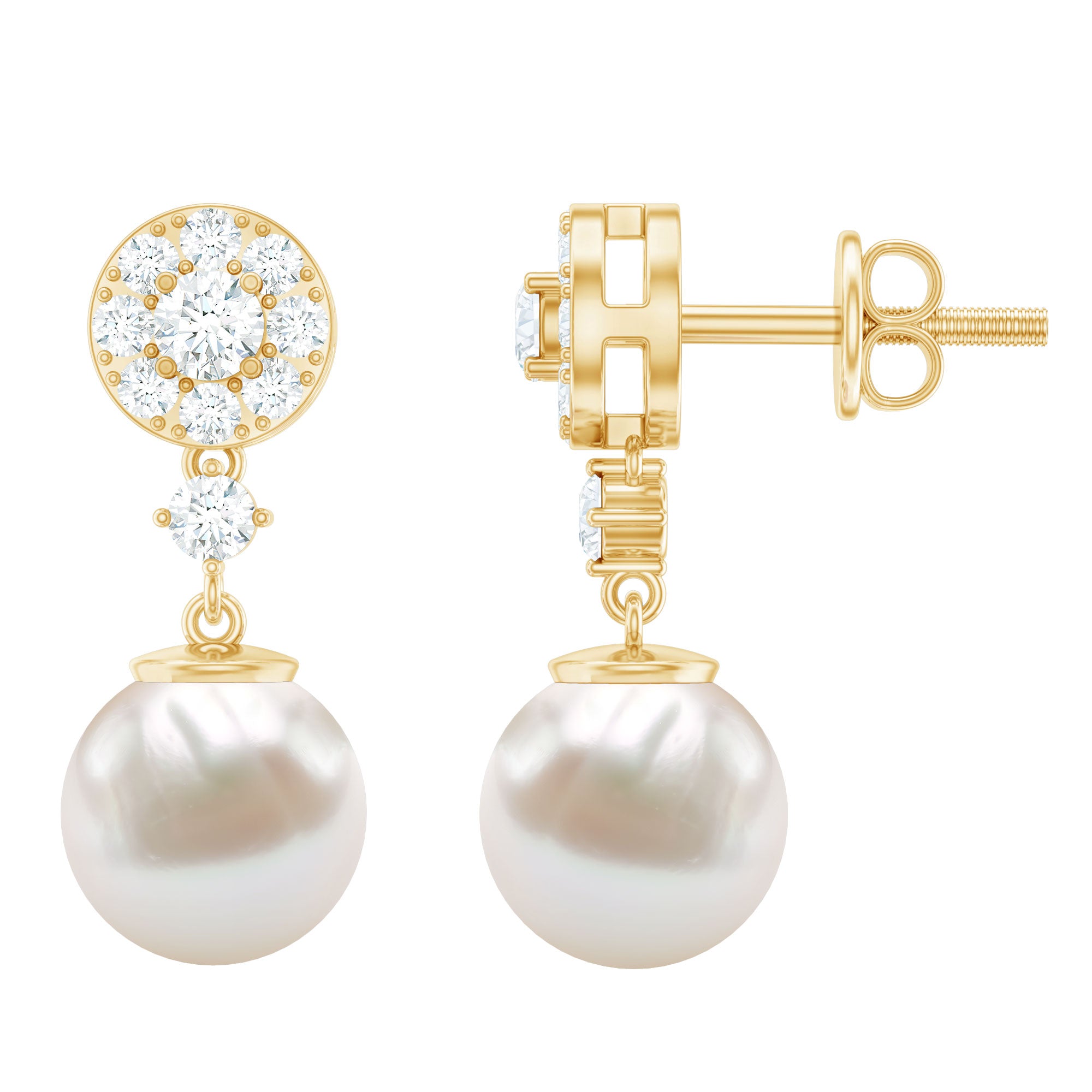 These lovely Drop Earrings are adorned with Freshwater Pearl and Diamond Accents to make for a lovely choice for the special evenings.