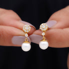 6.50 CT Freshwater Pearl Drop Earrings with Diamond Accent