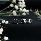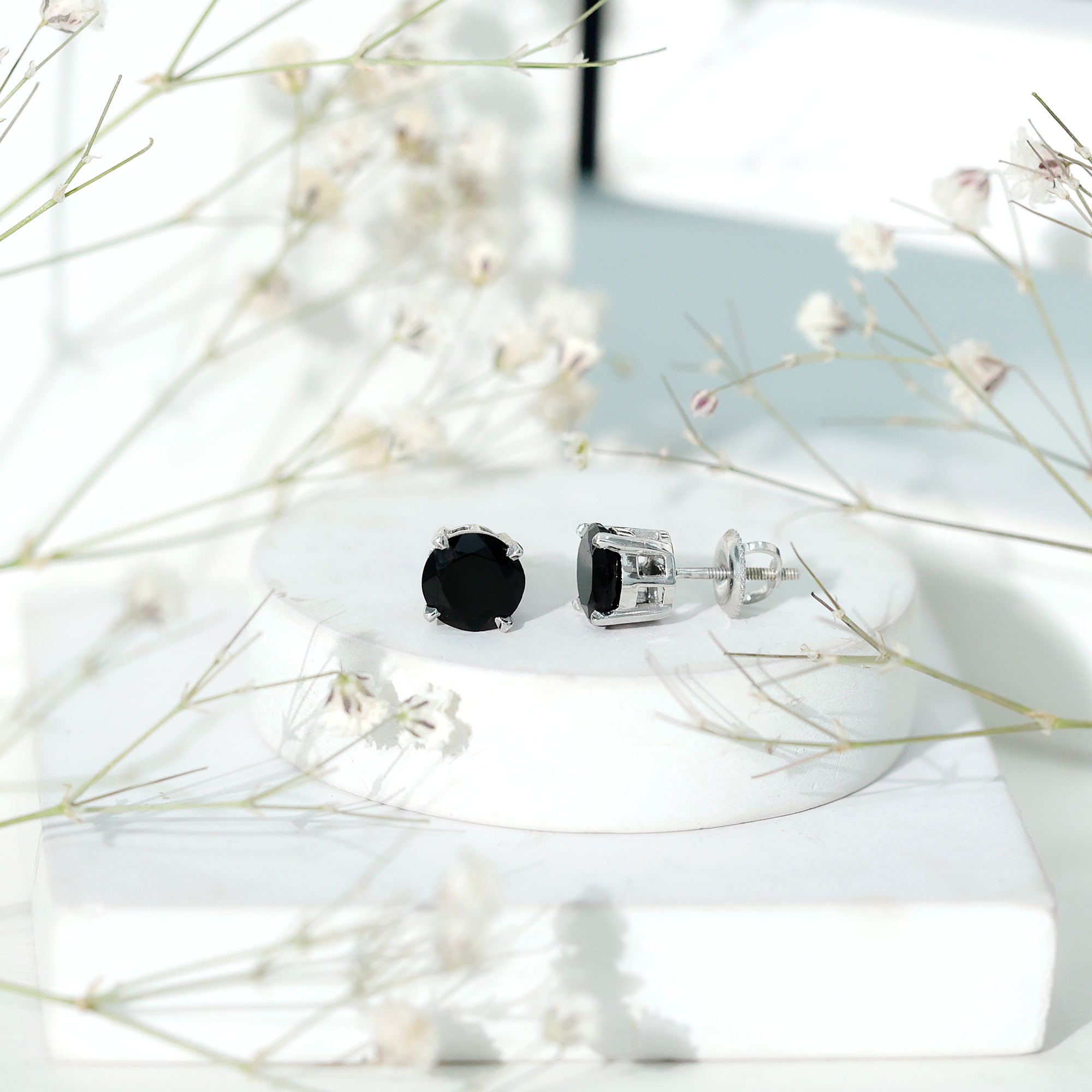 6.5X6.5 MM Round Cut Black Onyx Solitaire Stud Earrings in 4 Prong Setting