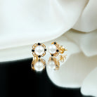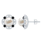 6.75 CT Vintage Stud Earrings with Freshwater Pearl and Black Onyx
