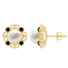The Beautiful Vintage Earrings are designed with combination of Round Shaped Freshwater Pearl and Black Onyx in Prong Setting in Solid Gold. The center stone is a Freshwater Pearl Solitaire encircled with Solid Gold Metal and Gemstone in a unique way. Grab these Stud Earrings and match them up with your favorite attire.