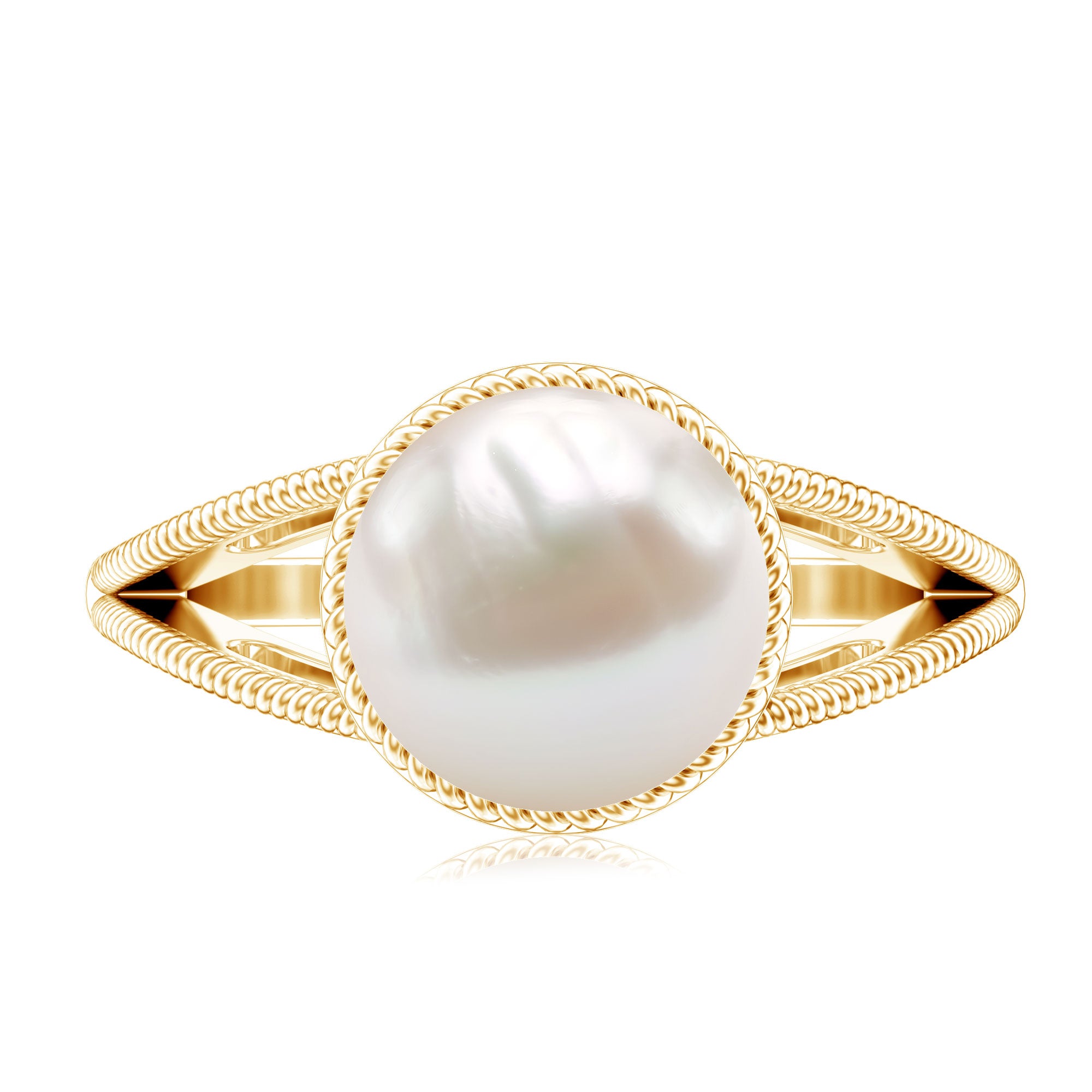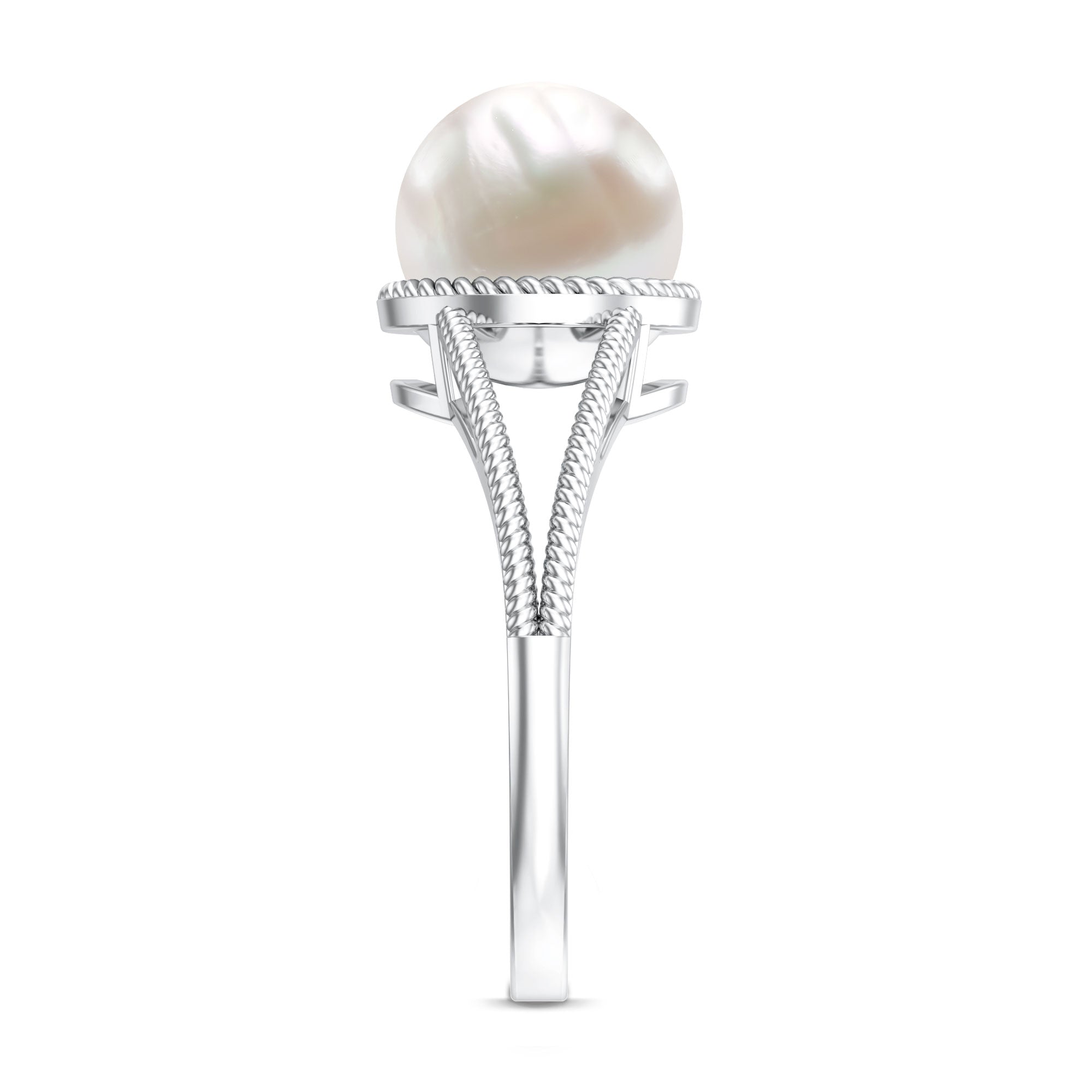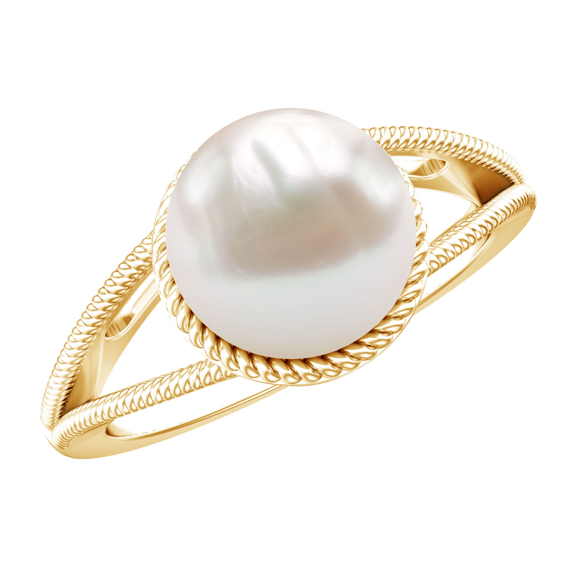 6 CT Split Shank Freshwater Pearl Solitaire Ring in Gold Rope frame