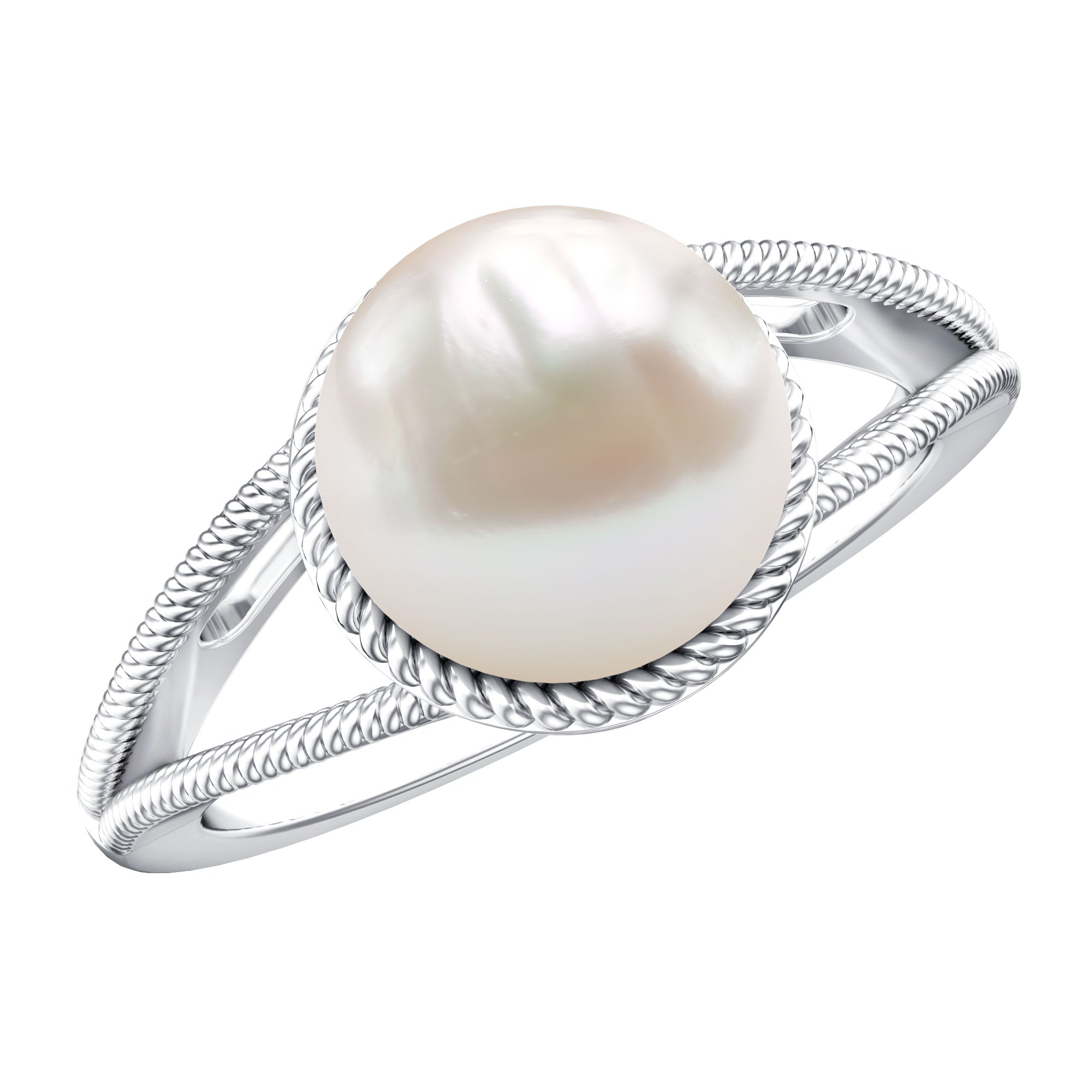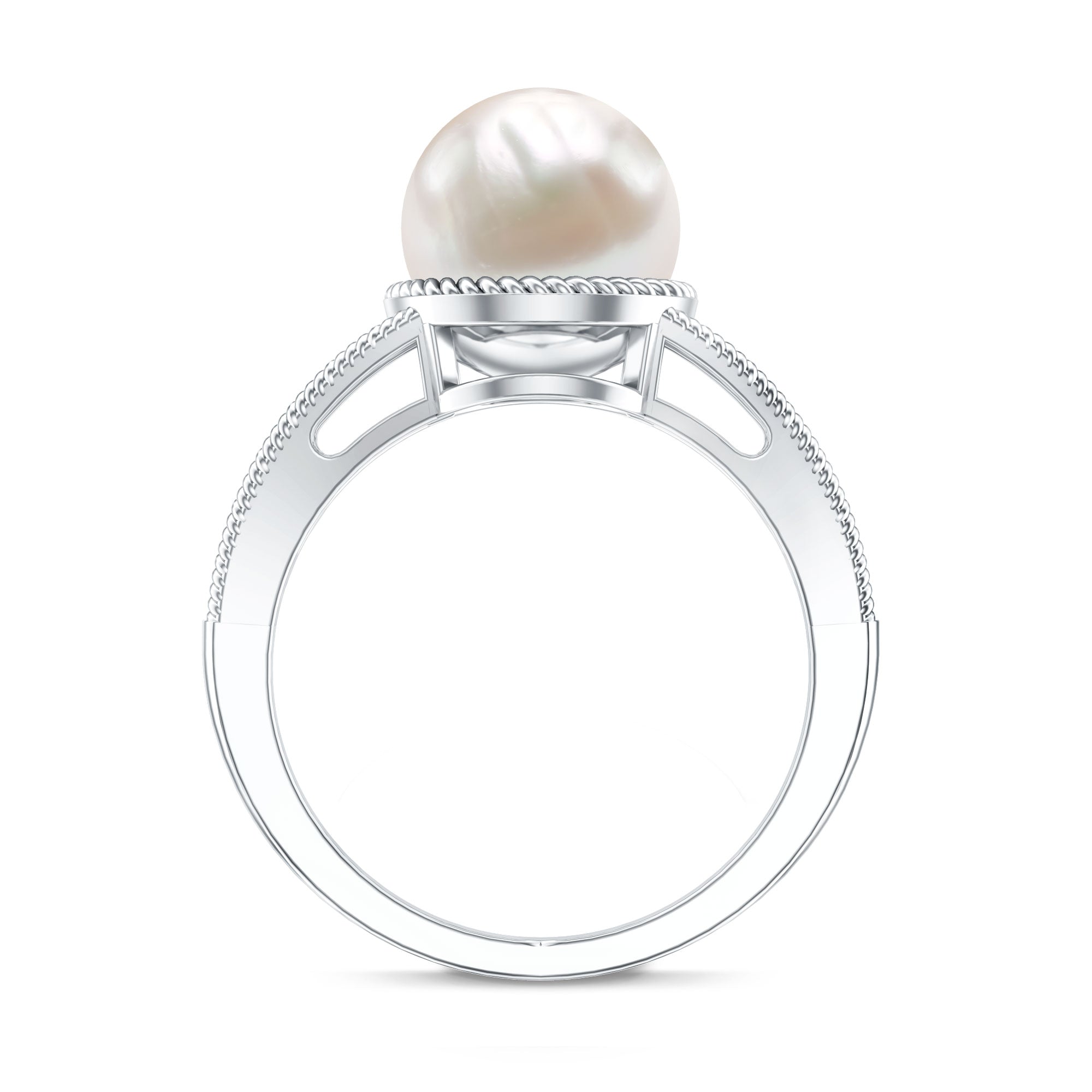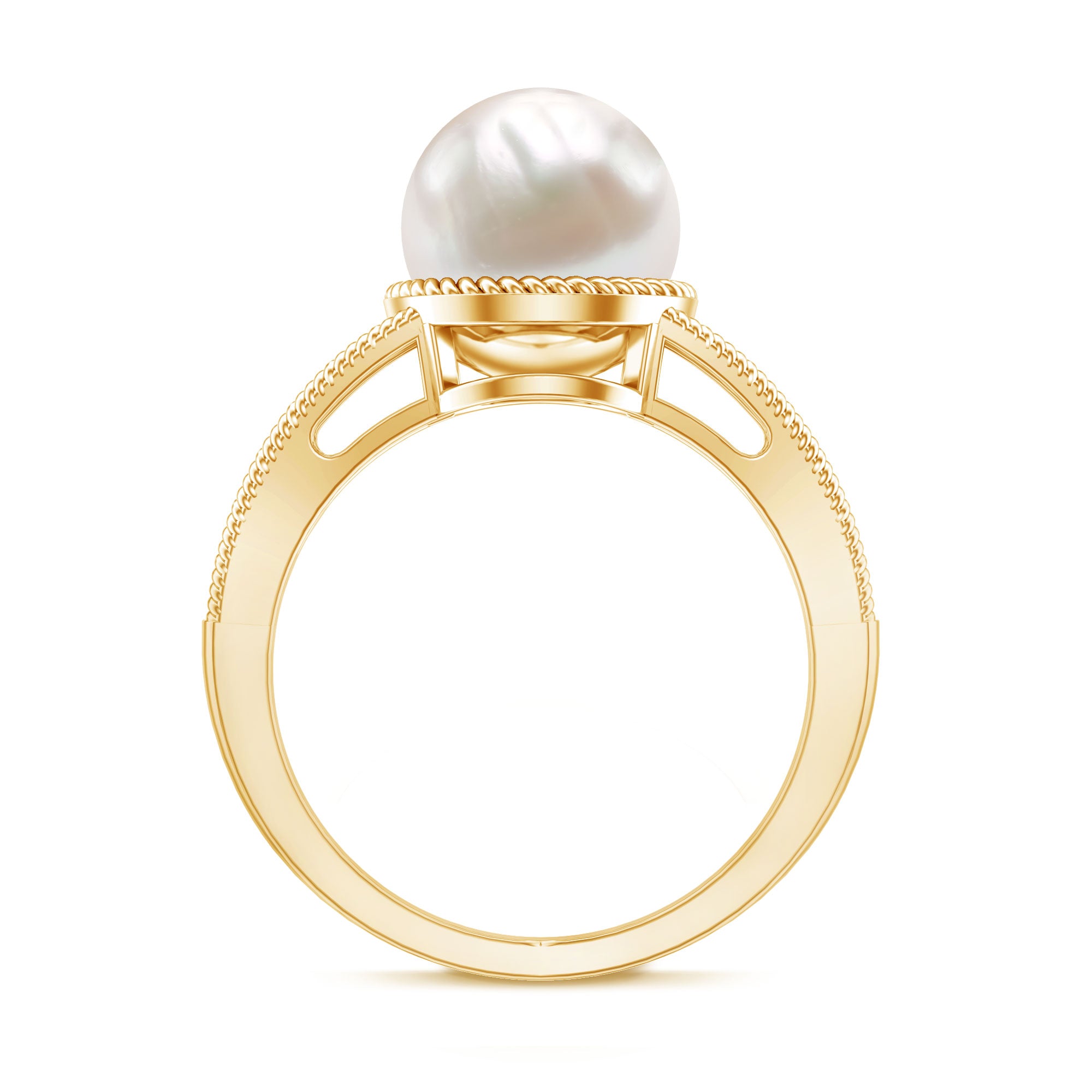 6 CT Split Shank Freshwater Pearl Solitaire Ring in Gold Rope frame