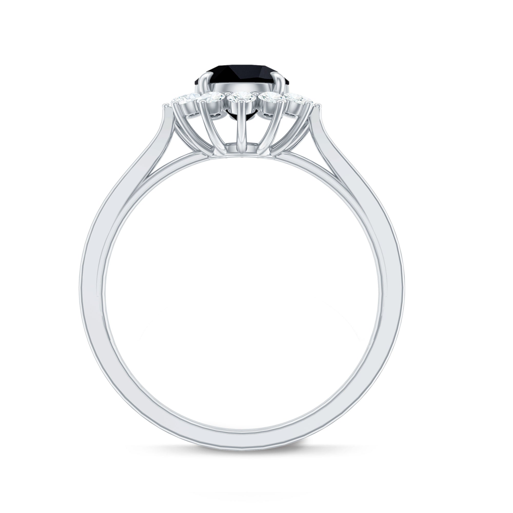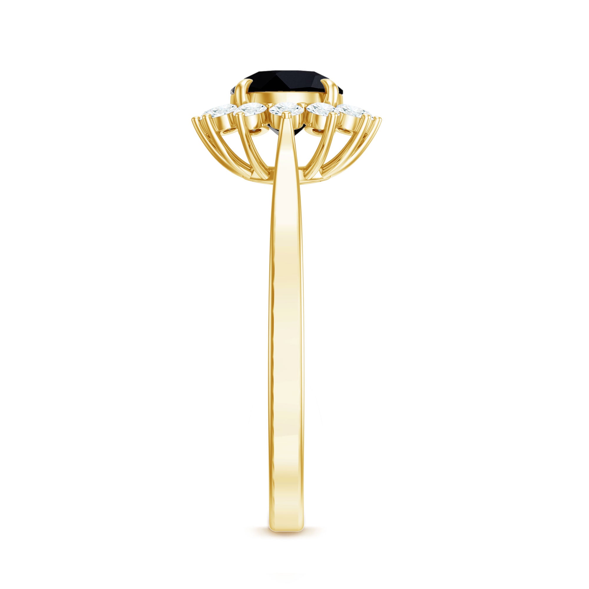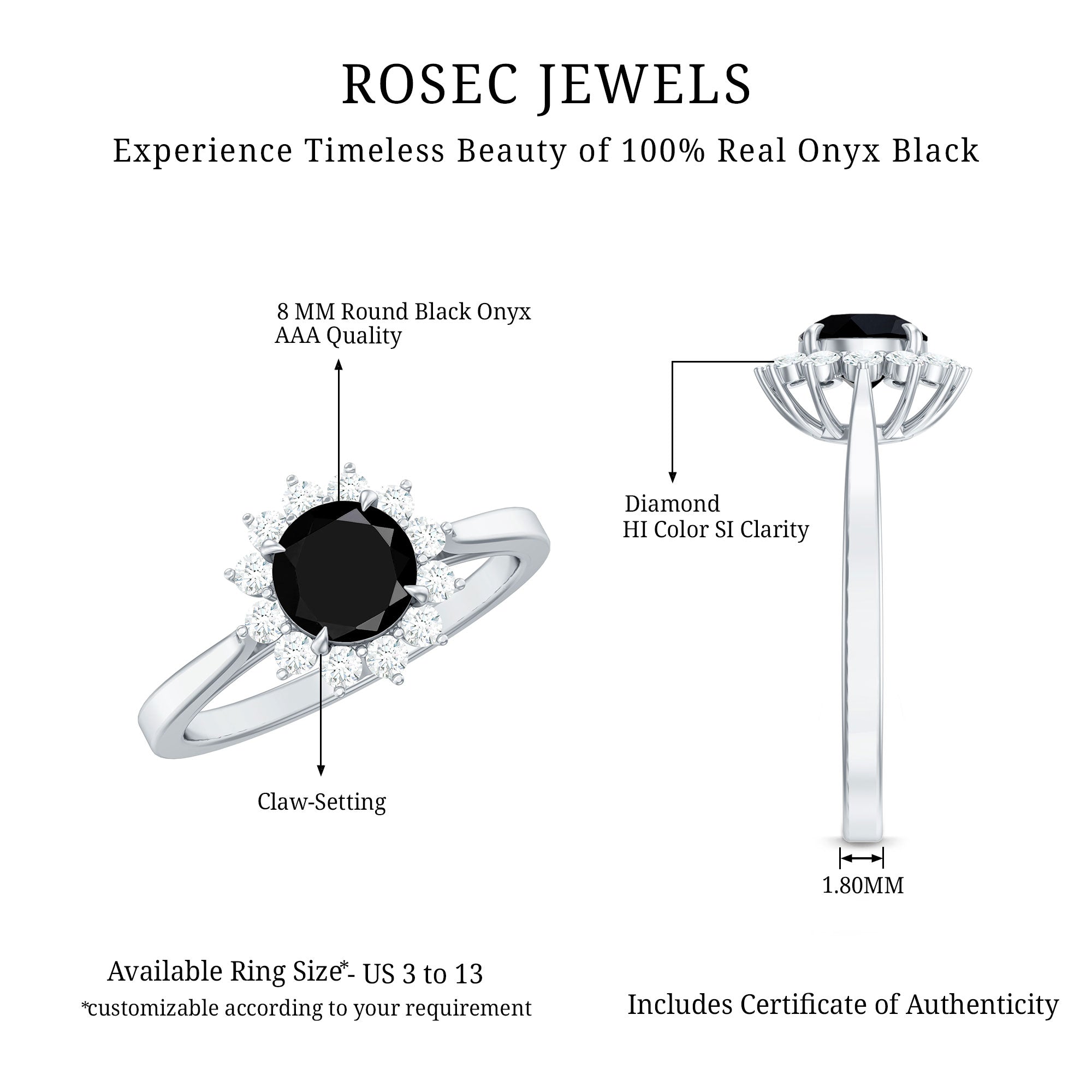 Round Cut Black Onyx and Diamond Engagement Ring For Women