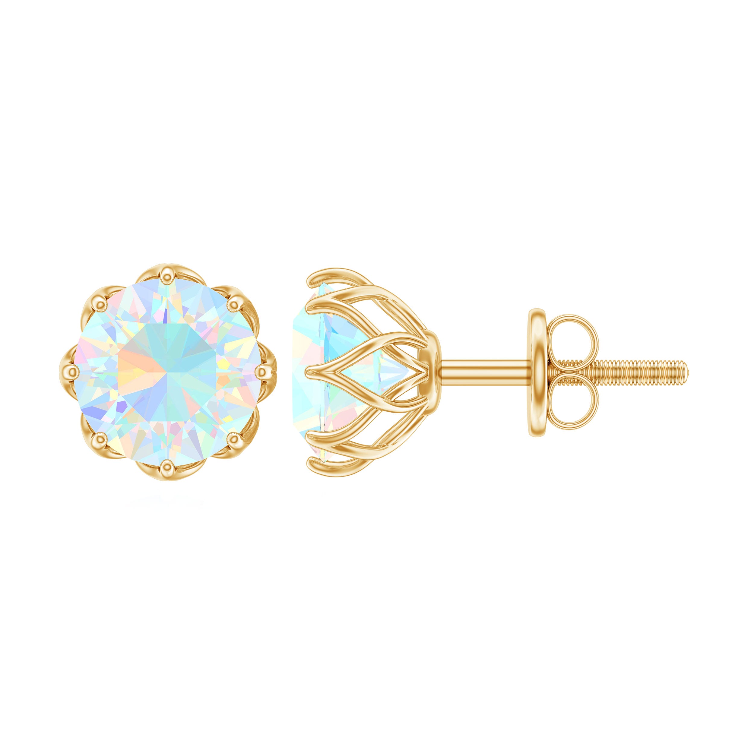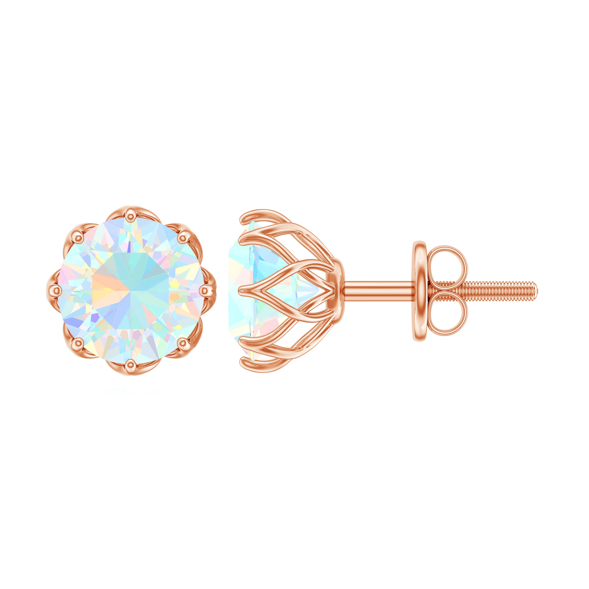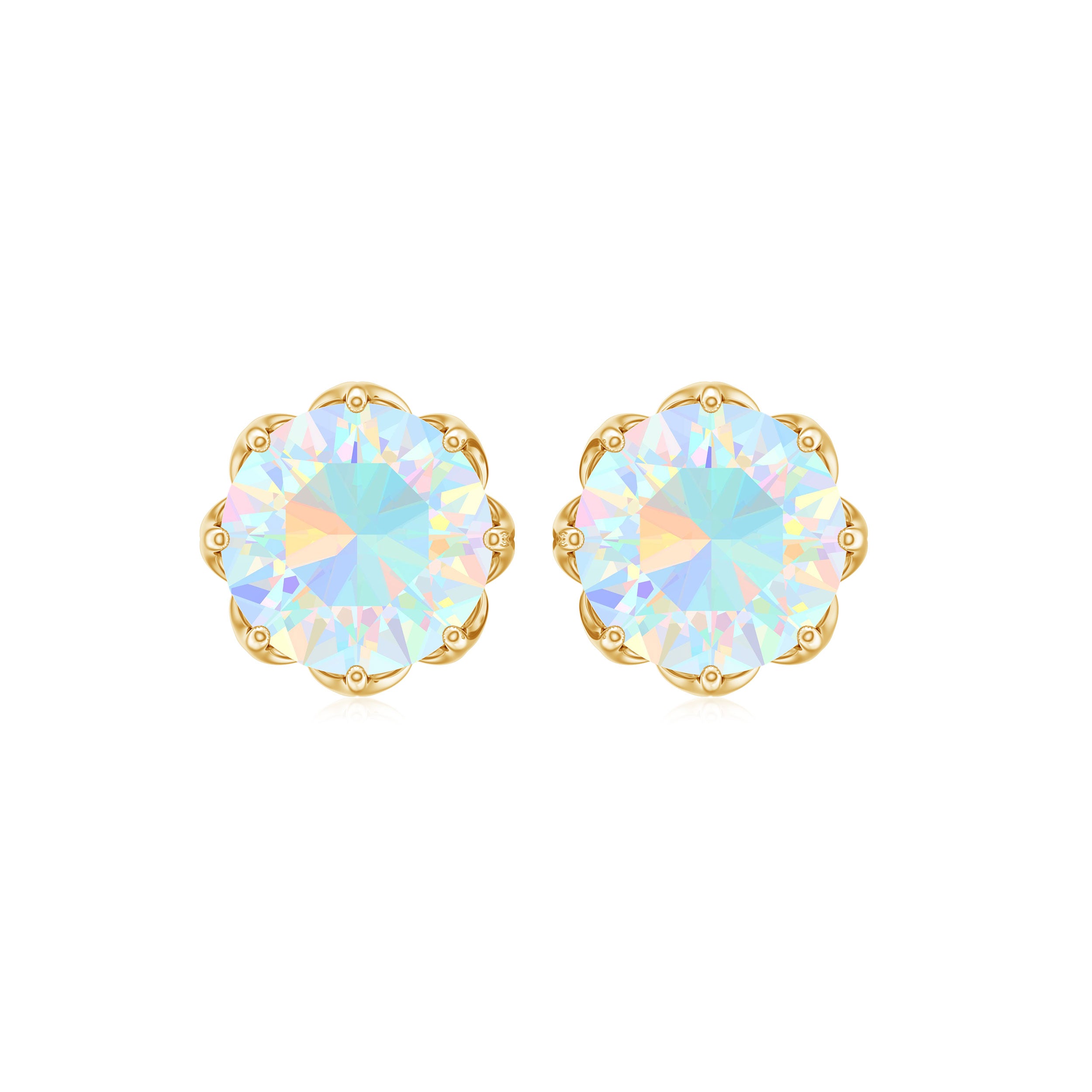 This Solitaire Floral Earring is studded with a Round Shape Ethiopian Opal as Solitaire in Floral Setting. This Solitaire Stud Earring is an ideal piece of Fine Jewelry for simple and subtle looks.