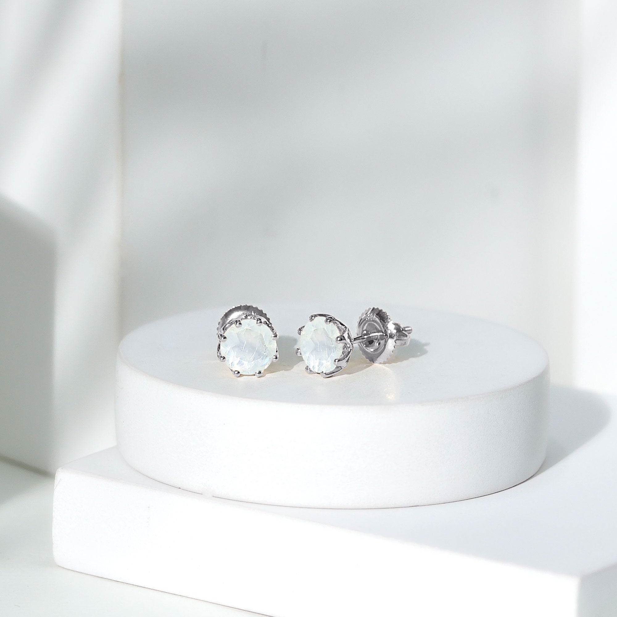 6 MM Decorative Set Moonstone Solitaire Stud Earrings